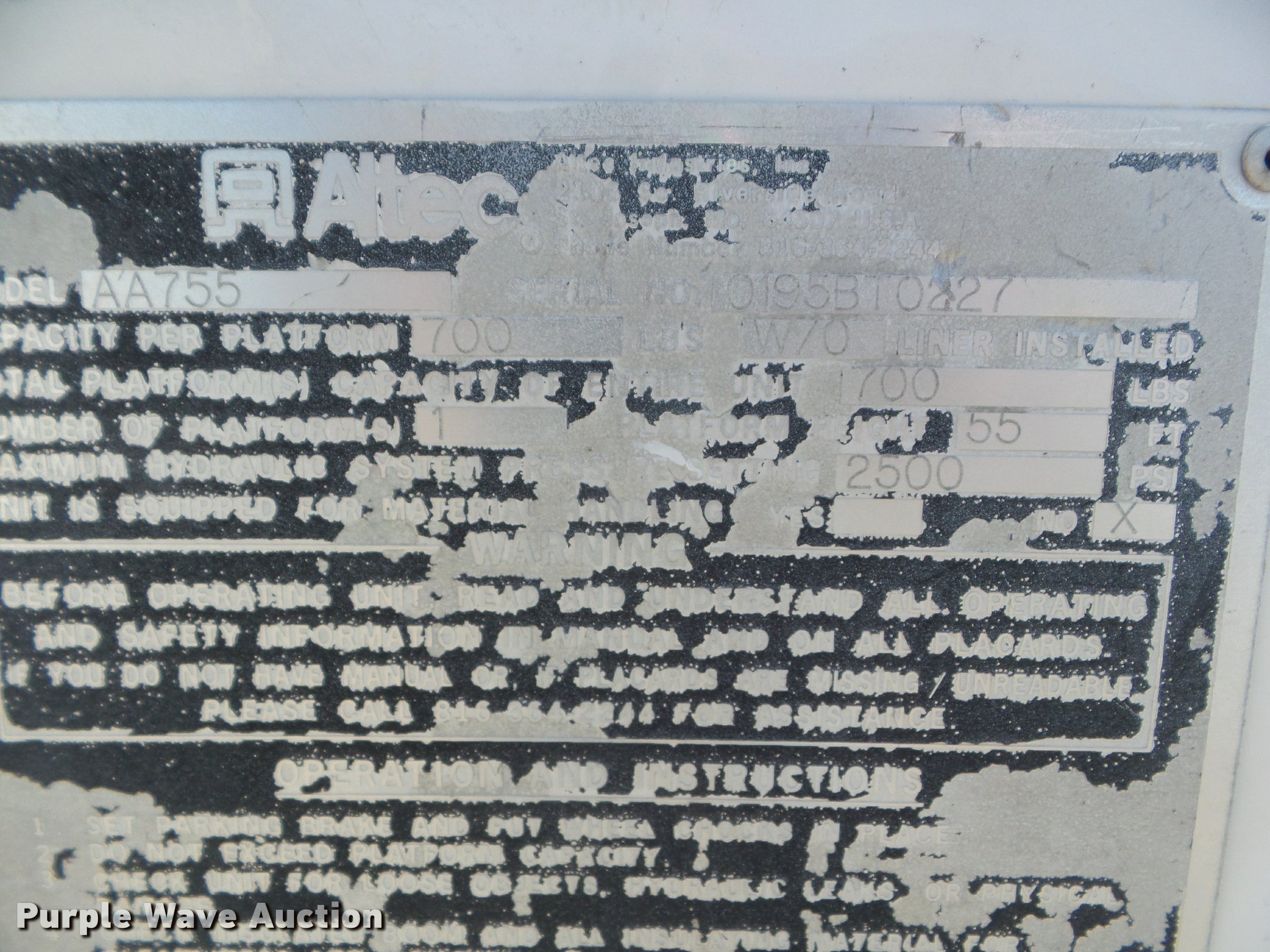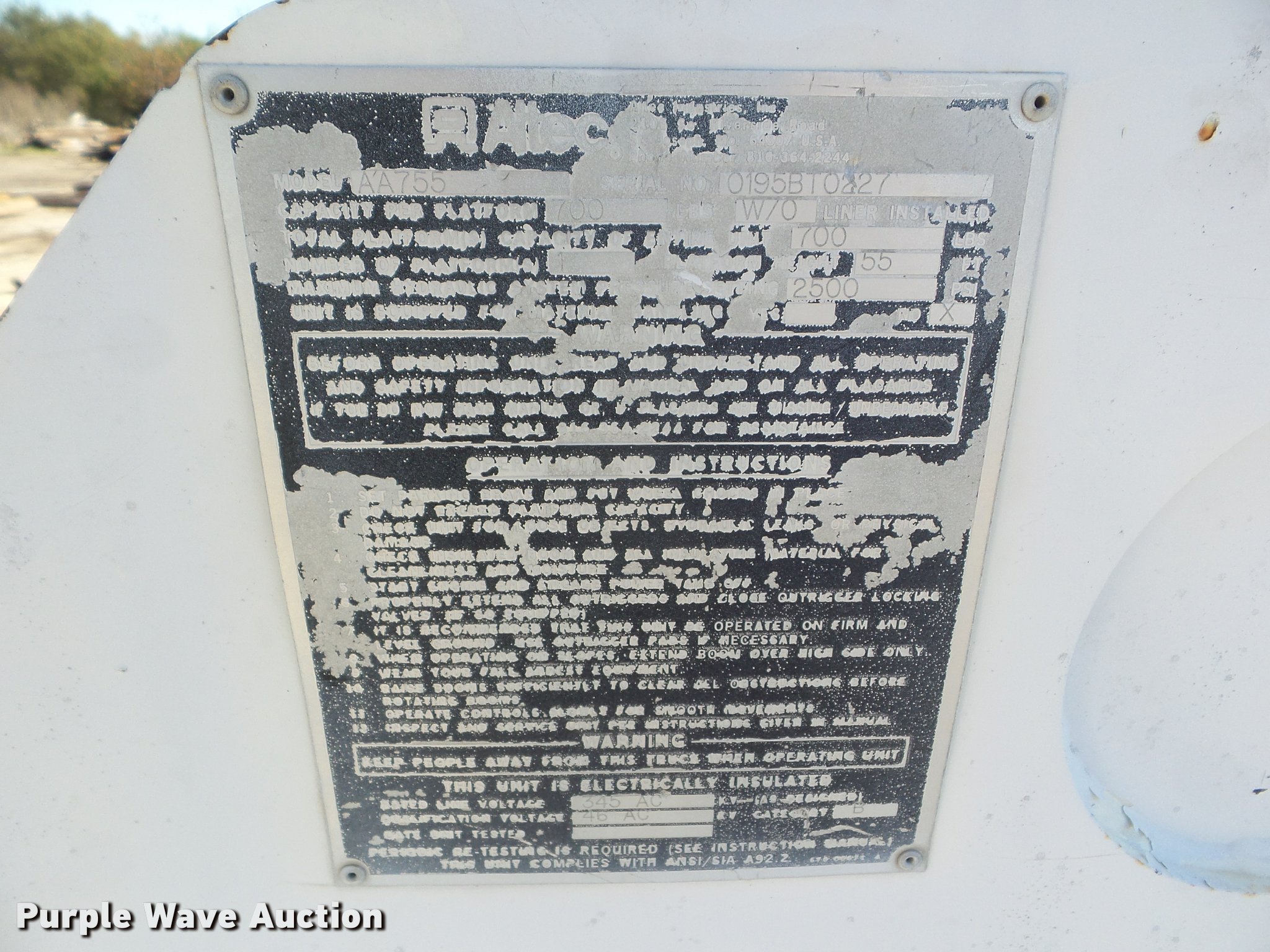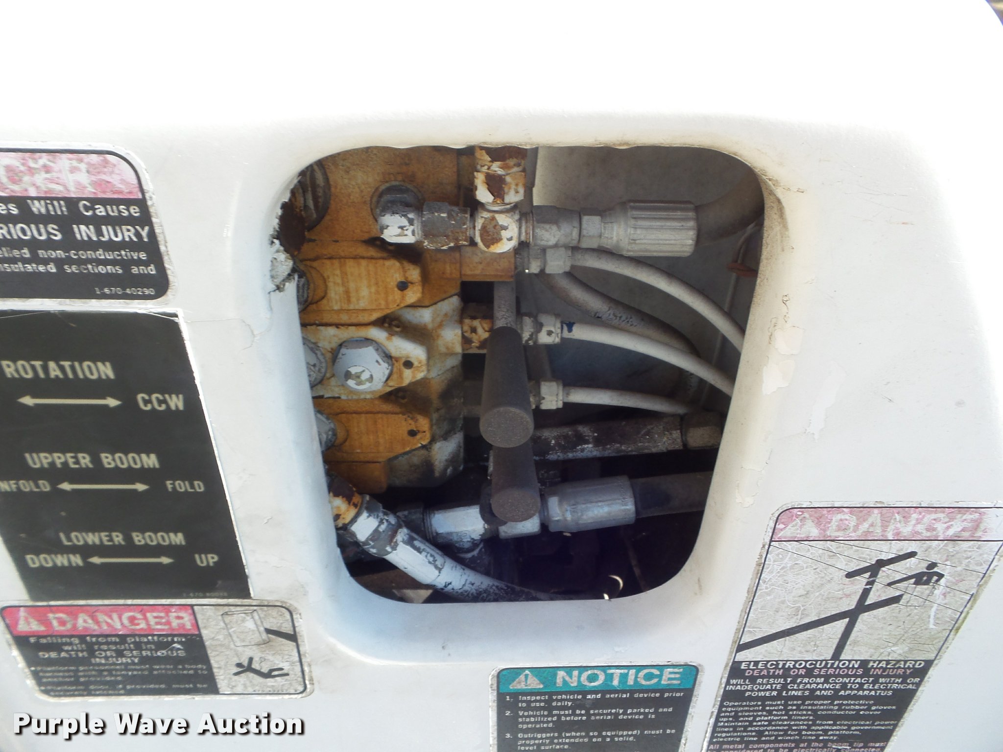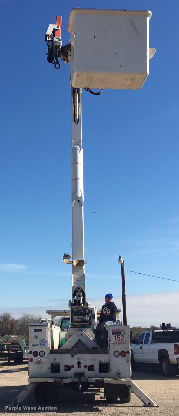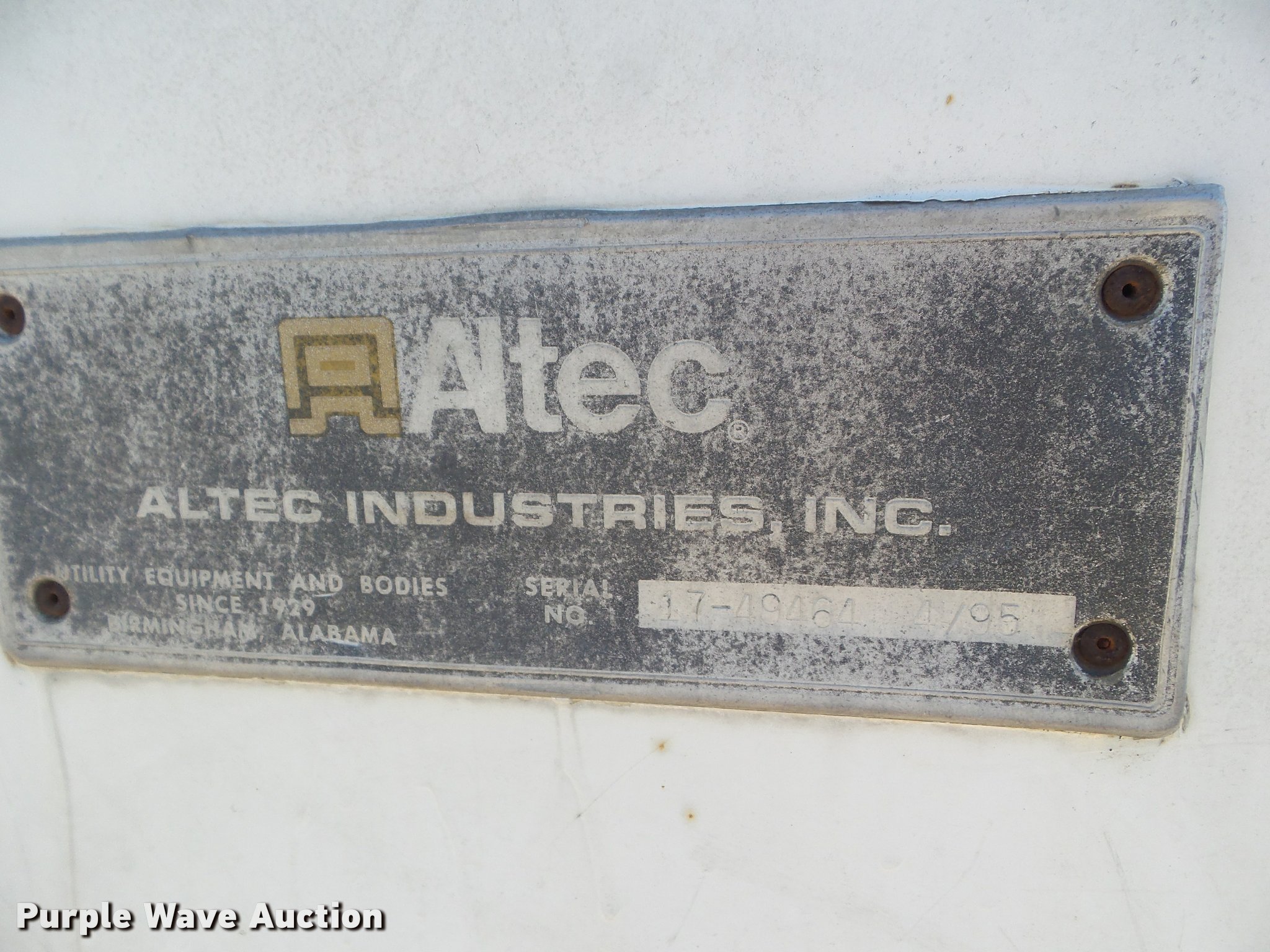 Purple Wave is selling a used Bucket Truck in Texas. This item is a 1995 Ford F800 Super Duty bucket truck with the following: 71,508 miles on odometer, 8,535 engine hours on meter, 2,880 PTO hours on meter, Cummins ISC 8.3L L6 turbo diesel engine, Five speed manual transmission, Single axle, Heat, AM/FM, PTO, Altec service bed, 14'L, Serial 17-49464-4/95, 1995 Altec AH755 boom, 700 lbs max lift capacity, Man basket, 60' max lift height, Ground and platform controls, Boom rotation, Articulating insulated boom, (4) outriggers, Serial 0195BT0227, Single fuel tank, Spring suspension, Air brakes, 178" wheelbase, 11R22.5 tires, GVWR 33,000 lbs