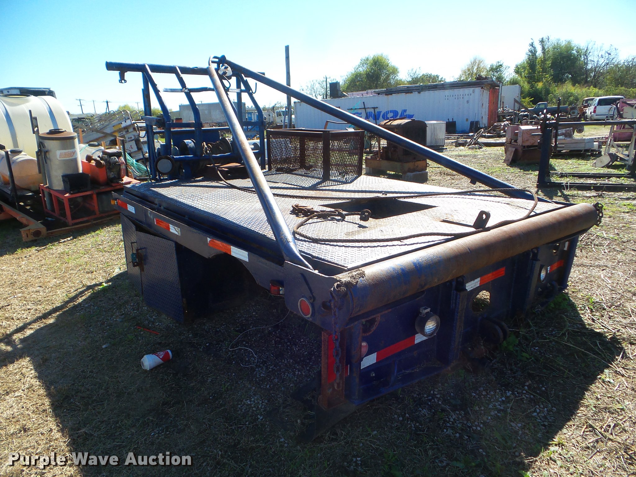 Purple Wave is selling a used Truck Part and Attach. in Texas. This item is a Flatbed with the following: 12'L x 90"W, Approx. 12'L gin poles, Twin Capstan caged winch, Chain driven Tulsa 23-R winch, Gooseneck hitch, Rolling tailboard