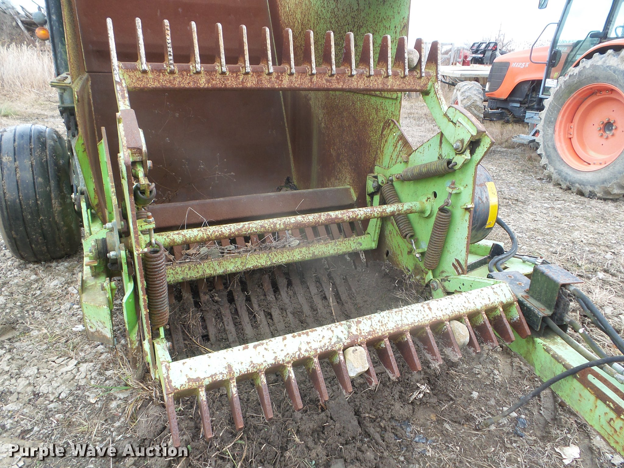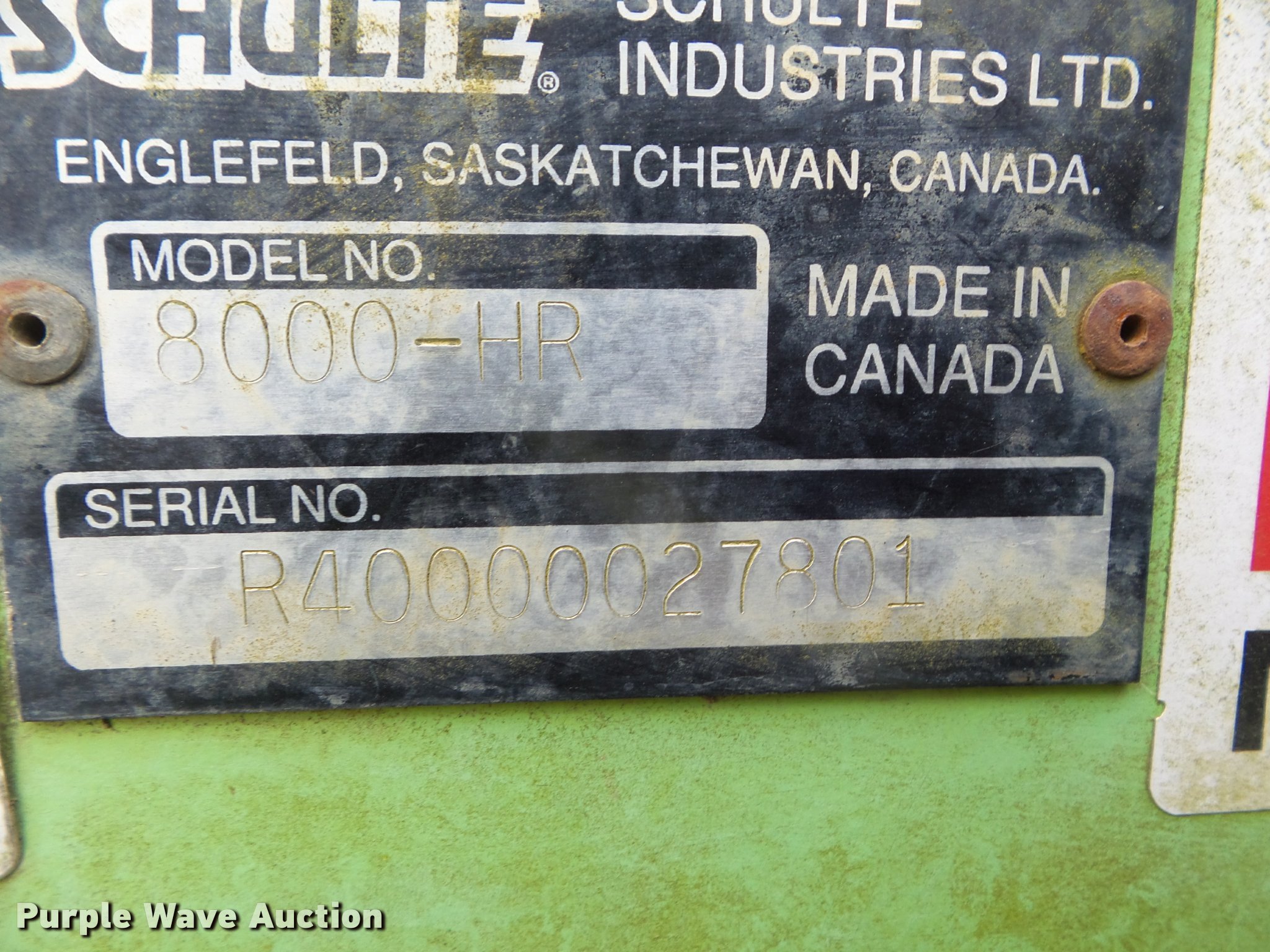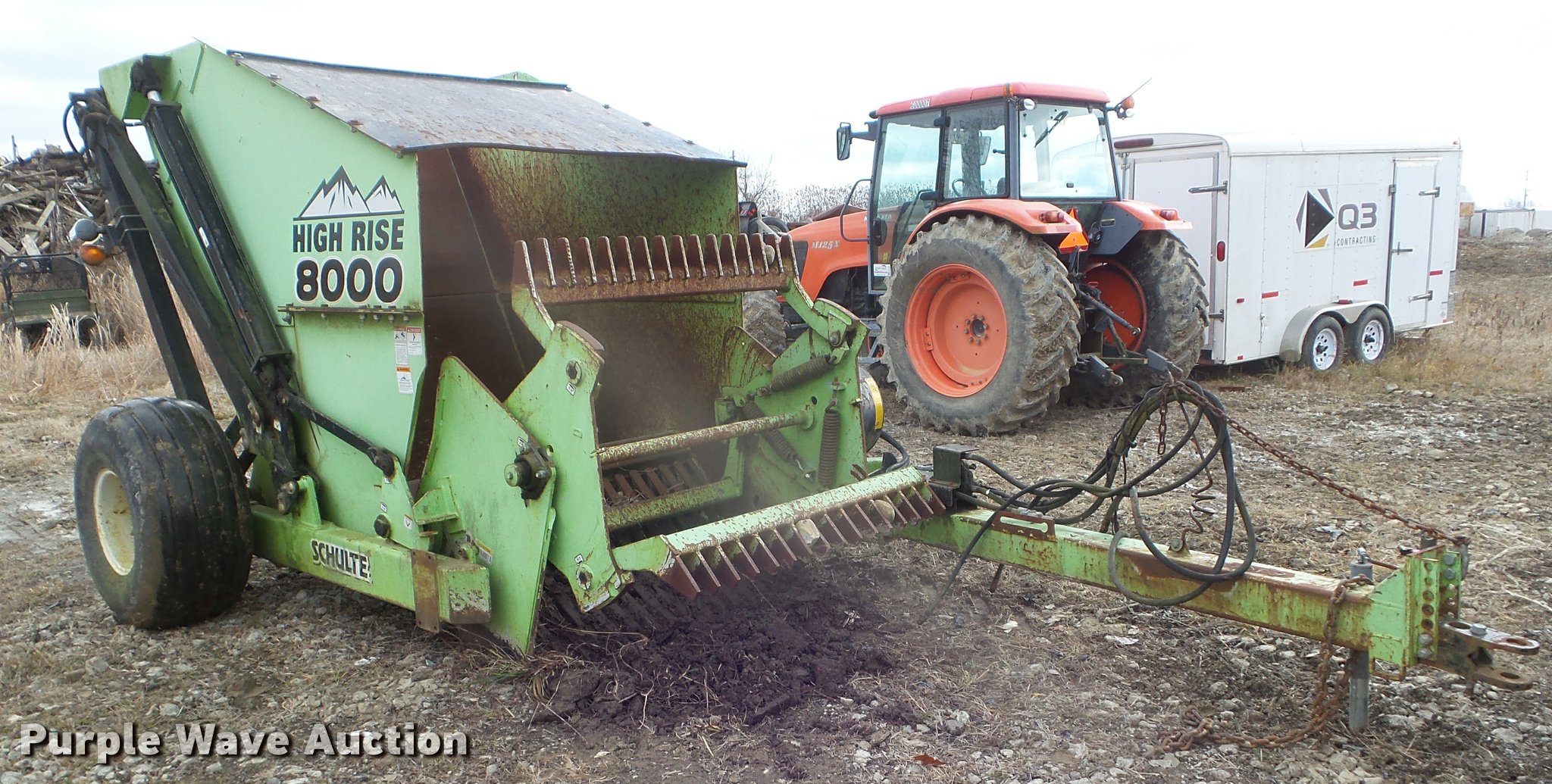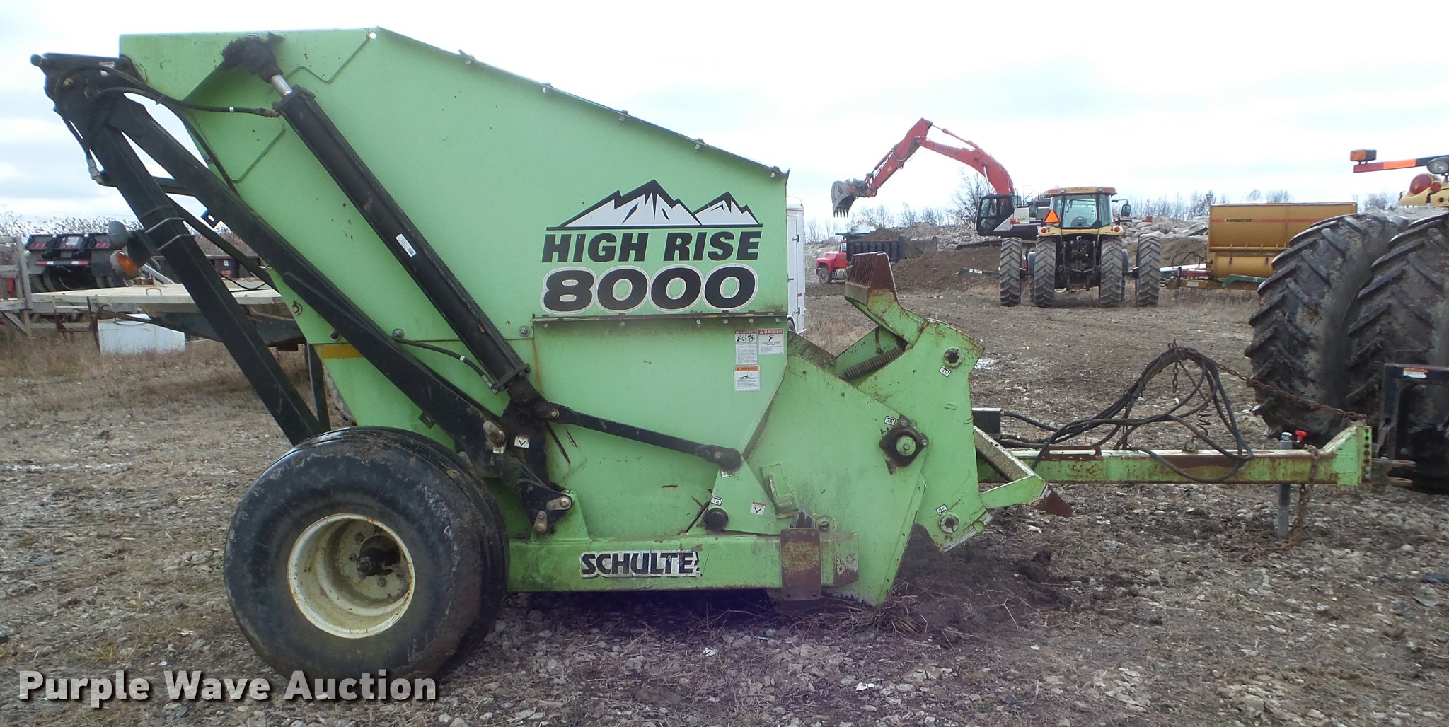 Purple Wave is selling a used Ag Equip. Other in Ohio. This item is a Schulte High Rise 8000 rock picker with the following: Hydraulic operated picking wheel, 5'5"W hopper, Hydraulic dump, Pin hitch, 16.5-16.1 tires, Serial R40000027809, Unit# 620027