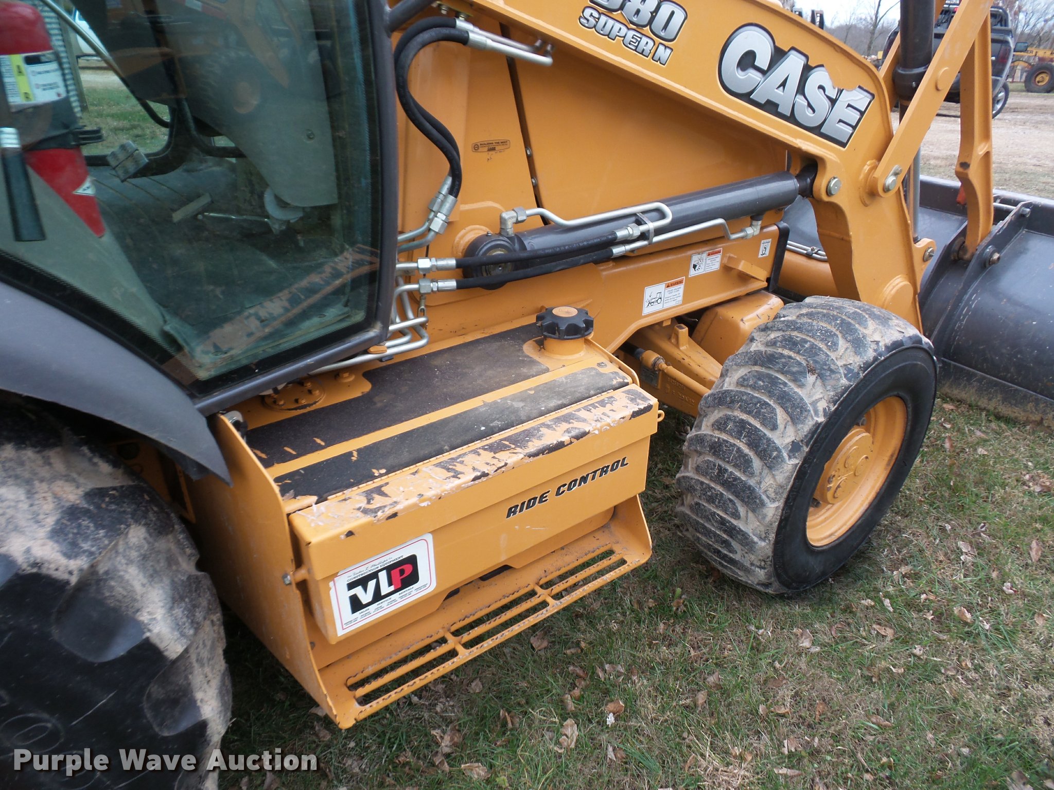 Purple Wave is selling a used Tractor Loader Backhoe in Missouri. This item is a 2012 Case 580 Super N backhoe with the following: 2,608 hours on meter, Case four cylinder turbo diesel engine, Shuttle shift transmission, 4F-4R gears, Four wheel drive, EROPS, AC and heat, Tilt steering wheel, Suspension seat, Four stick backhoe controls, Wipers, Backup alarm, Front and rear work lights, 82"W loader bucket, Auxiliary hydraulics, Extendahoe, 24"W backhoe bucket, (5) teeth, Auxiliary hydraulics, Front counterweights, 12-16.5 front tires, 19.5-24 rear tires, Serial JJGN58SNCCC565341