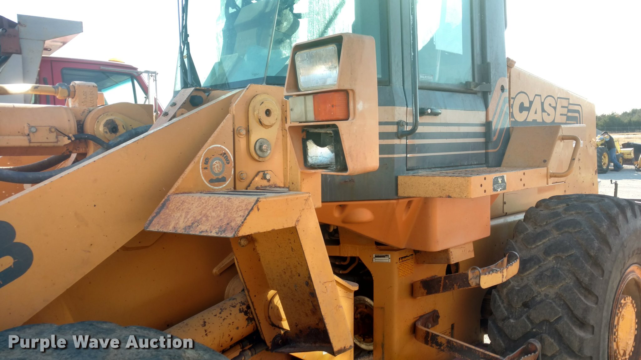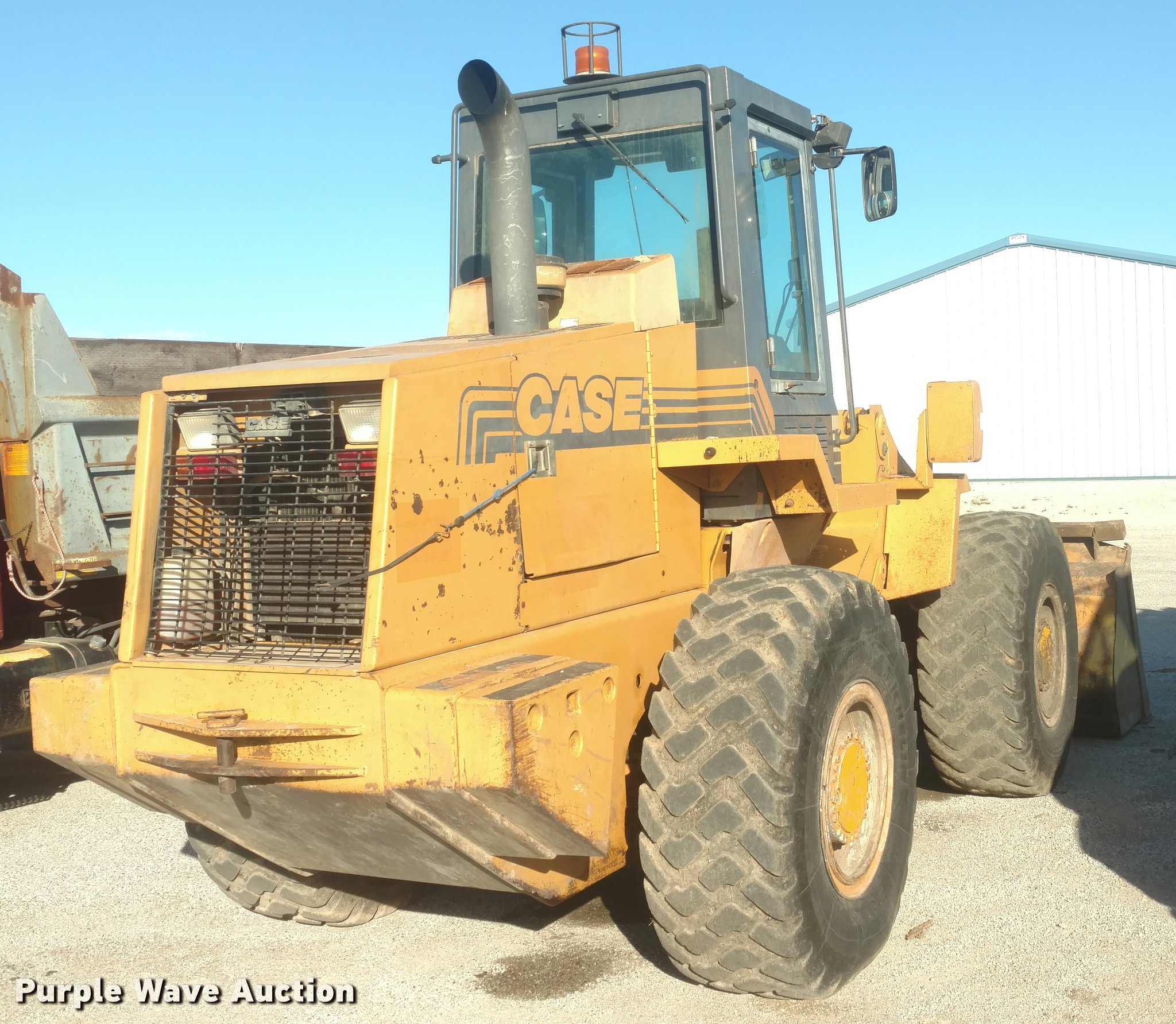 Purple Wave is selling a used Wheel Loader in Kansas. This item is a 1999 Case 621B wheel loader with the following: 10,884 hours on meter, Six cylinder diesel engine, Powershift transmission, 4F-3R gears, EROPS, AC and heat, AM/FM, Joystick bucket controls, General purpose bucket, 2 3/4 cu. yd. capacity, 20.5R25 tires, Engine oil leak, Lift cylinders and right steering cylinder seals need to be replaced, Serial JEE0057761, Unit# 0806