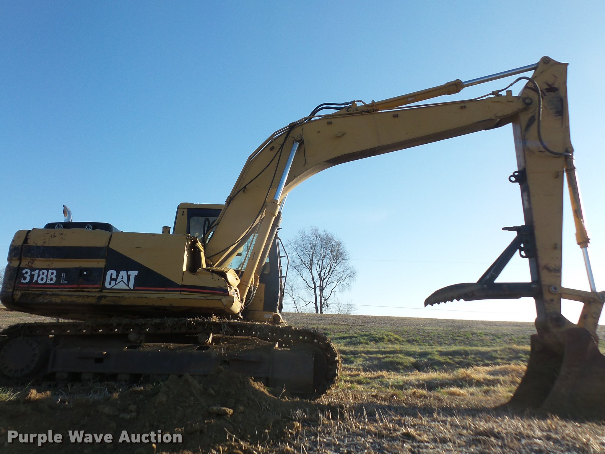 Purple Wave is selling a used Hydraulic Excavator in Missouri. This item is a 2000 Caterpillar 318B L excavator with the following: Approximately 9,000 hours on unit, Caterpillar 3046T six cylinder turbo diesel engine, 115 HP, Hydrostatic transmission, EROPS, AC and heat, Suspension seat, Standard boom, 10' stick length, Caterpillar 48"W bucket, Manual thumb, 24"W steel triple grouser track pads, Front window missing, Non-operational AC, Auxiliary hydraulic capable, Lines removed, but included, Serial 3LR00452