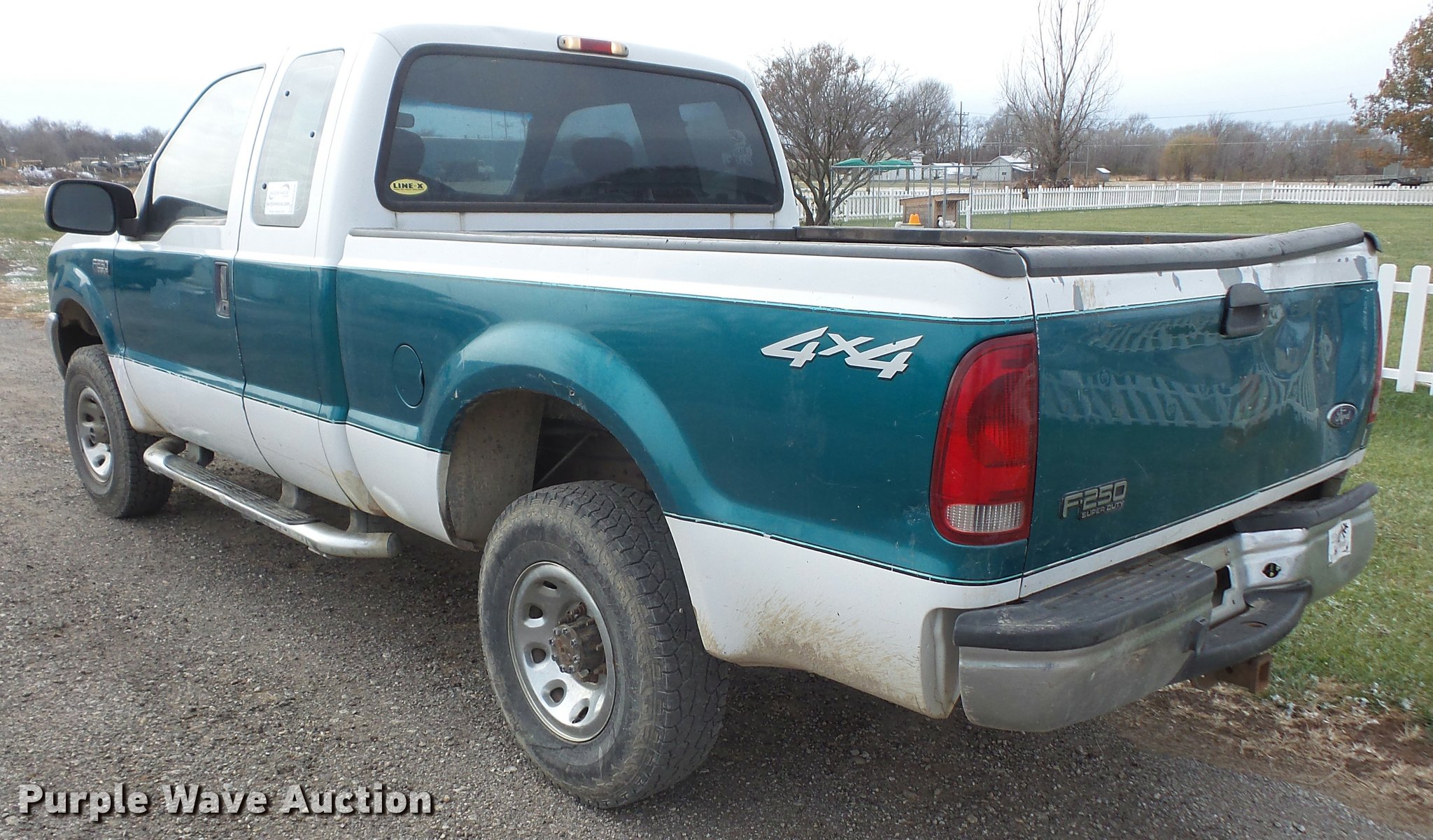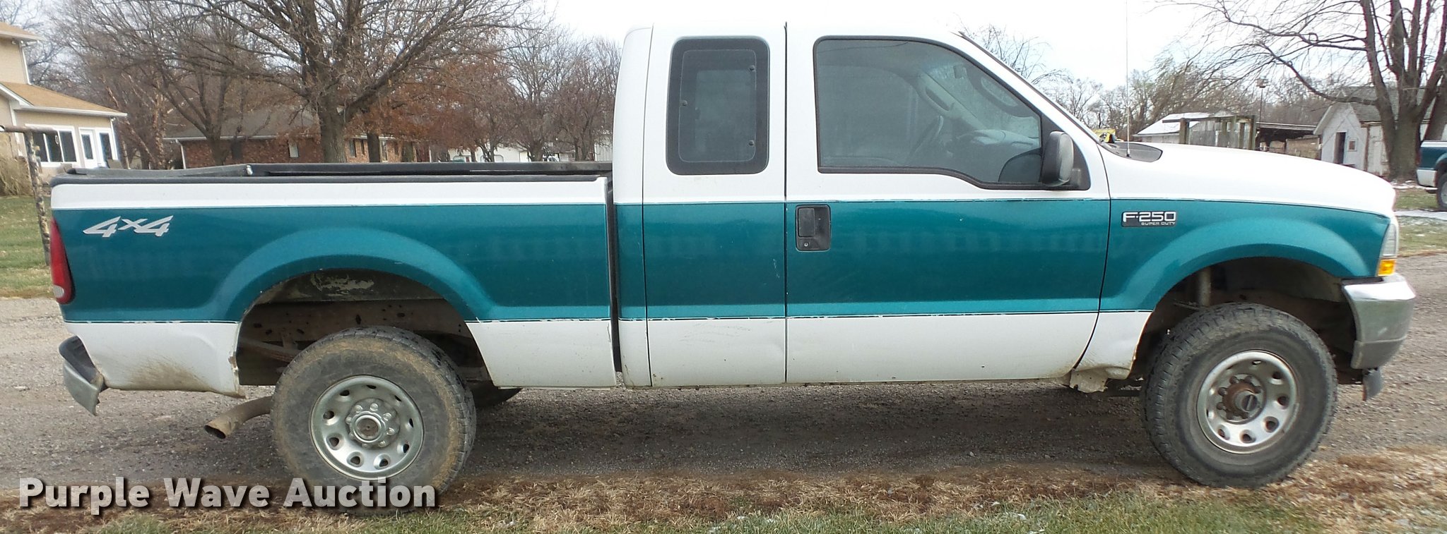 Purple Wave is selling a used 3/4 or 1 Ton Pickup or Van in Kansas. This item is a 2004 Ford F250 Super Duty SuperCab pickup truck with the following: 208,493 miles on odometer, 5.4L V8 SOHC 16V gas engine, Automatic transmission, Four wheel drive, AC and heat, Tilt, Cruise, AM/FM/CD, Power windows, locks, and mirrors, Cloth interior, Receiver hitch, 235/85R16 tires, Check engine light is on, Tailgate dented
