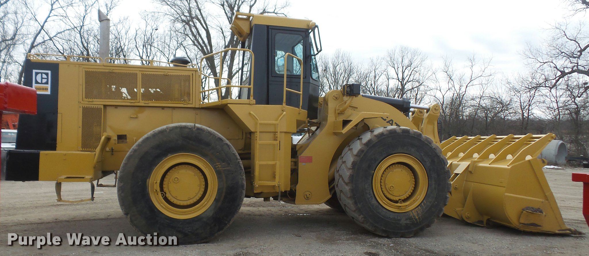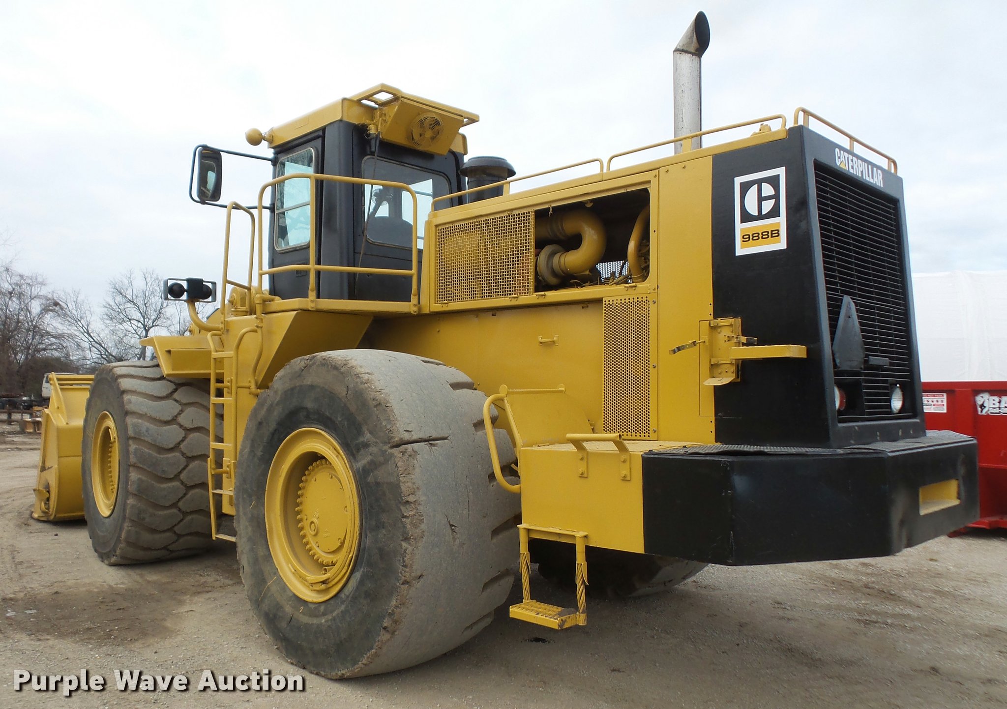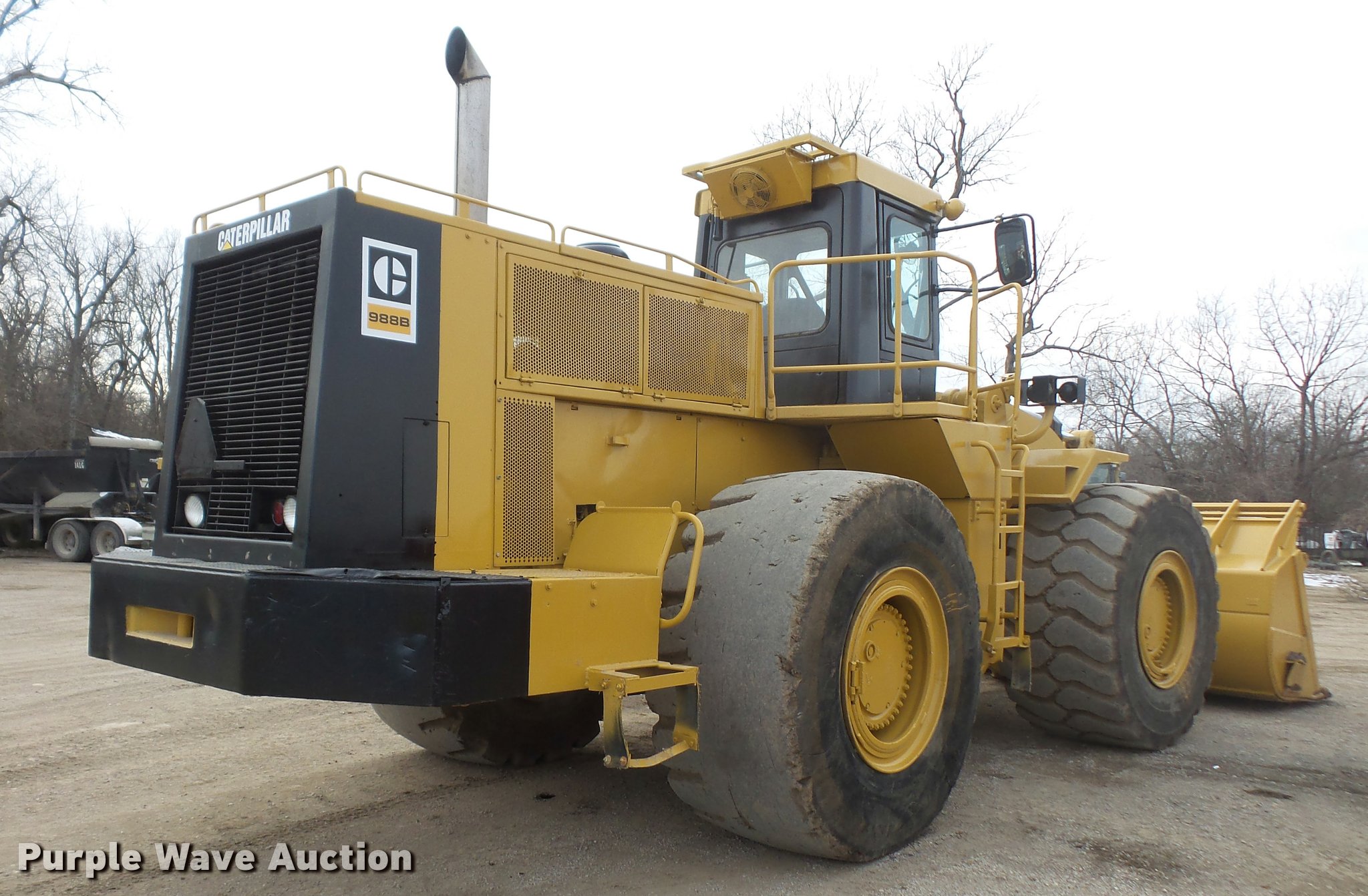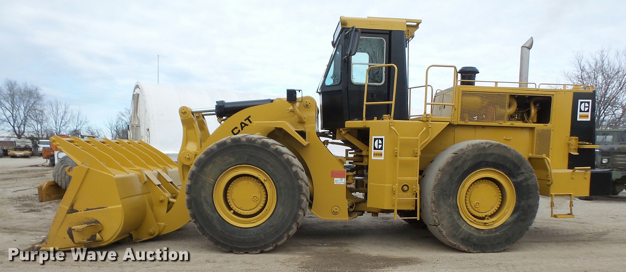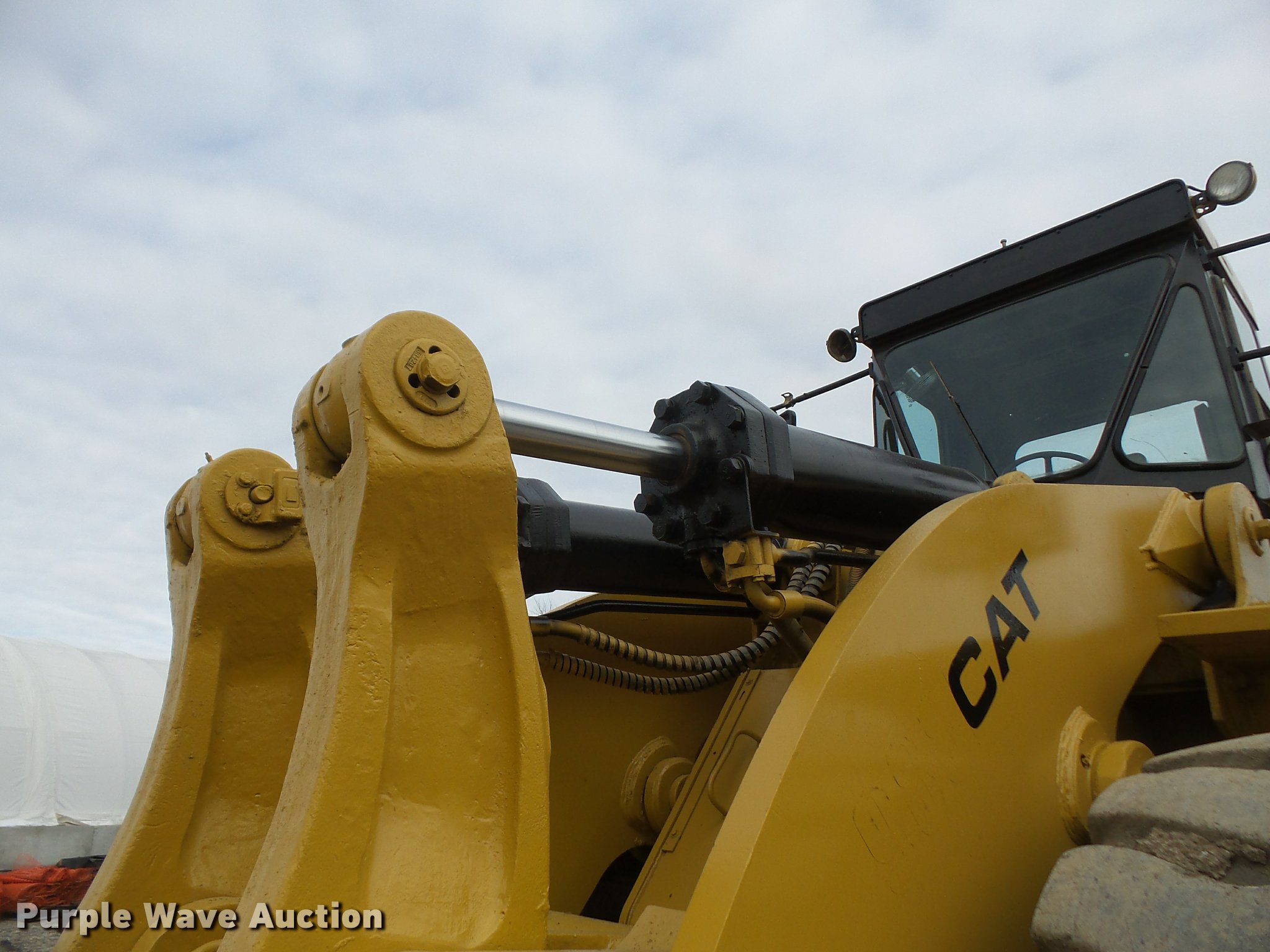 Purple Wave is selling a used Wheel Loader in Kansas. This item is a 1982 Caterpillar 988B wheel loader with the following: Approximately 19,000 hours on unit, Caterpillar eight cylinder turbo diesel engine, Powershift transmission, 4F gears, EROPS, Heat, Suspension seat, Two-lever bucket controls, Front work lights, 12'W general purpose bucket, Bolt-on cutting edge, (8) teeth, 35/65R33 tires, Serial 50W05581