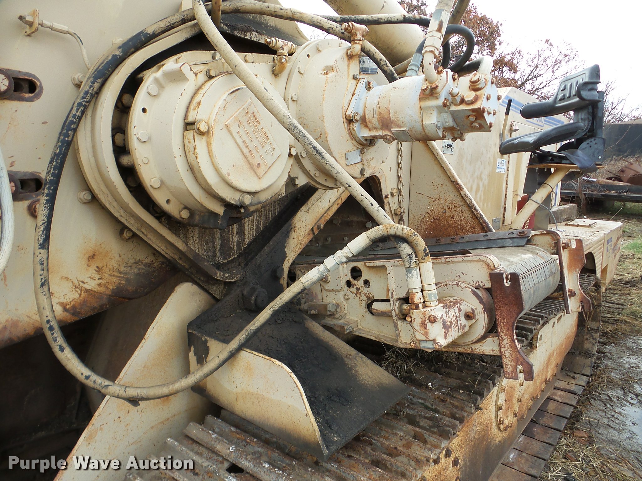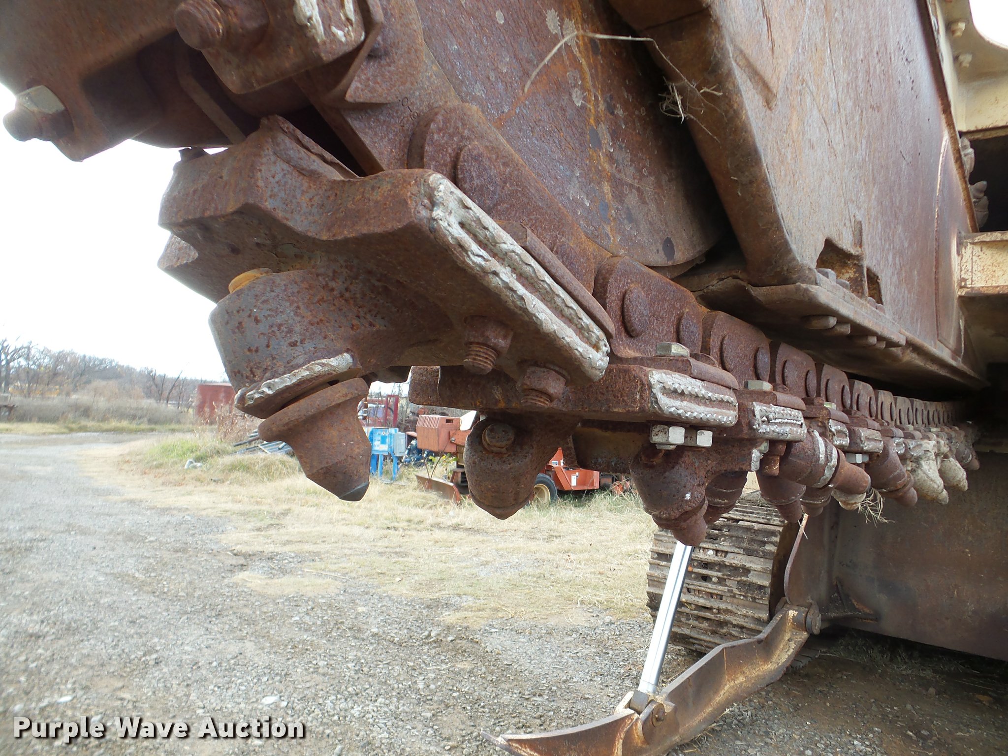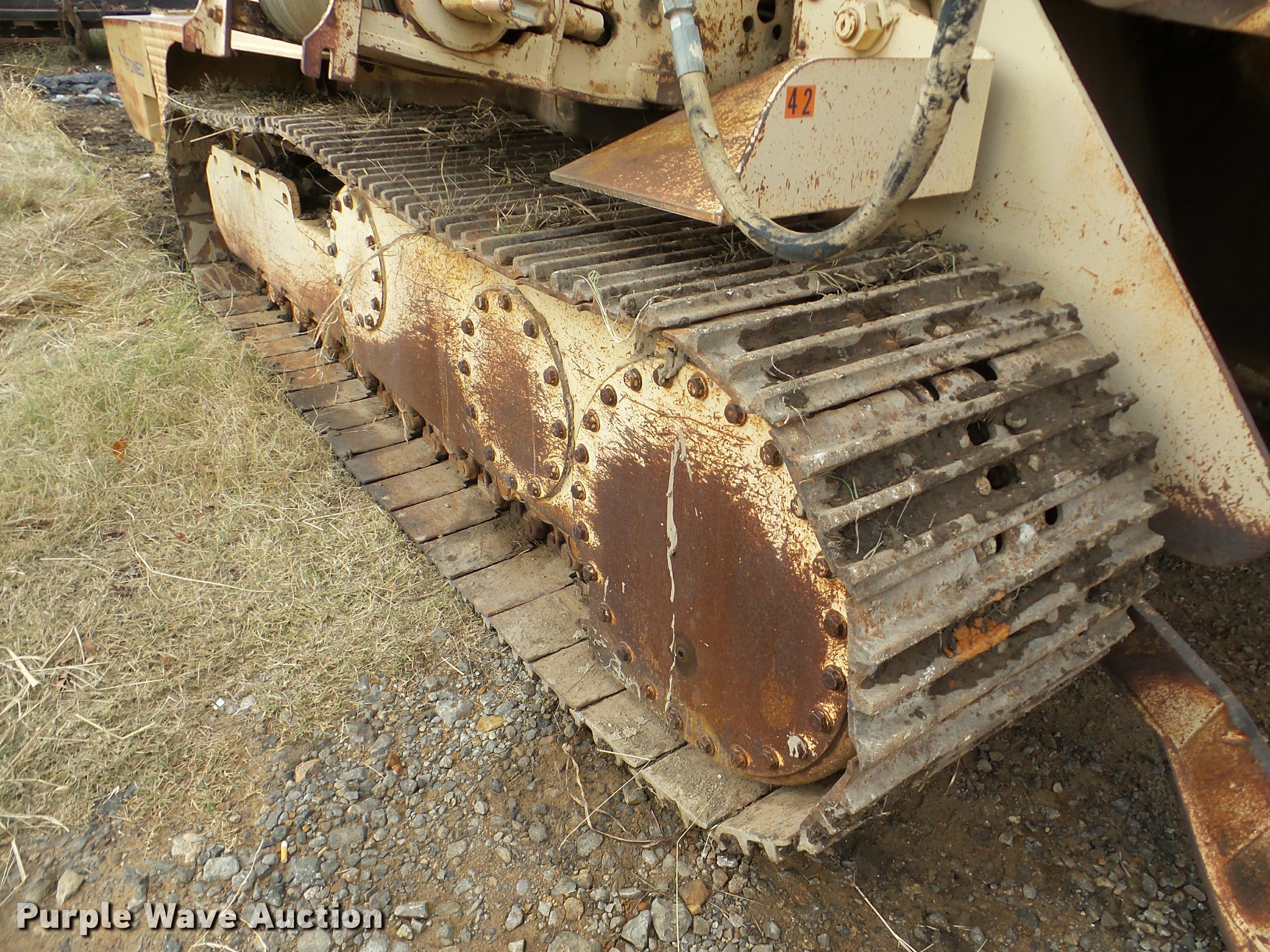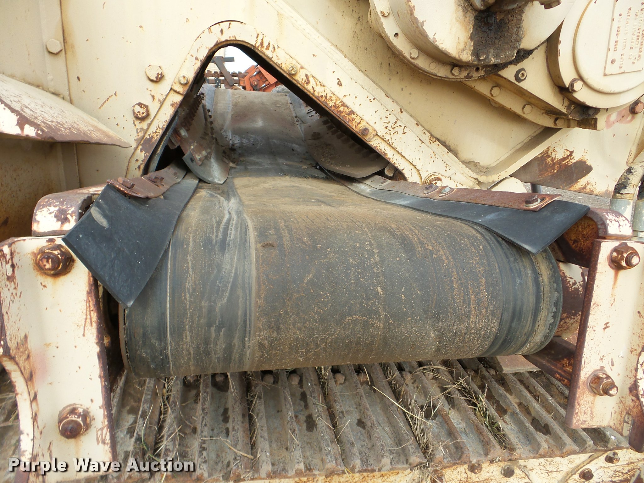 1990 Tesmec TRS1000B trencher. 590 hours on meter, Six cylinder diesel engine, Four speed manual transmission, Main clutch control, 13' maximum trenching depth 13" cutting width, 24" side conveyor Side shift, PEMSRF41 primary hydraulic motor, 24"W triple grouser track pads, 68,000 lbs. base operating weight, Engine door missing, Serial 161. JBK Well Service. 8689 State Highway 11. Barnsdall, OK 74002