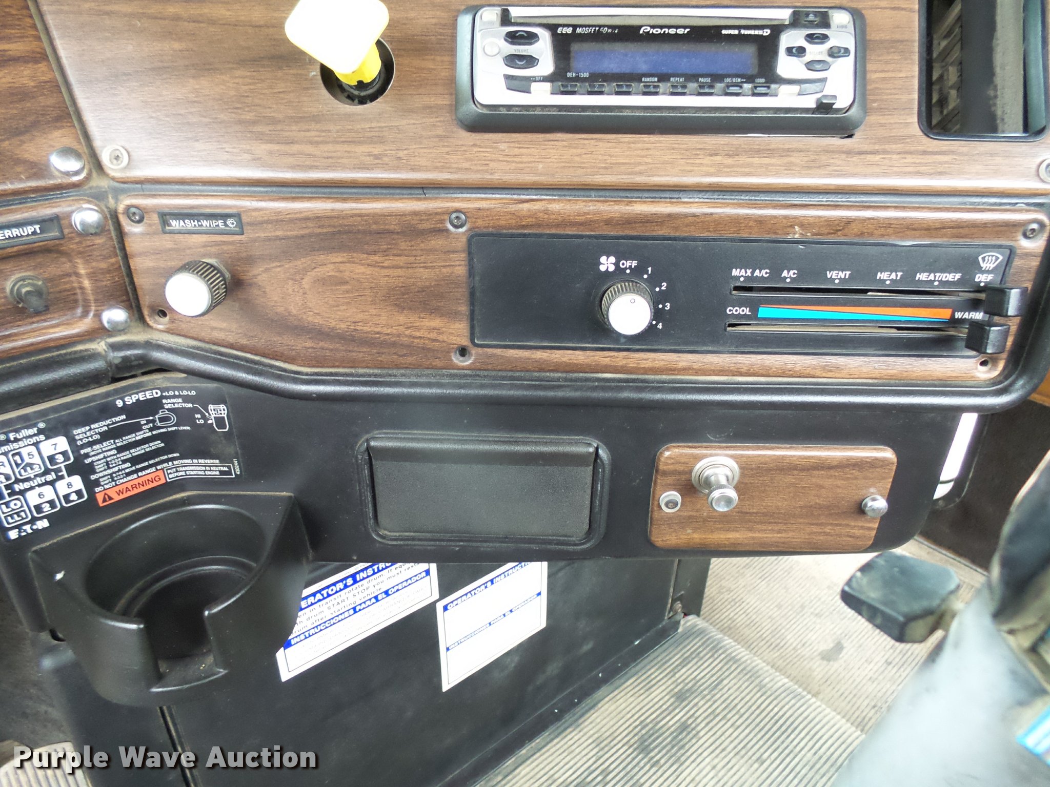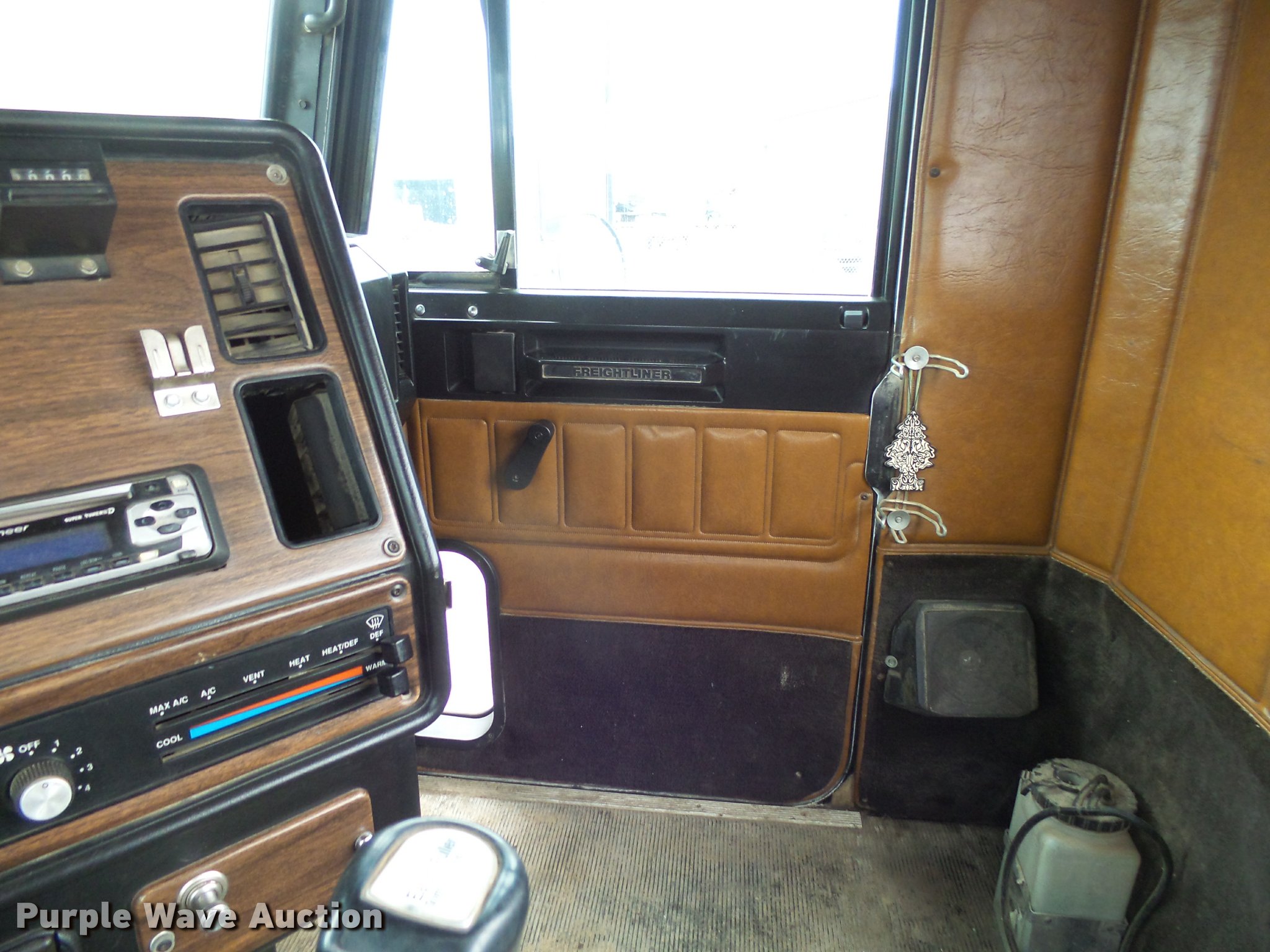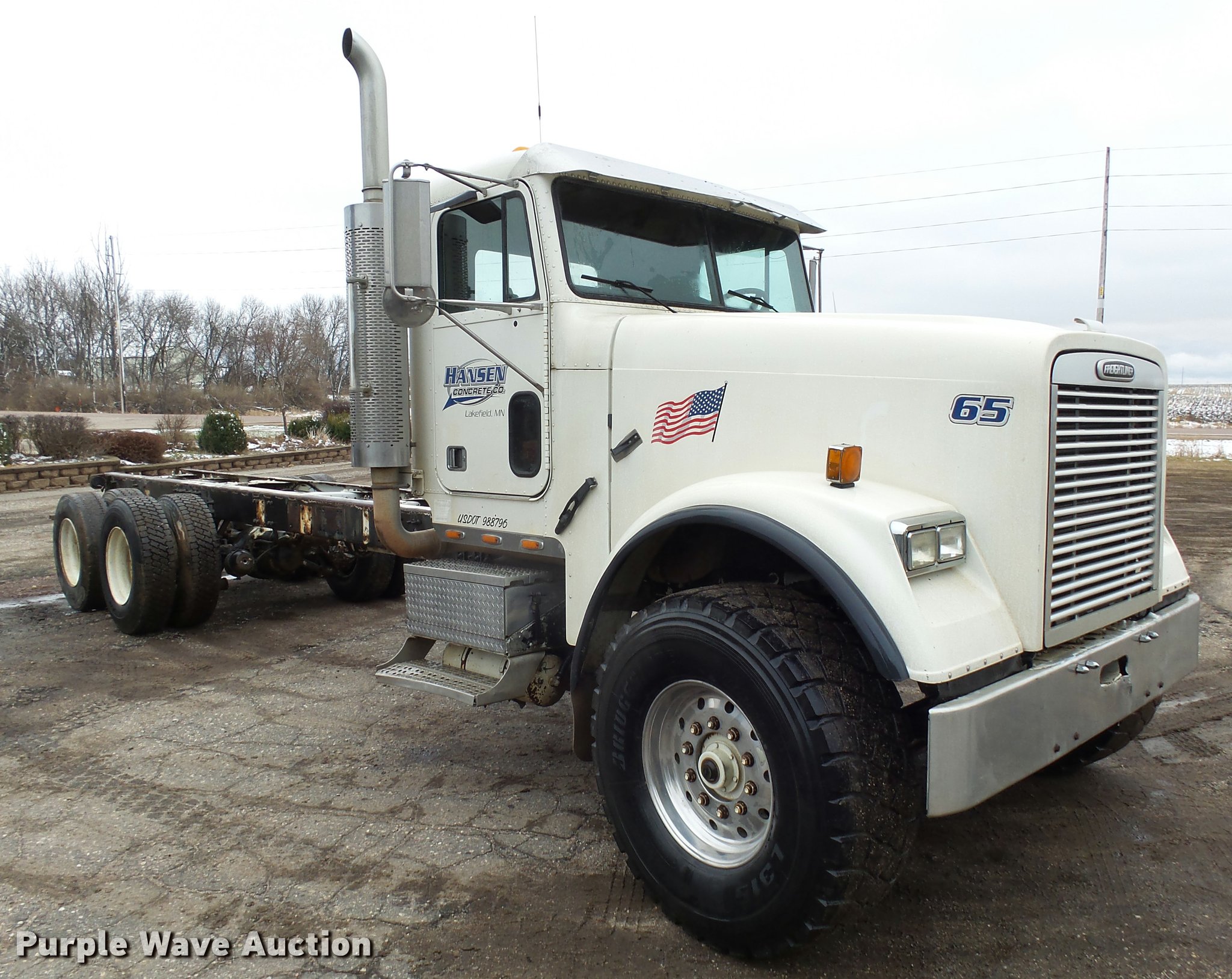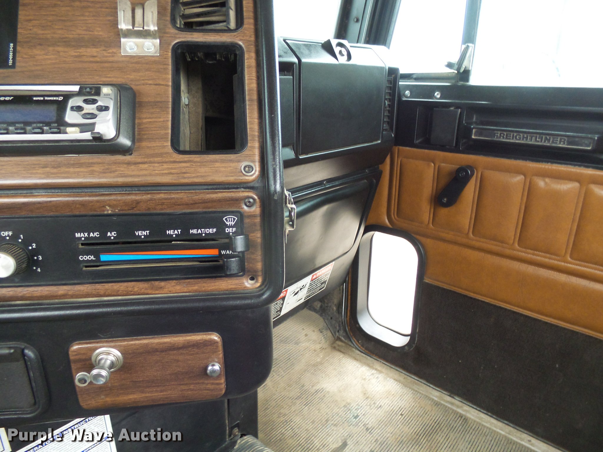 Purple Wave is selling a used Flat Bed Truck in Minnesota. This item is a 1997 Freightliner FLD120SD flatbed truck with the following: 252,944 miles on odometer, 2,704 hours on meter, Cummins L10 10.0L L6 diesel engine, Eaton Fuller nine speed manual transmission, Tandem axle, Full differential lock, AC and heat, AM/FM/CD, Spring suspension seat, Air ride cab, Block heater, Front tow hooks, Exterior visor, 22'L flatbed, Single exhaust stack, Single fuel tank, 24' wheelbase, Walking beam suspension, Air brakes, 445/65R22.5 front tires, 11R22.5 rear tires