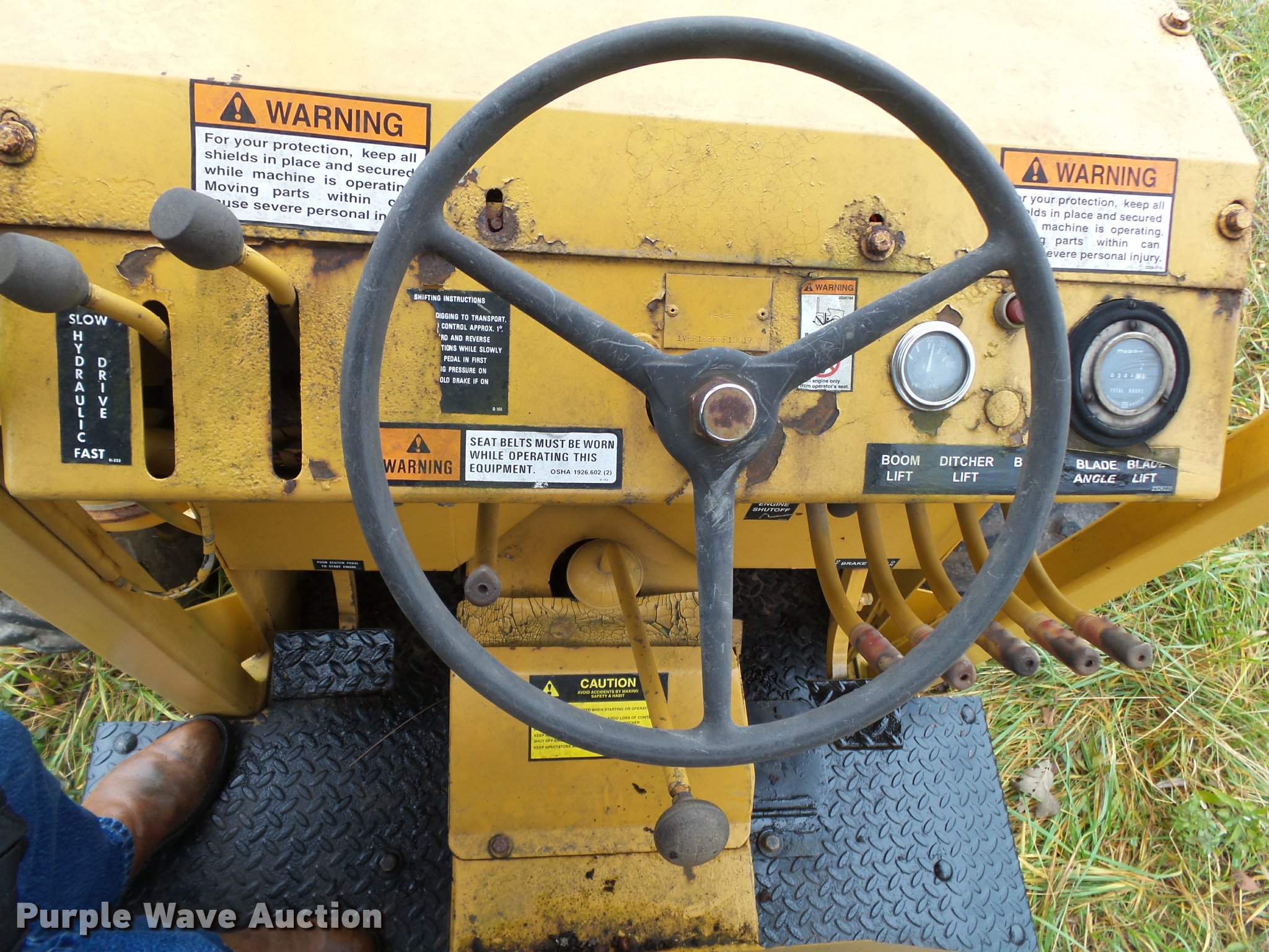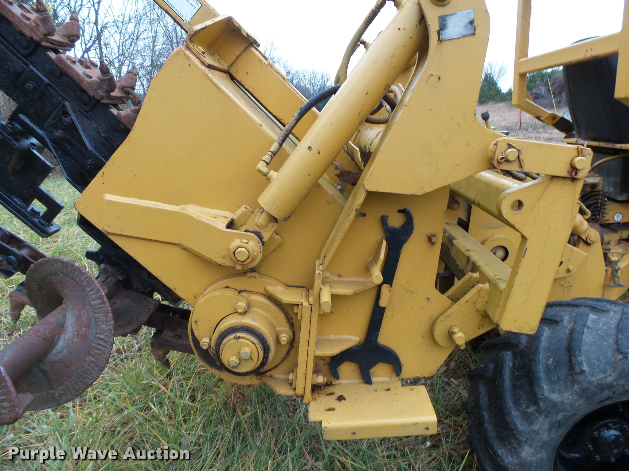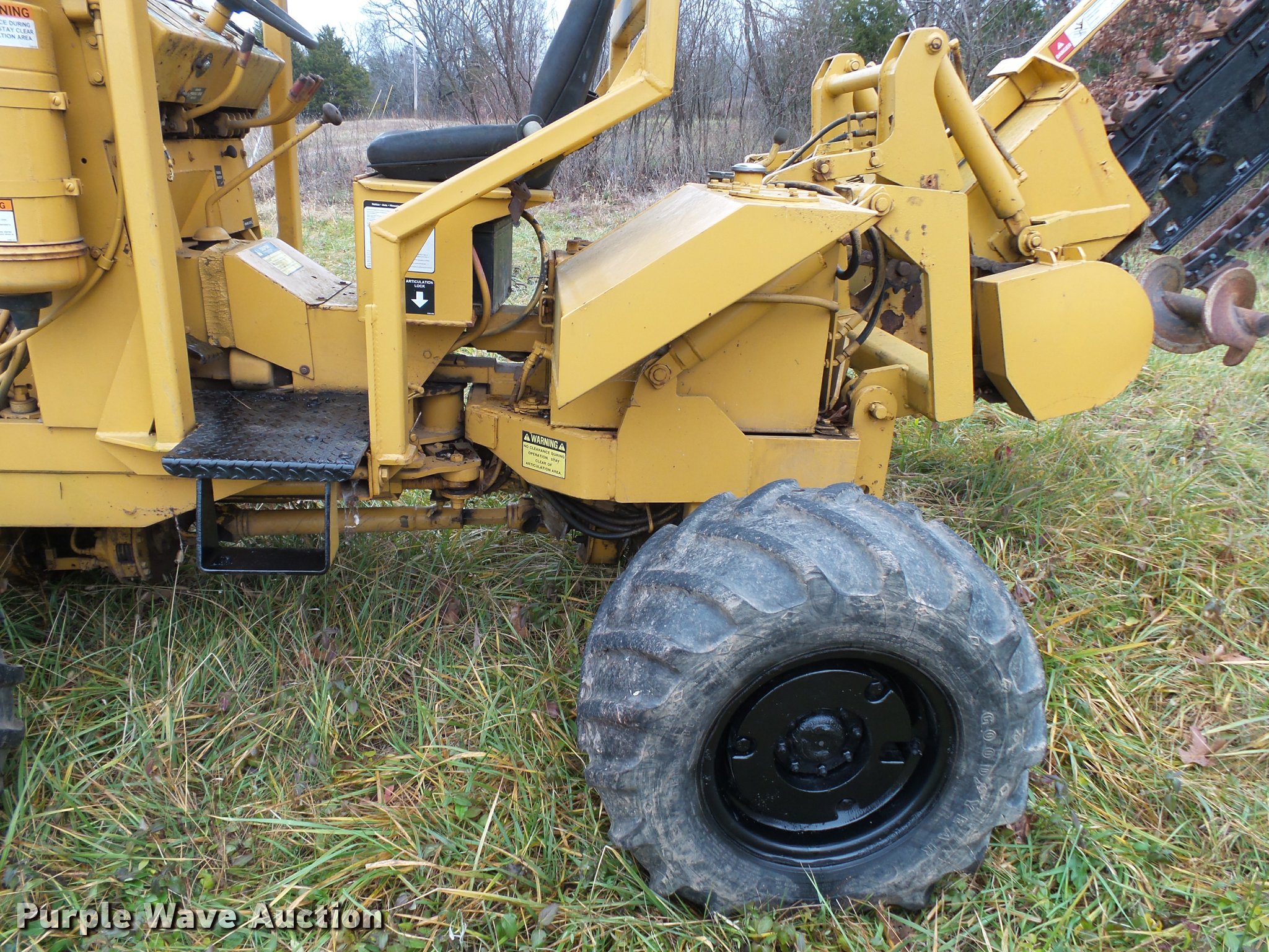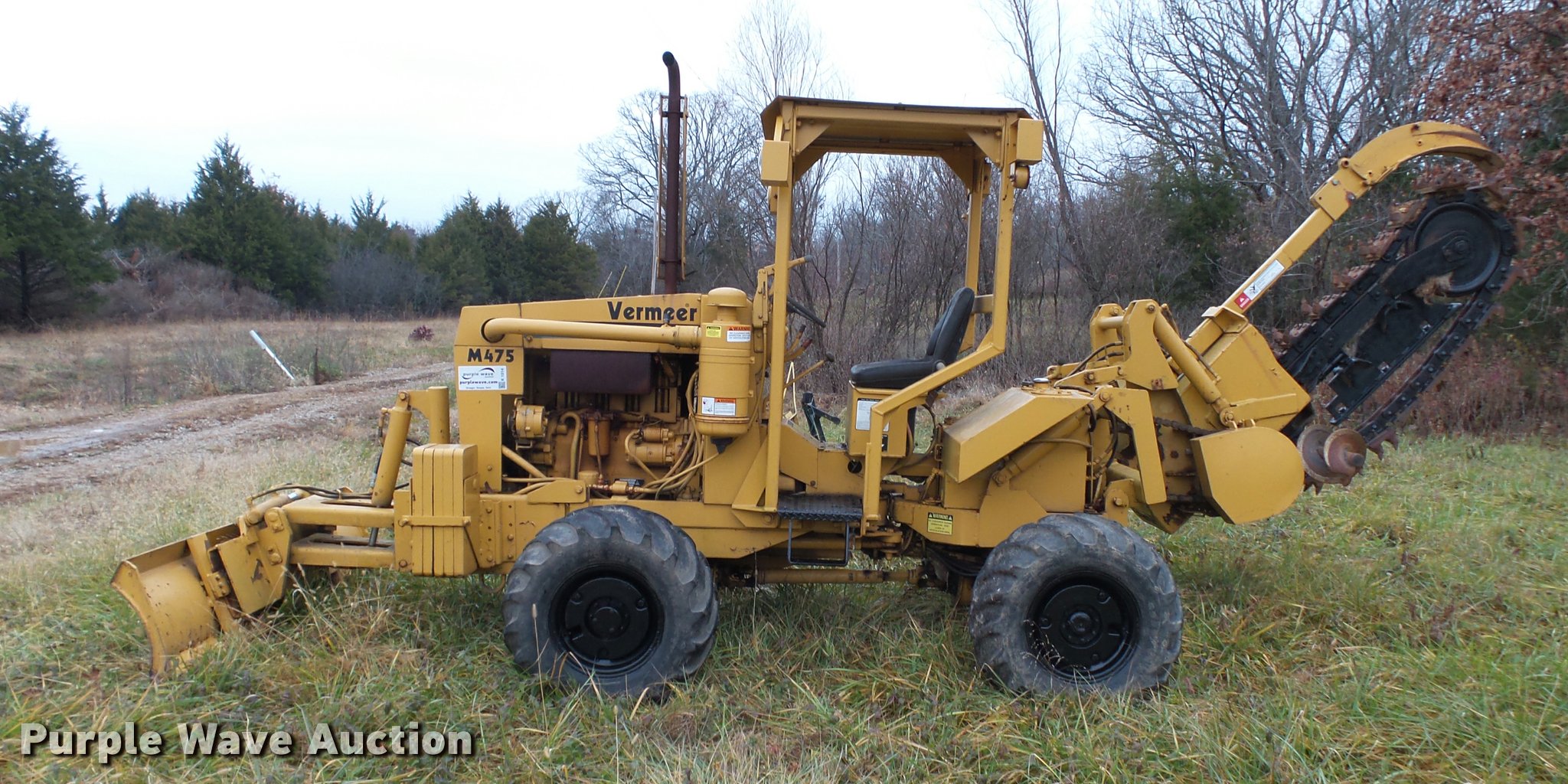 Purple Wave is selling a used Trencher or Rock Saw in Missouri. This item is a Vermeer M475 trencher with the following: 342 hours on meter, Deutz four cylinder diesel engine, 48 kW, Serial 7196749, Manual transmission, 4F-1R gears, Four wheel drive, Articulated steer, Front wheel steer, Creep control, Canopy, D-18 trencher, 12" cutting width, Serial 1VRH080D7F1002108, 80"W six-way back fill blade, Bolt-on cutting edge, Front weights, Front and rear work lights, 31 x 15.50-15 tires, Trencher engagement linkage needs adjustment, Serial 1VRF102F9F1001790