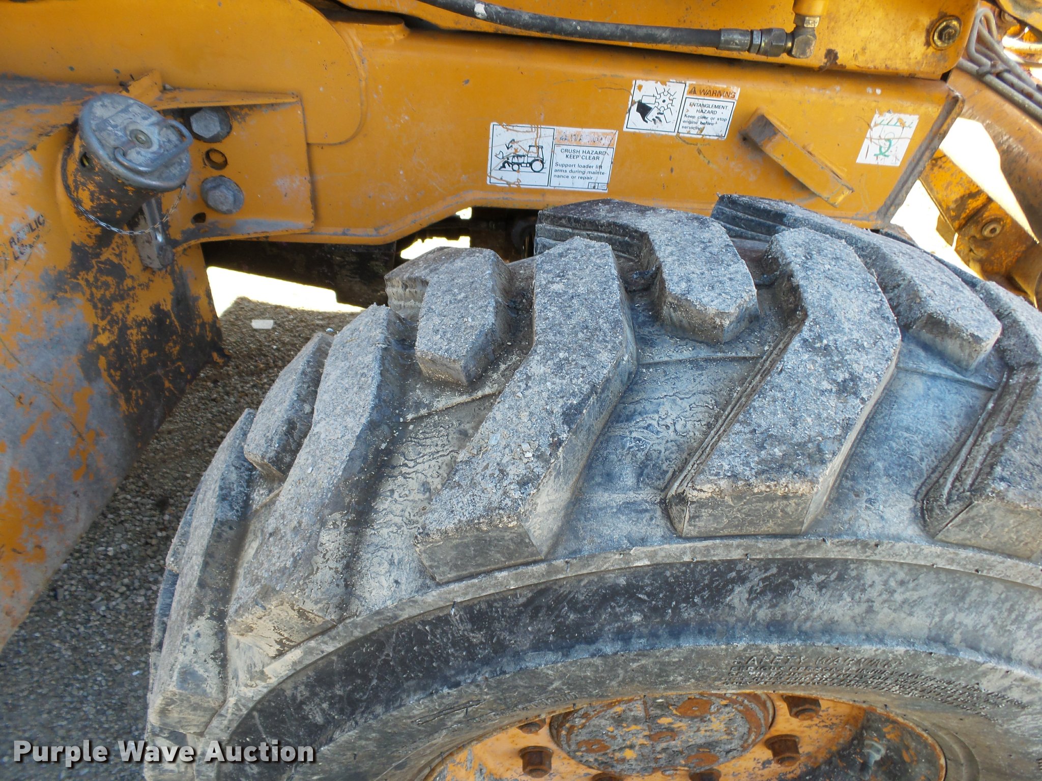 Purple Wave is selling a used Tractor Loader Backhoe in Missouri. This item is a 2006 Case 590 Super M Series II backhoe with the following: 7,120 hours on meter, Case 4T390 turbo diesel engine, Powershift transmission, 4F-4R gears, Four wheel drive, Ride control, EROPS, AC and heat, Suspension seat, Wobble stick backhoe controls, Wipers, Front and rear work lights, 92"W loader bucket, Four-in-one bucket, E-stick, 23"W backhoe bucket, Weld-on cutting edge, Manual quick coupler, Dirt pads, Front counterweights, Drivetrain guards, 14-17.5 NHS front tires, 21L-24 rear tires, Hood rust, Rear cab glass missing, Left lower glass missing, Swing cylinder leaks, Serial N5C394698