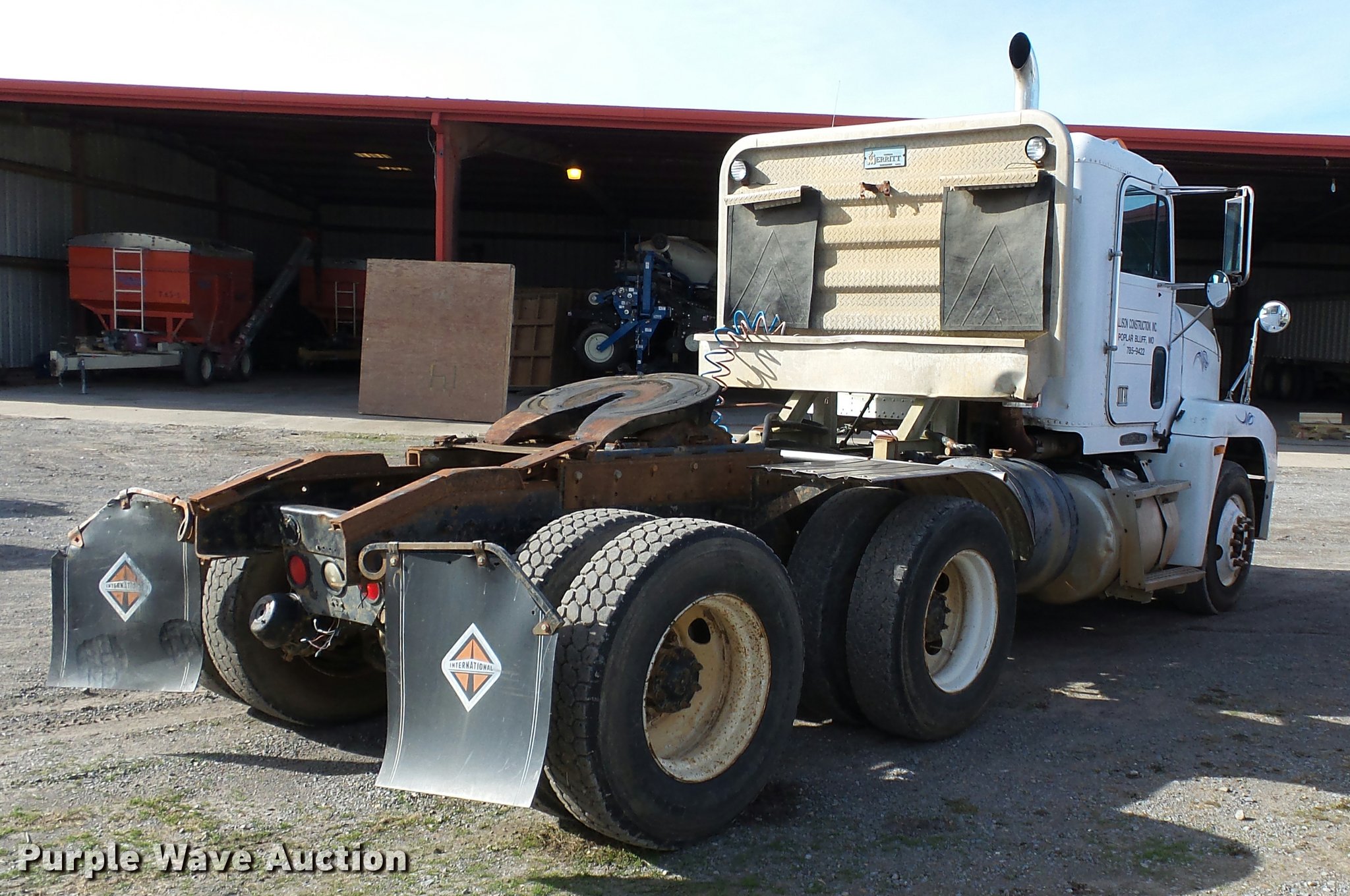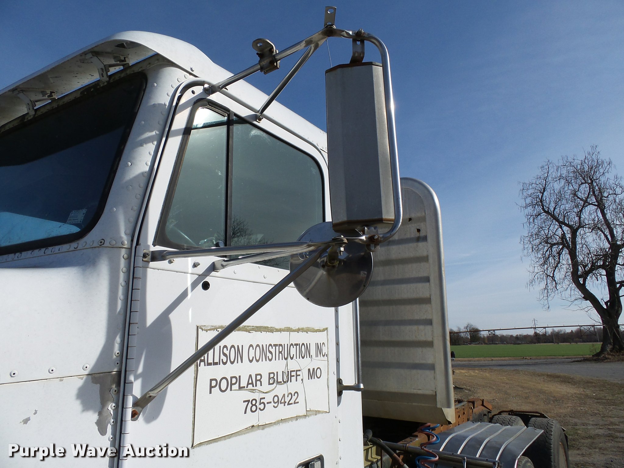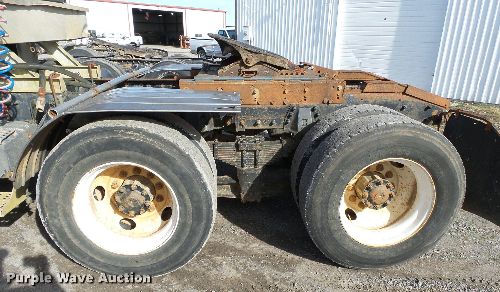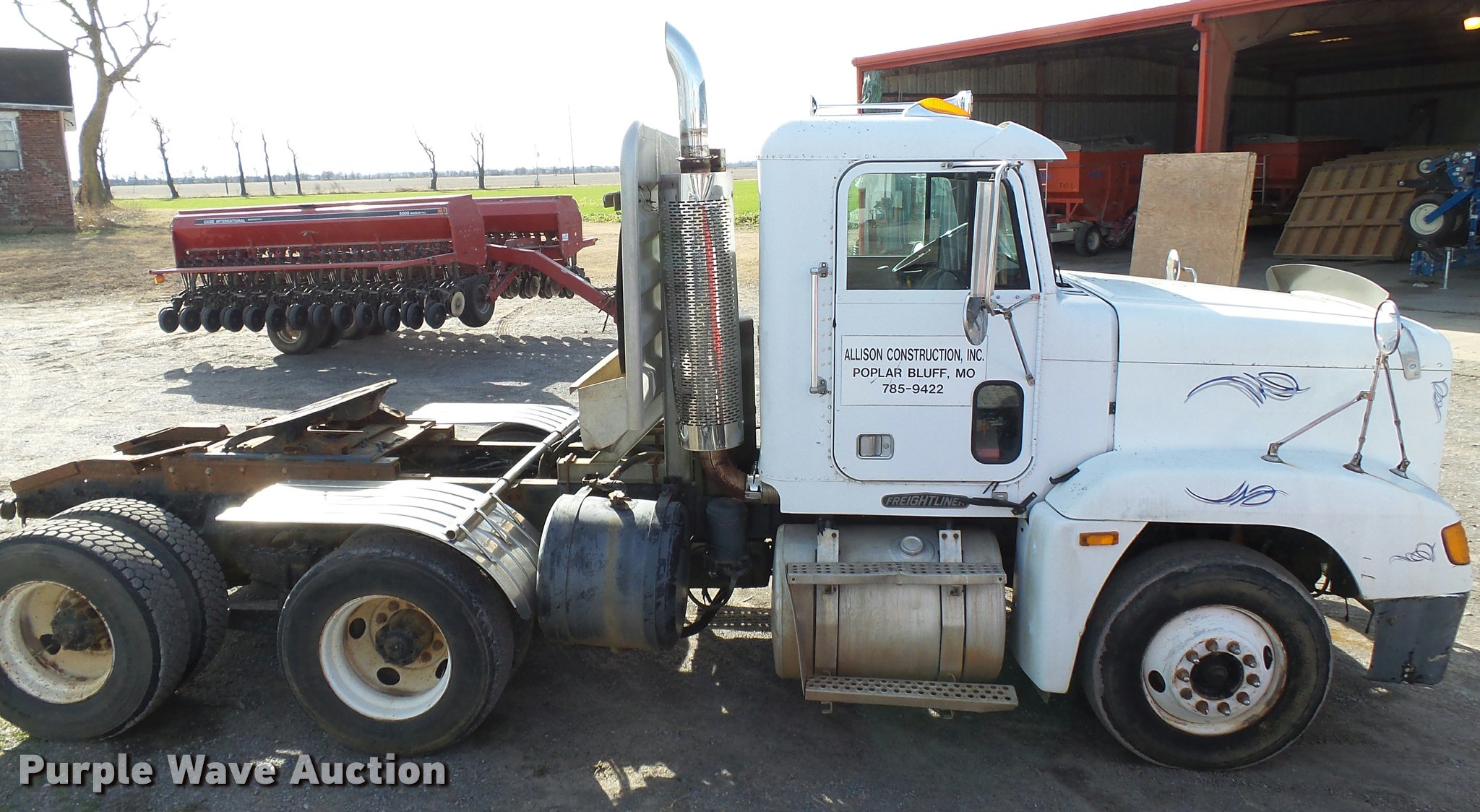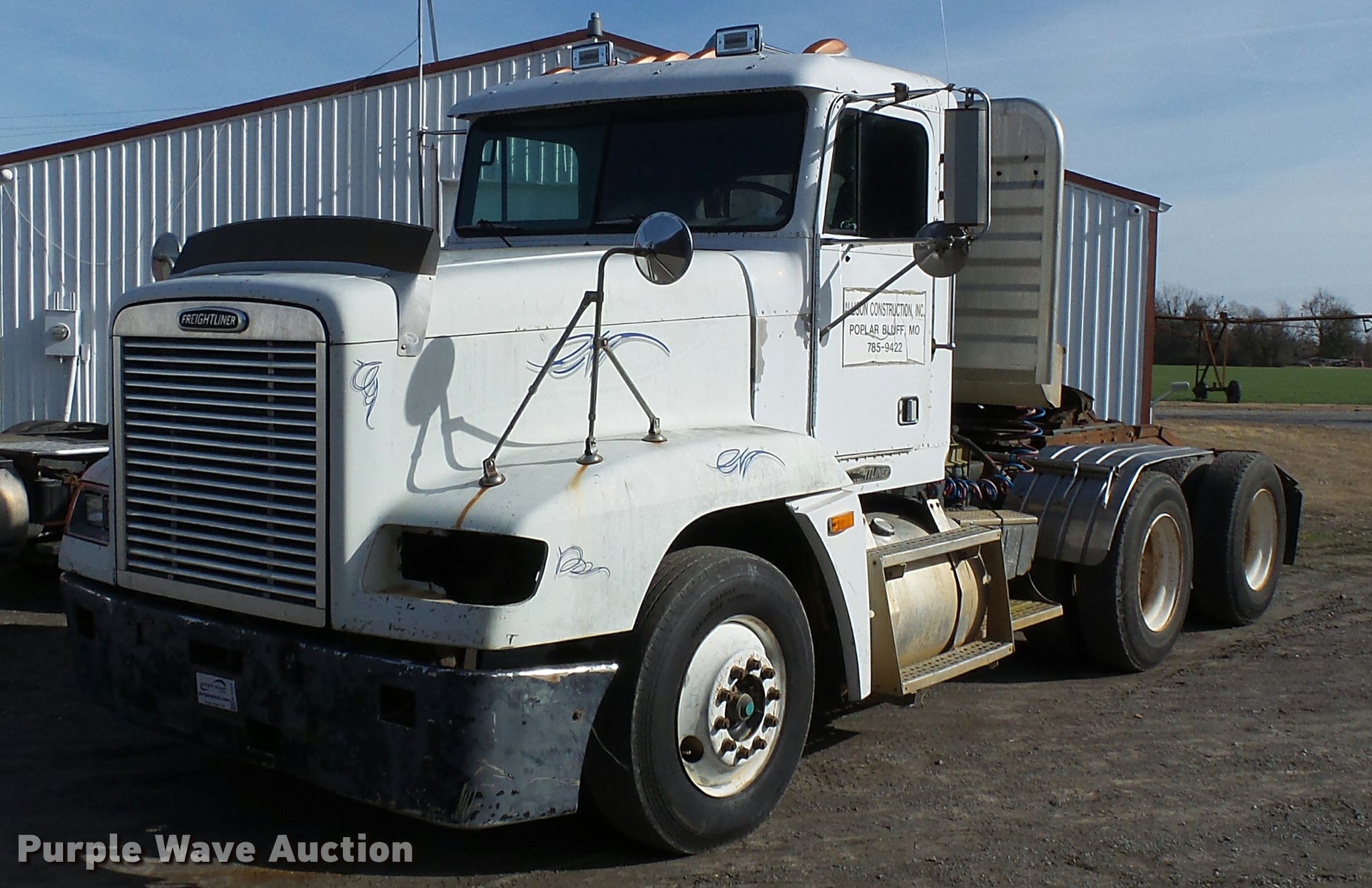 Purple Wave is selling a used Truck Tractor in Missouri. This item is a 1993 Freightliner FLD semi truck with the following: 363,679 miles on odometer, Actual mileages unknown, Caterpillar 3406 14.6L L6 turbo diesel engine, 15 speed manual transmission, Tandem axle, Inter-axle differential lock, Differential traction control, AC and heat, Telescoping steering wheel, FM, Air suspension seat, Exterior visor, PTO, Wet kit, Aluminum headache rack, Air operated sliding fifth wheel plate, Single exhaust stack, Dual fuel tanks, Stainless steel half fenders, Mud flaps, 168" wheelbase, Spring over walking beam suspension, Air brakes, 295/75R22.5 tires, GVWR 52,000 lbs, FAWR 12,000 lbs, IAWR 20,000 lbs, RAWR 20,000 lbs, Battery dead