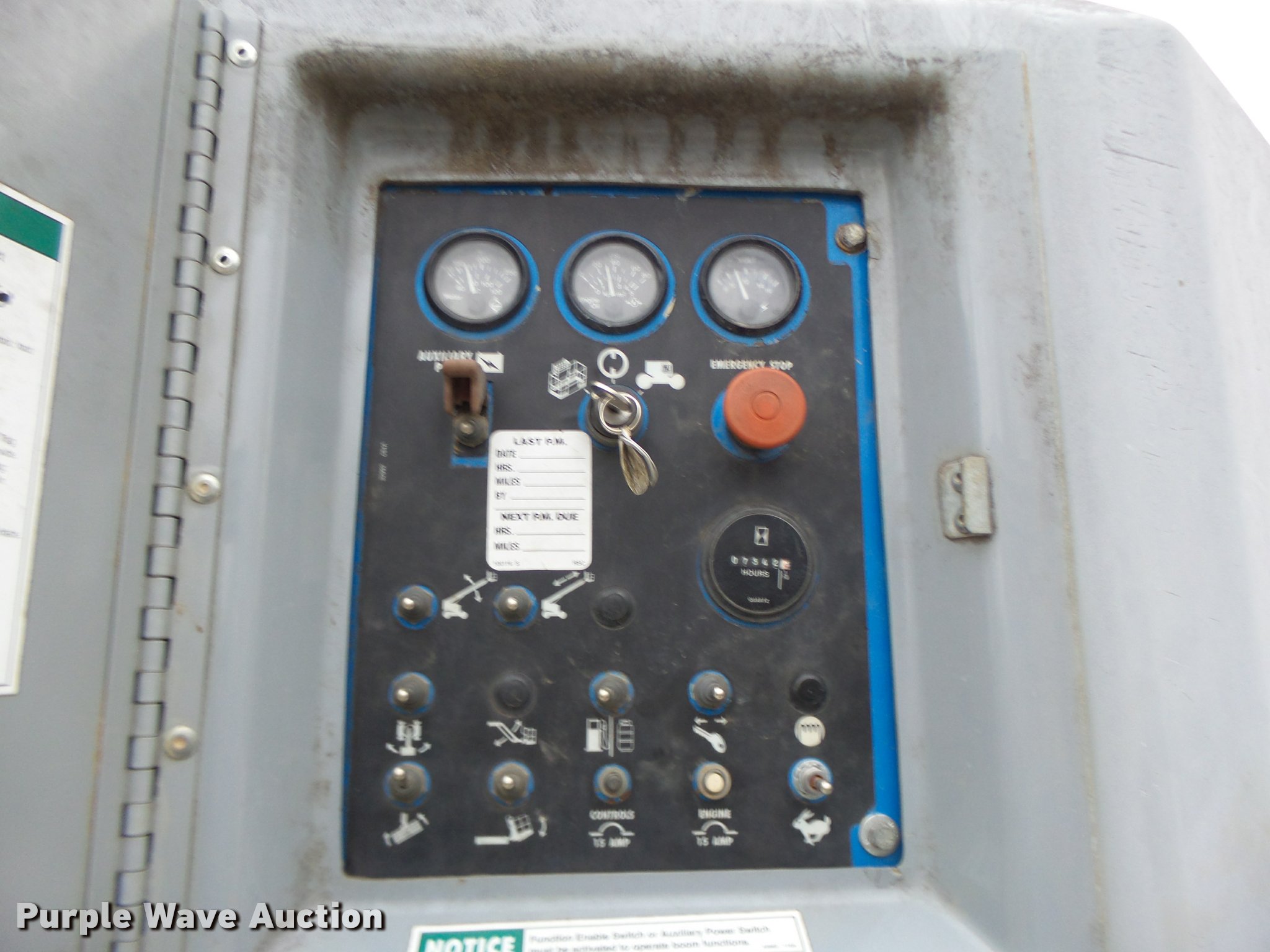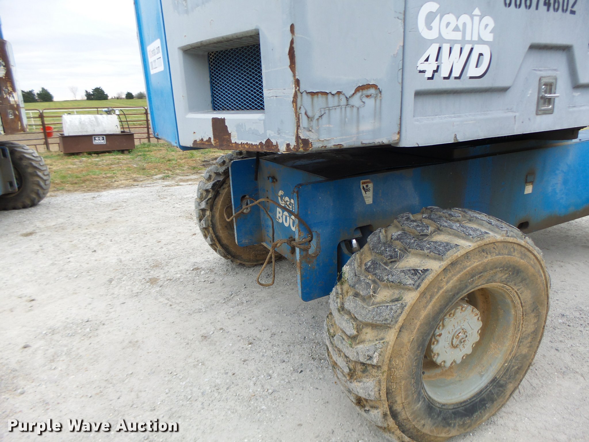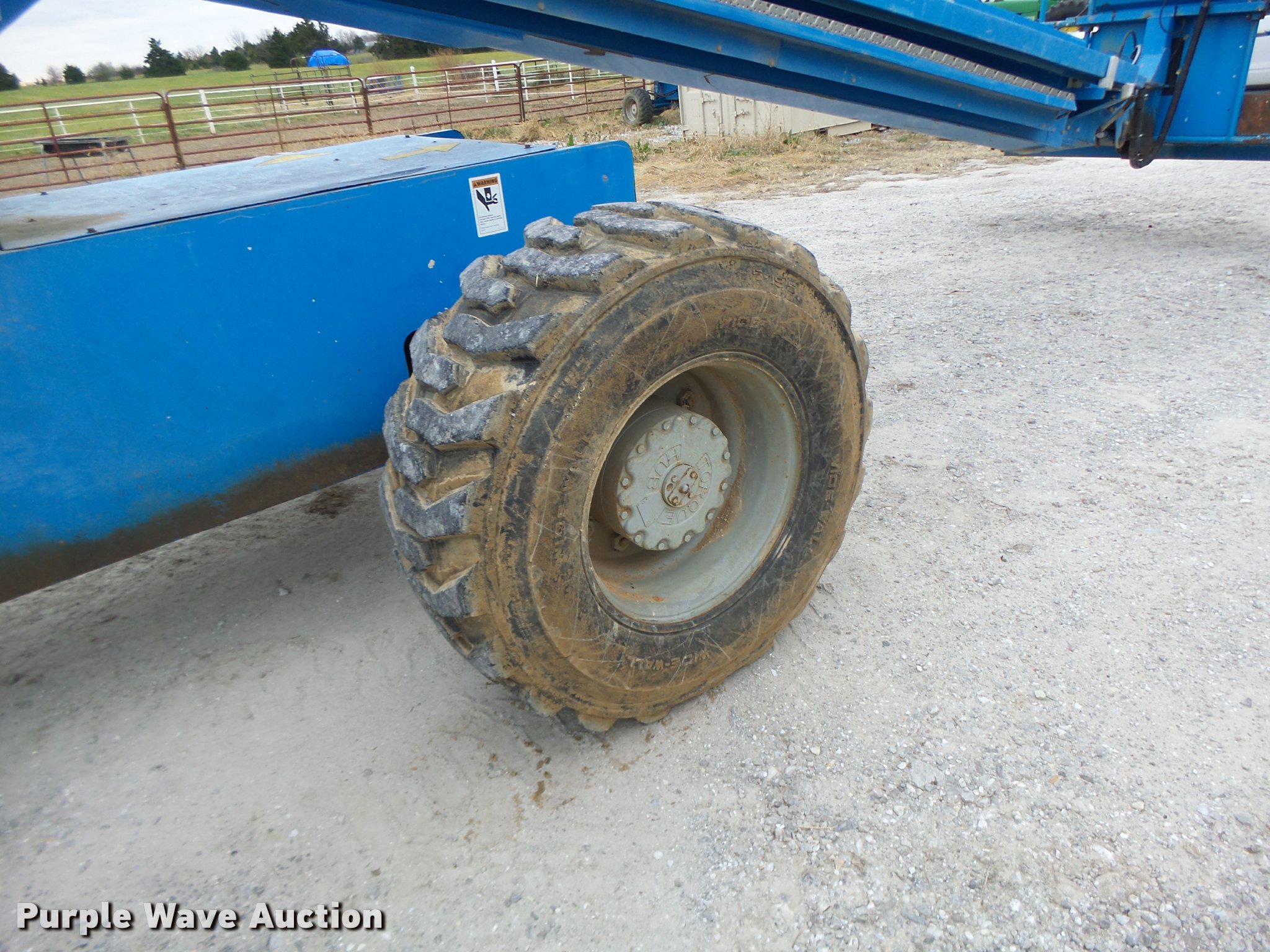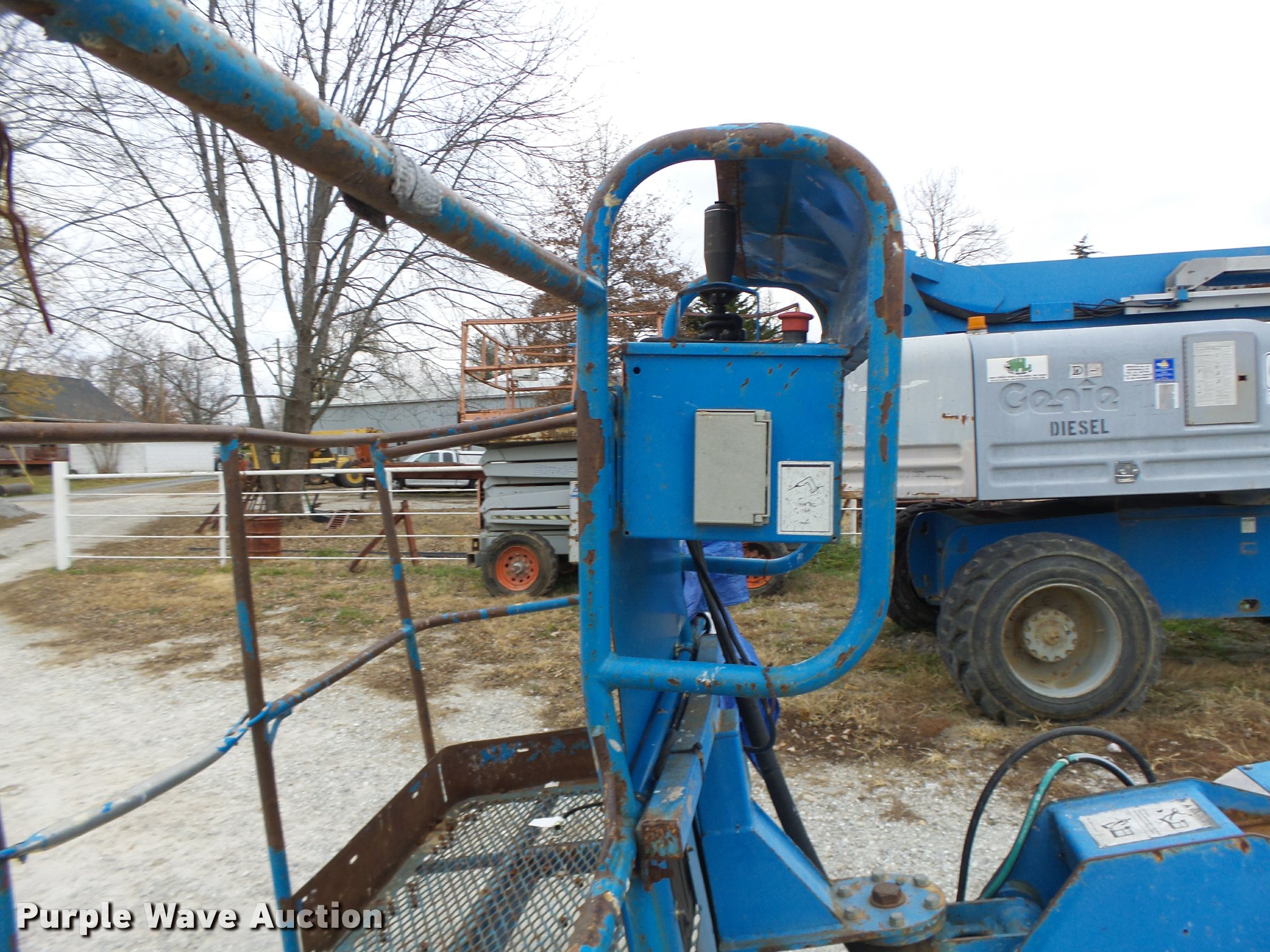 Purple Wave is selling a used Boom Lift in Missouri. This item is a 1997 Genie S60 boom lift with the following: 7,342 hours on meter, Ford four cylinder dual fuel engine, Four wheel drive, 500 lbs maximum lift capacity, 60' maximum lift height, 3'L x 5'W platform, Platform and ground controls, AC power outlet, 15-19.5 tires, Serial 1533