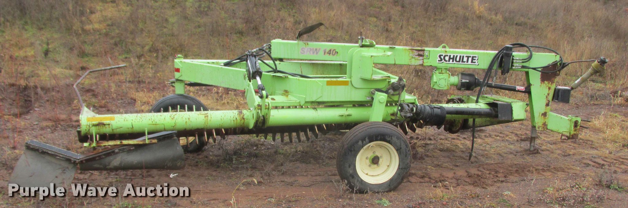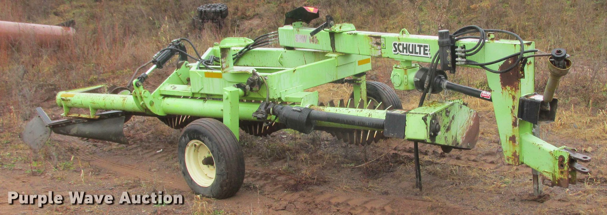 Purple Wave is selling a used Ag Equip. Other in Minnesota. This item is a Schulte SRW1400 rock rake with the following: 14' rake length, Hydraulic fold, PTO driven, Pin hitch, 9.5-15 tires