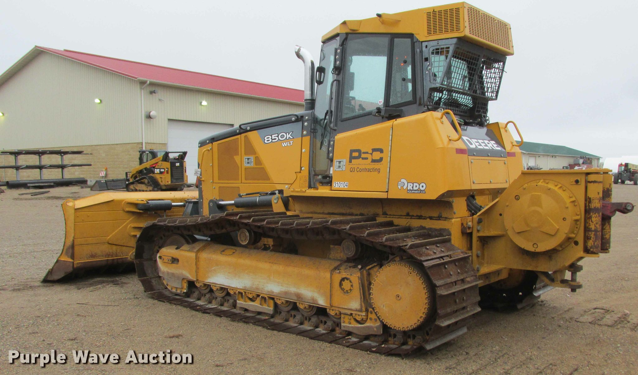 2012 John Deere 850K WLT dozer. 2,080 hours on meter, John Deere 6.8L six cylinder diesel engine 205 HP, Hydrostatic transmission 3F-3R gears, Three reverse ratios, Cab, Suspension seat, Differential steering, Front and rear wipers, Door wipers, Front and rear work lights, 158" six-way dozer blade, Auxiliary hydraulics, John Deere Paccar AT303088 winch 1" cable, Rear drawbar, Eight bottom rollers, 30" single grouser track pads, Serial 1T0850KXCCF219962. Q3 Contracting. 29098 Canton Court. Farmington, MN 55024