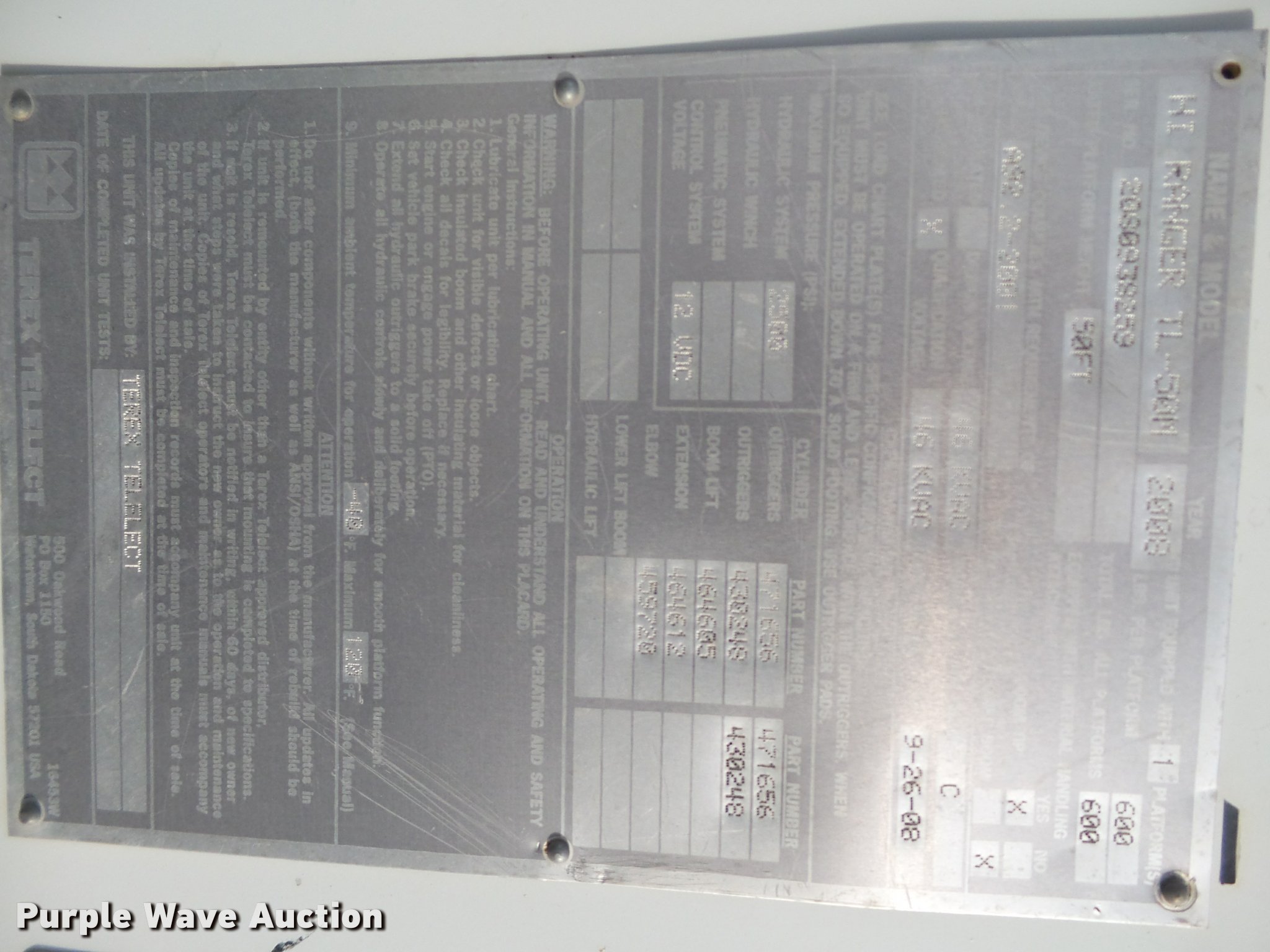 - 2008 Terex boom