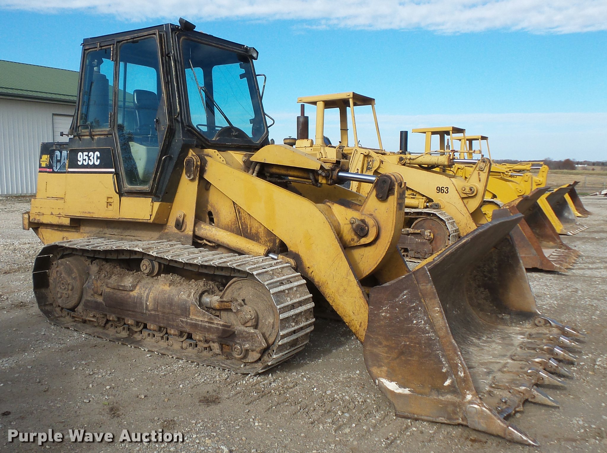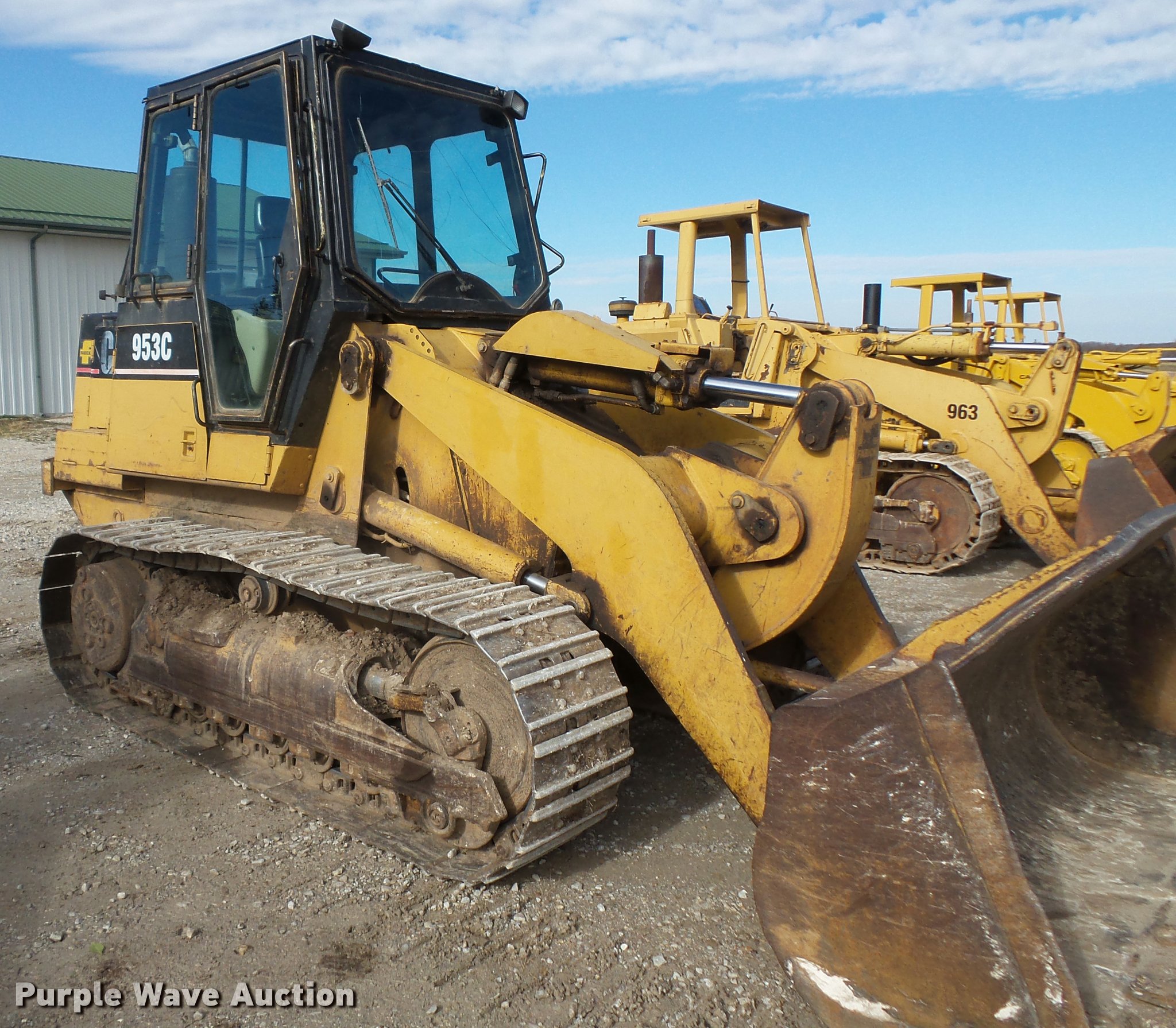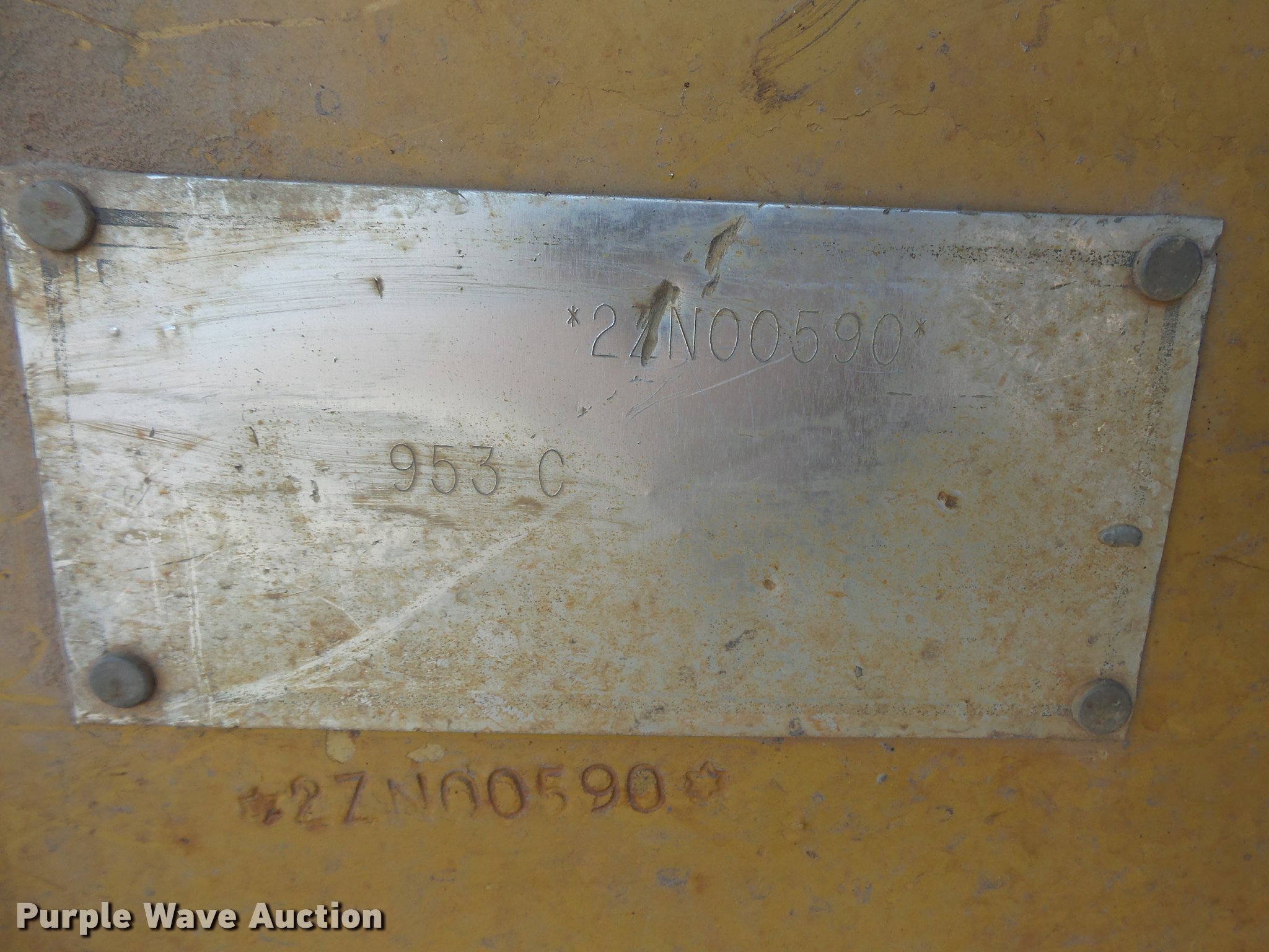 Purple Wave is selling a used Crawler Loader in Missouri. This item is a 1996 Caterpillar 953C track loader with the following: 16,050 hours on meter, Caterpillar 3116 diesel engine, Serial 4TF31301, Hydrostatic transmission, Enclosed cab, AC and heat, Suspension seat, Two-lever bucket controls, Wipers, Front work lights, General purpose bucket, Bolt-on cutting edge, (7) teeth, 19.5"W double grouser track pads, One shank missing, Glass cracked, Serial 2ZN00590