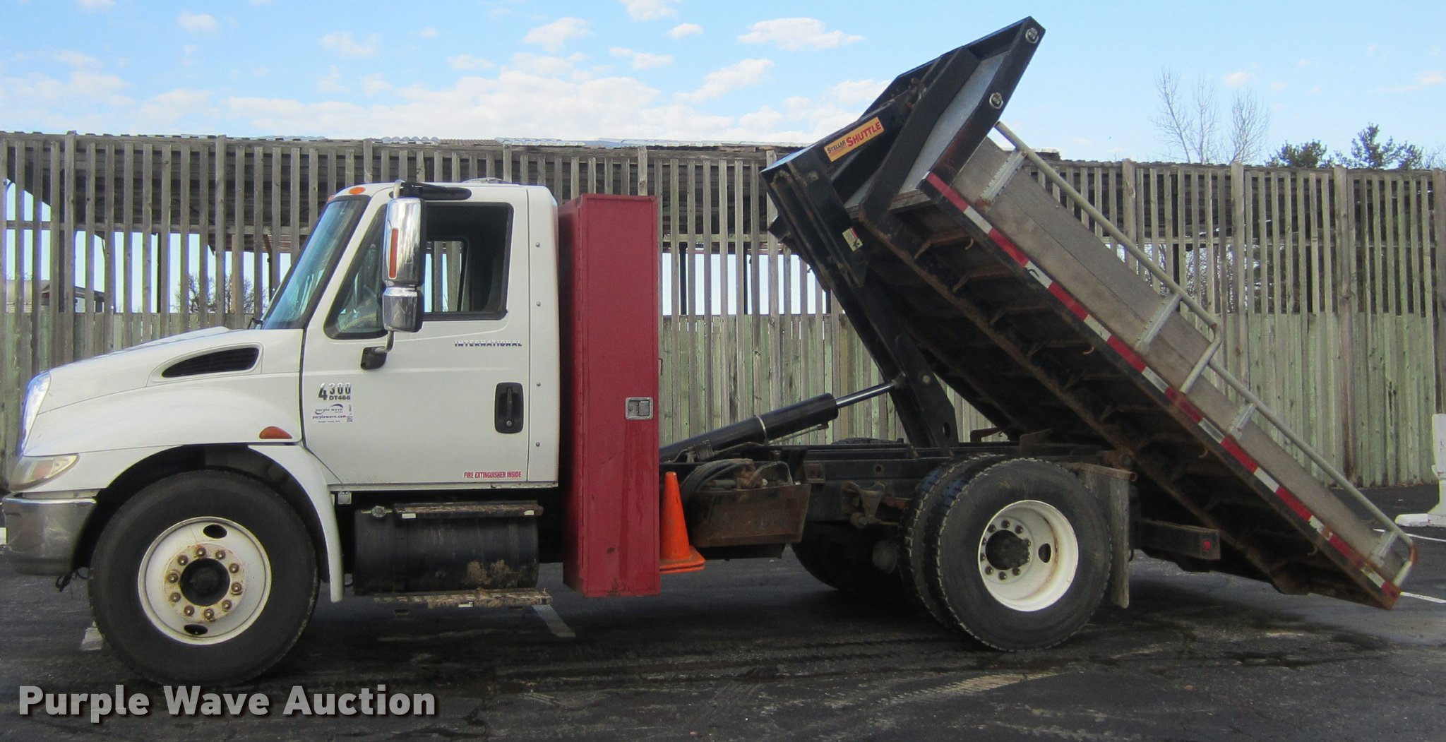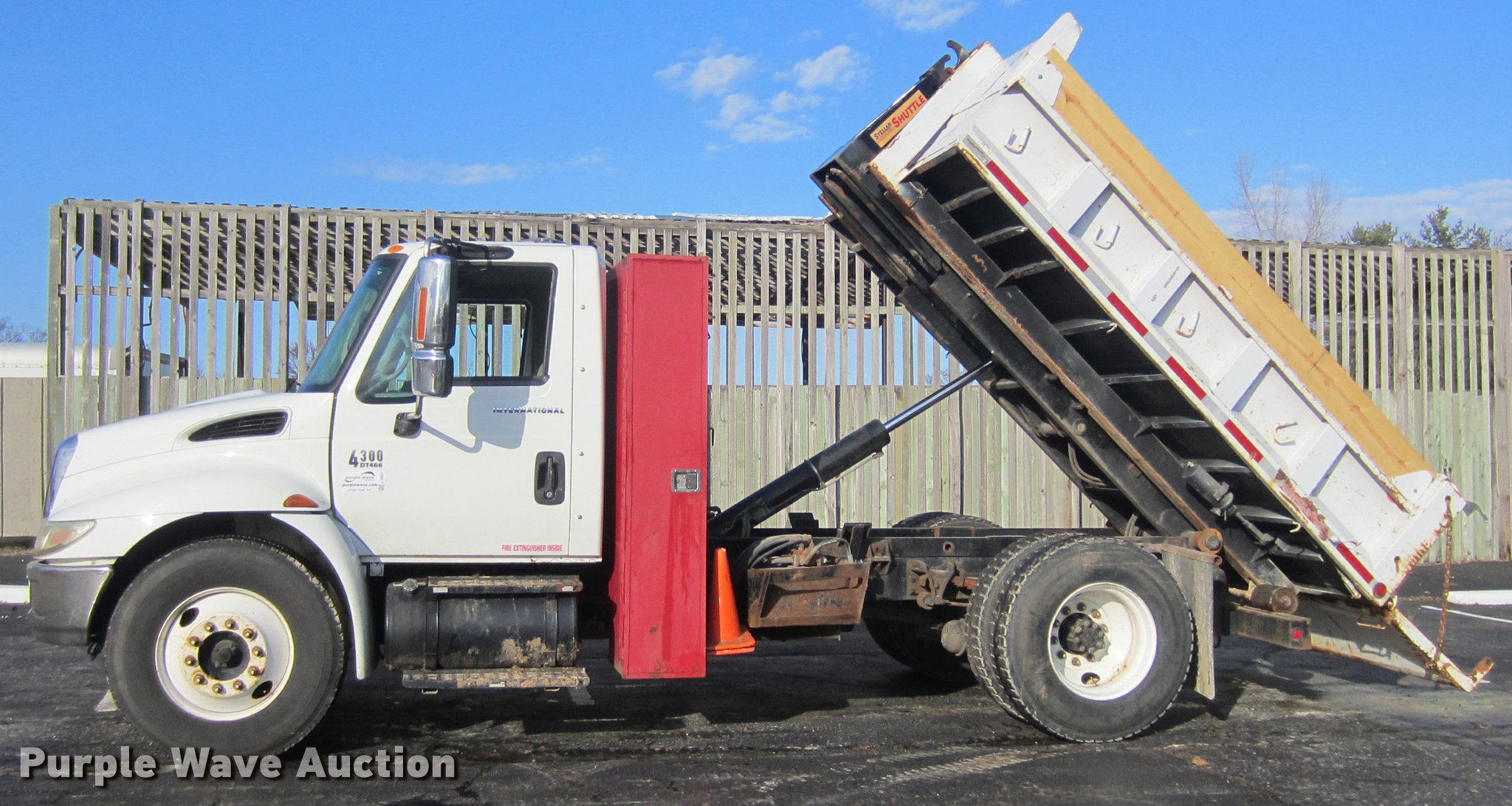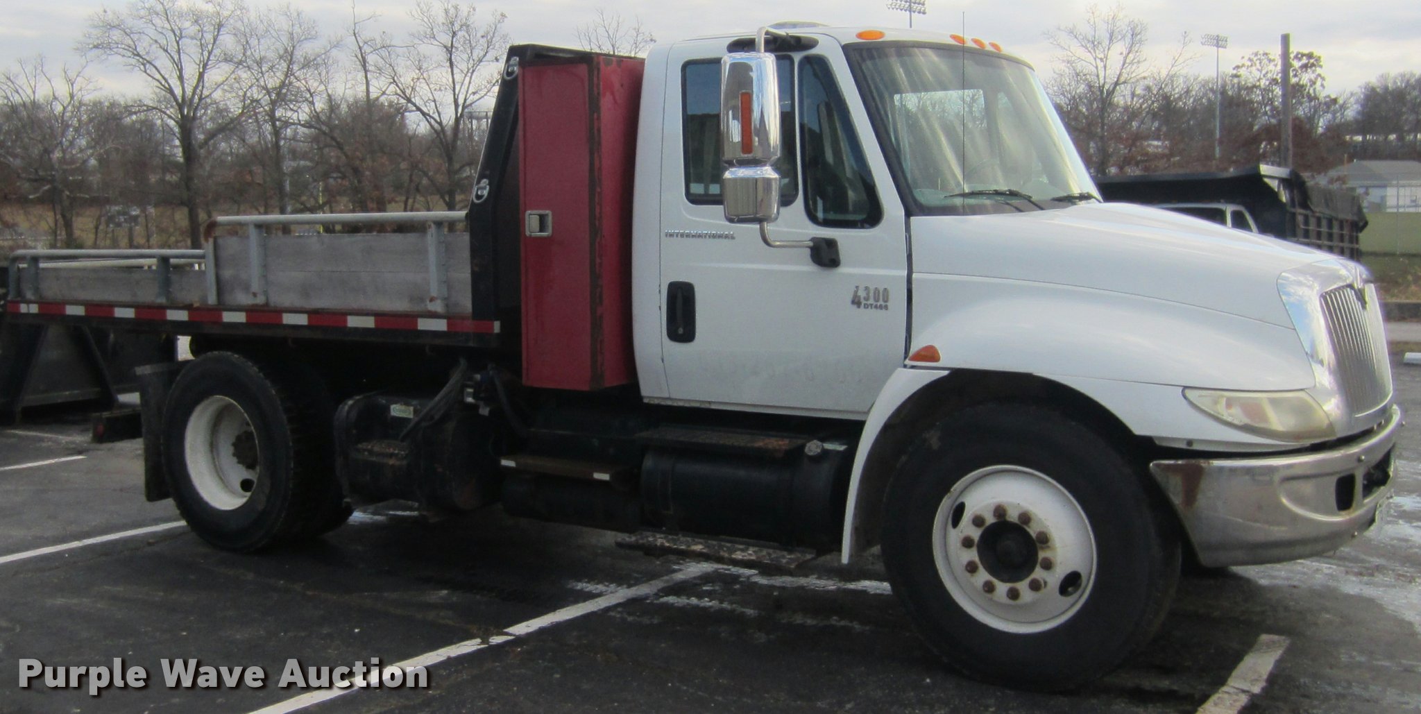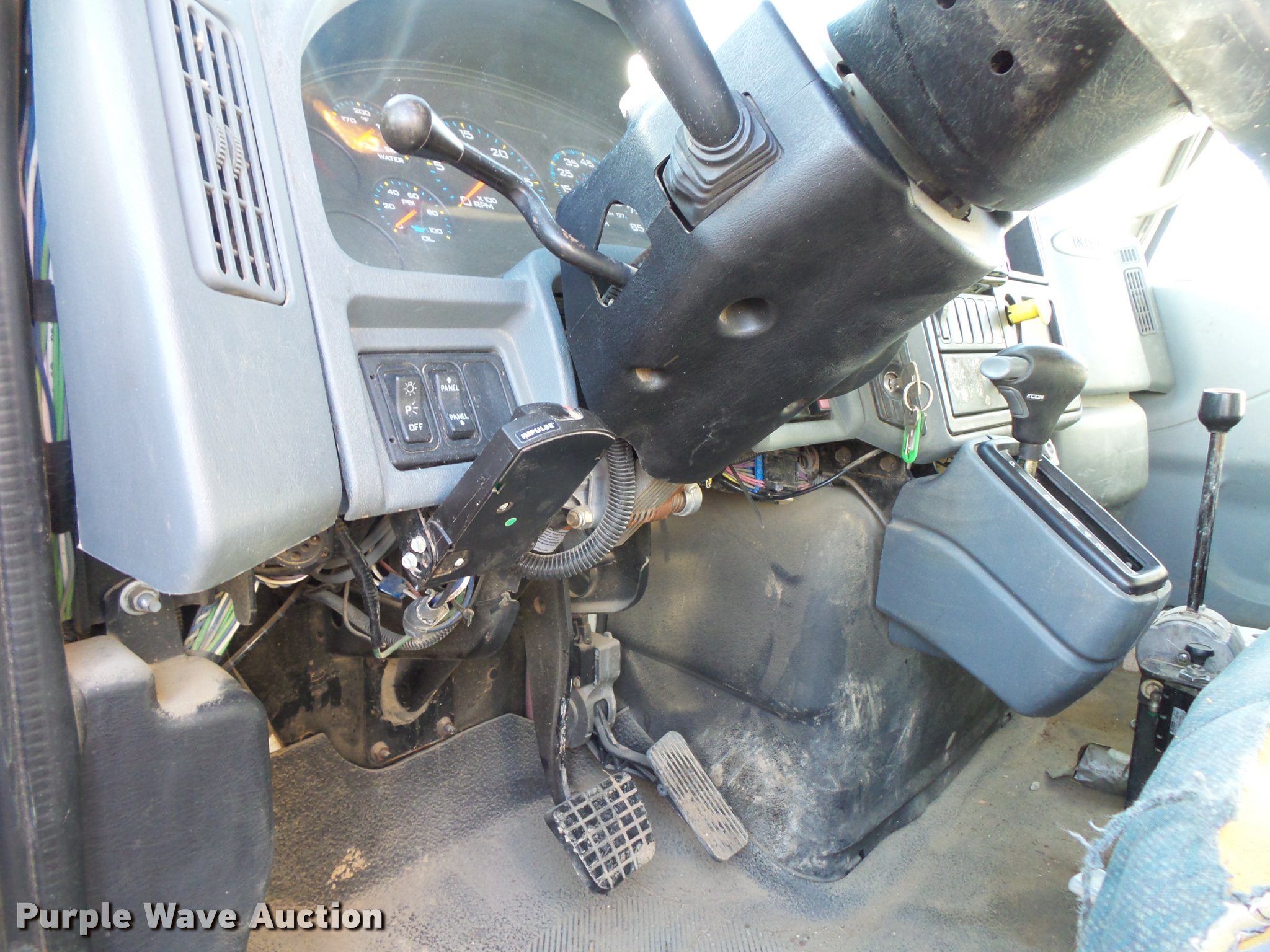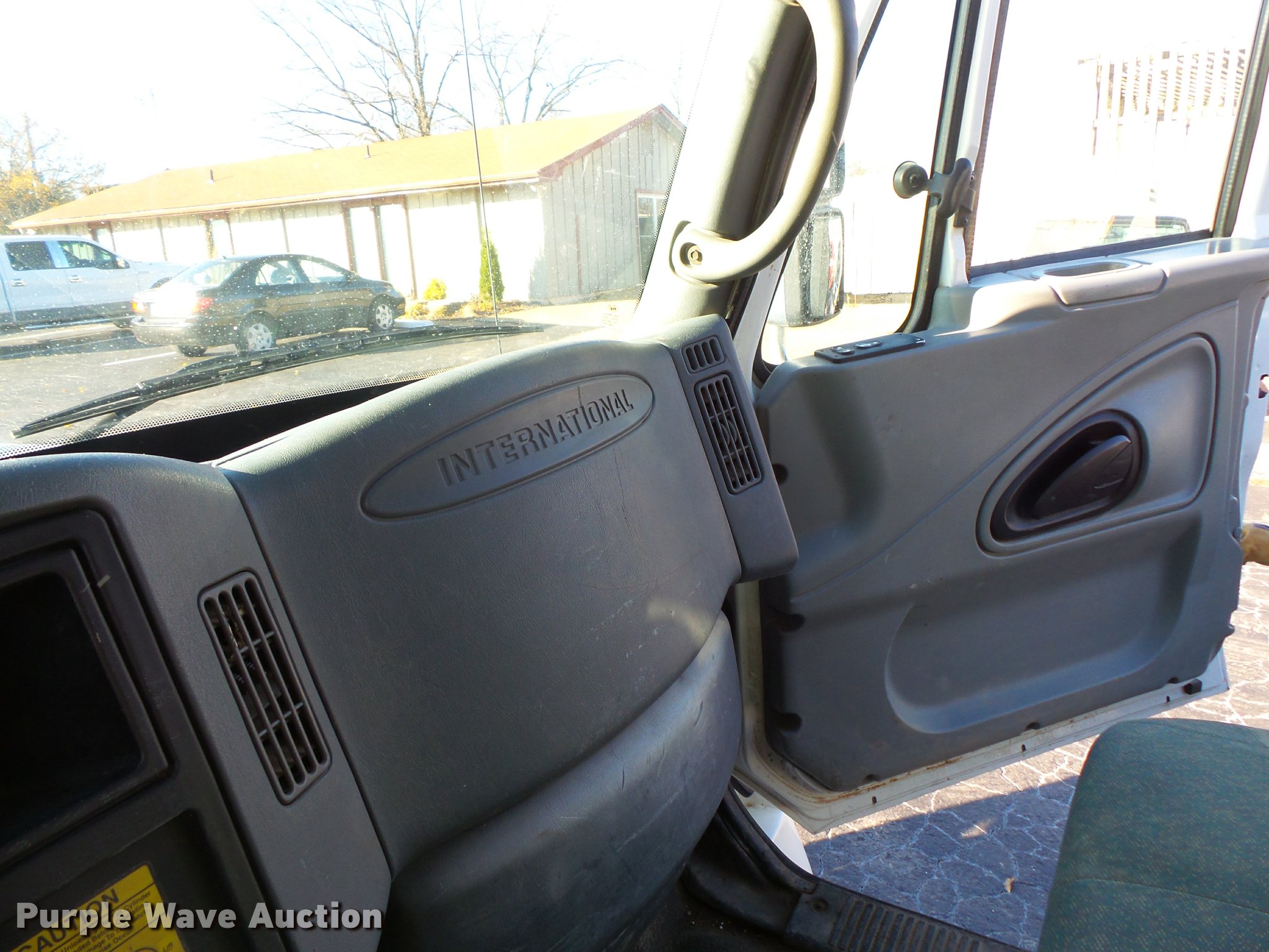 Purple Wave is selling a used Rollback or Tow Truck in Missouri. This item is a 2003 International DuraStar 4300 hooklift / roll off truck with the following: 326,150 miles on odometer, International DT466 7.6L L6 turbo diesel engine, Automatic transmission, Single axle, AC and heat, Cruise, AM/FM, Power windows, PTO, Stellar 84-10Flex flex hook bed, Serial JEM062M60, (3) additional beds, Refuse dumpster, 10.5'L x 8'W x 41"H, Flatbed, 12'4"L x 8'W, Dump bed, 11'L x 7'10"W x 33"H,, Auxiliary fuel tank with pump, Spring suspension, Air brakes, 11R22.5 tires