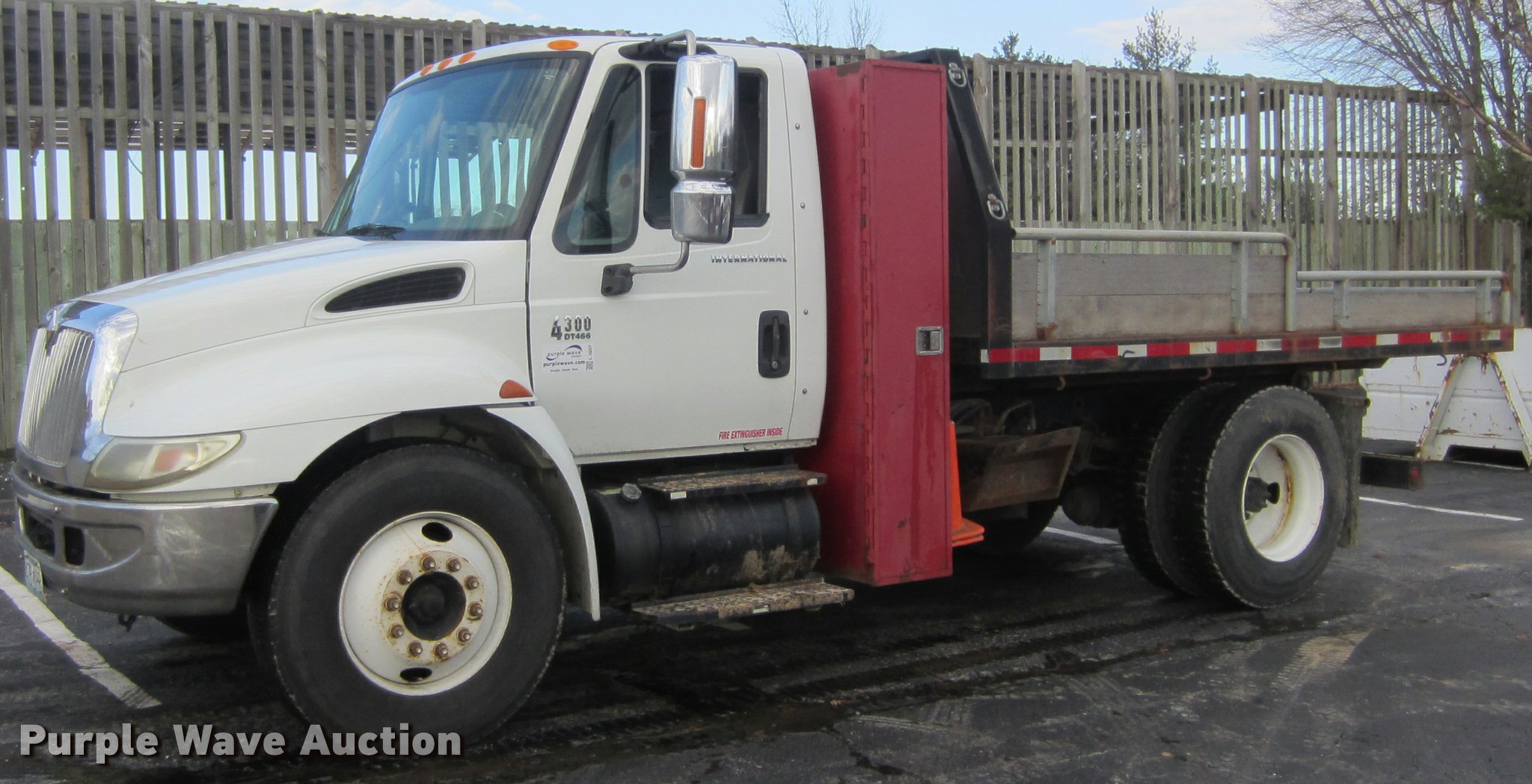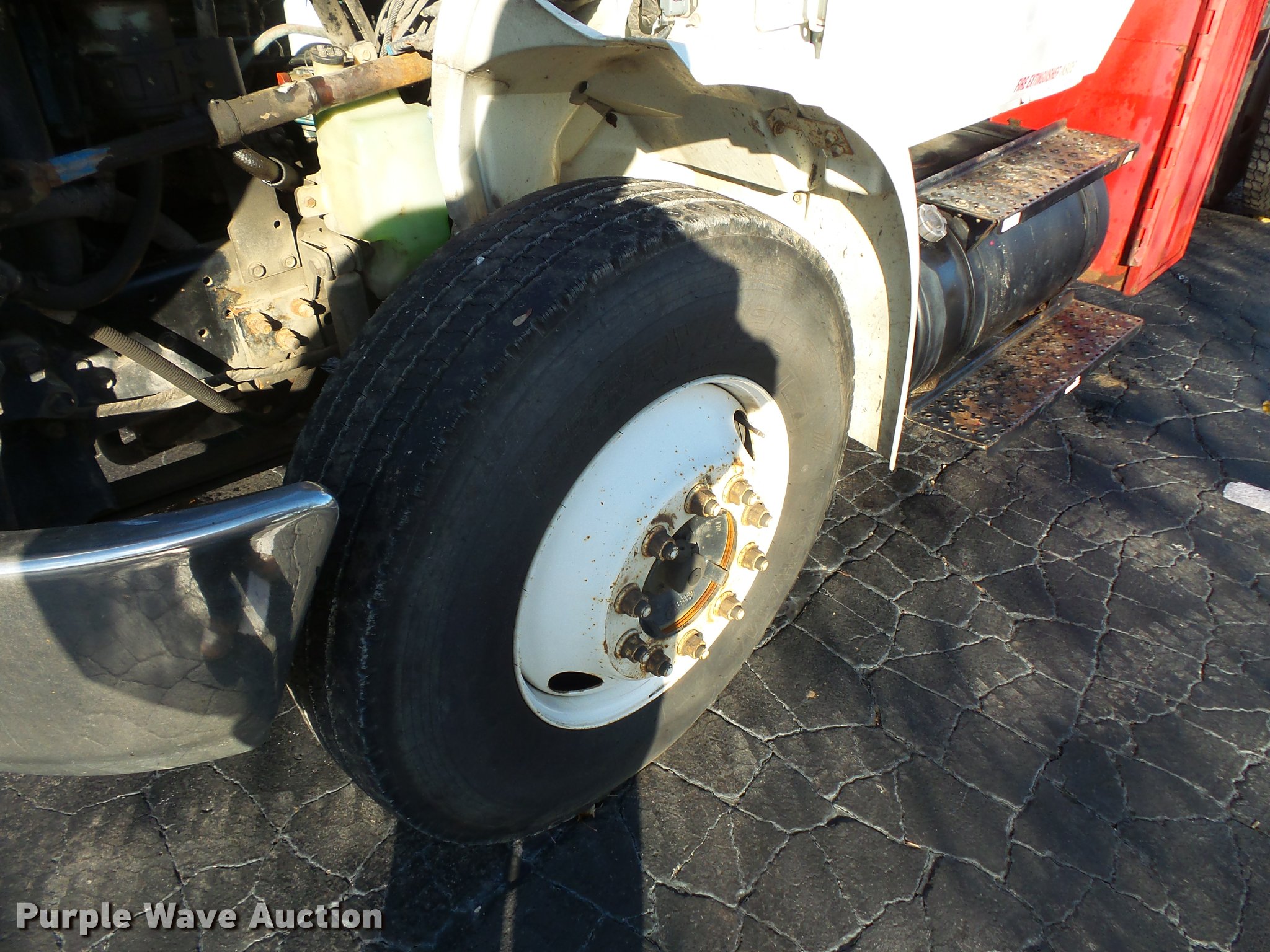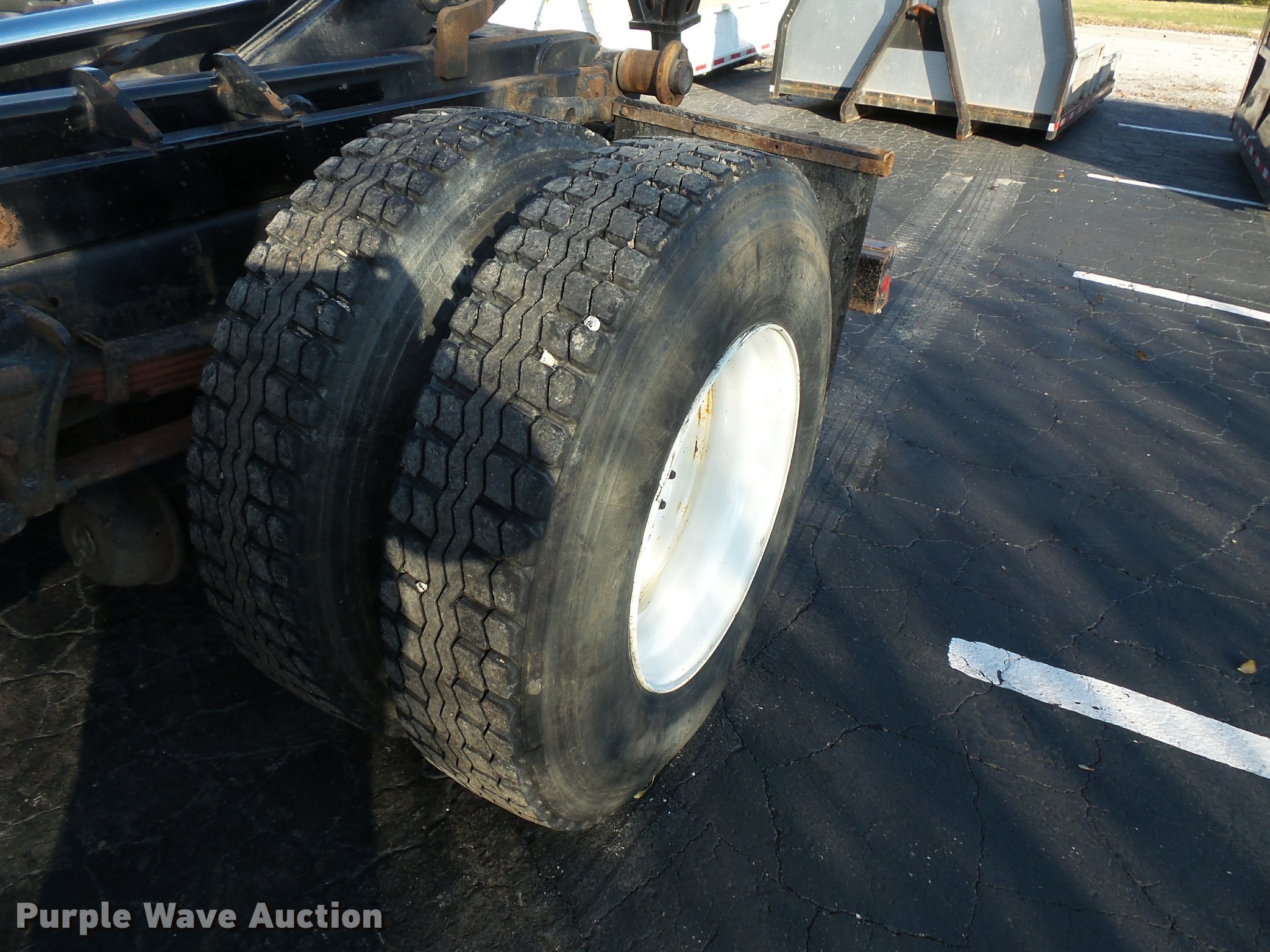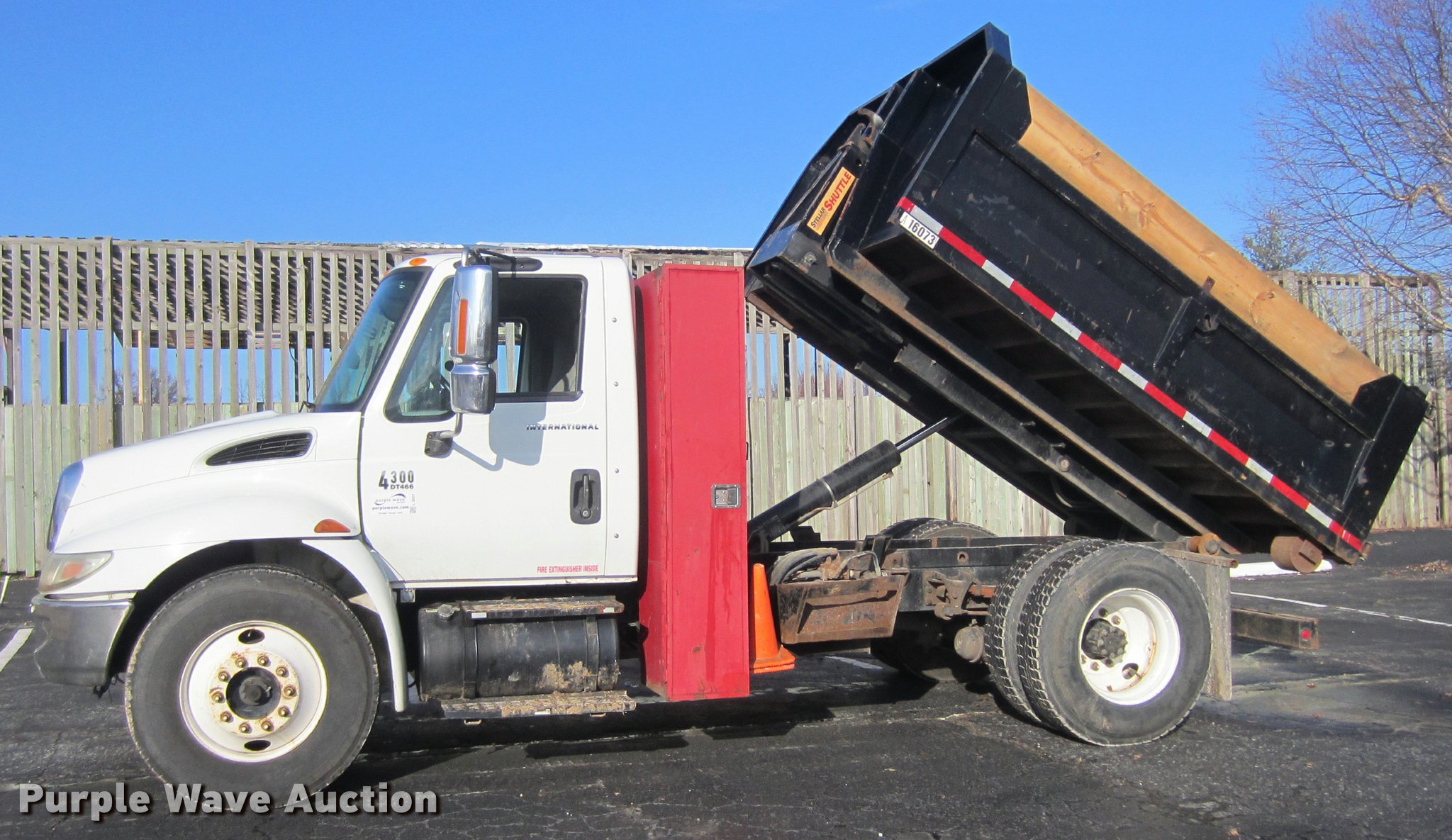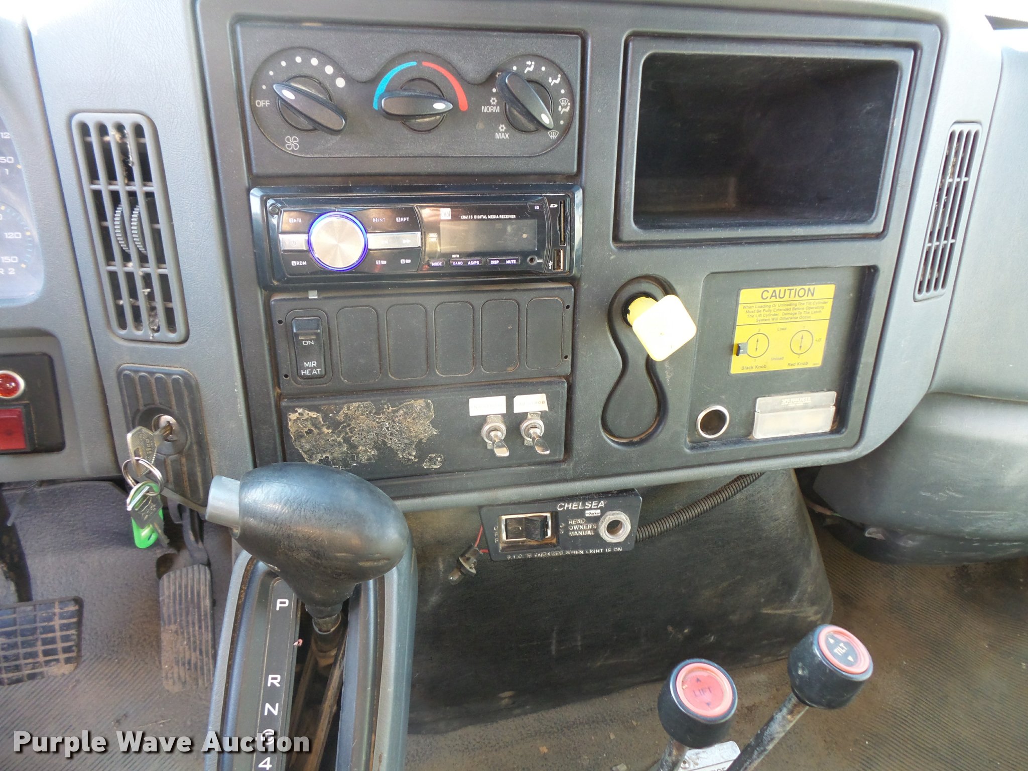 Purple Wave is selling a used Rollback or Tow Truck in Missouri. This item is a 2003 International DuraStar 4300 hooklift / roll off truck with the following: 326,150 miles on odometer, International DT466 7.6L L6 turbo diesel engine, Automatic transmission, Single axle, AC and heat, Cruise, AM/FM, Power windows, PTO, Stellar 84-10Flex flex hook bed, Serial JEM062M60, (3) additional beds, Refuse dumpster, 10.5'L x 8'W x 41"H, Flatbed, 12'4"L x 8'W, Dump bed, 11'L x 7'10"W x 33"H,, Auxiliary fuel tank with pump, Spring suspension, Air brakes, 11R22.5 tires