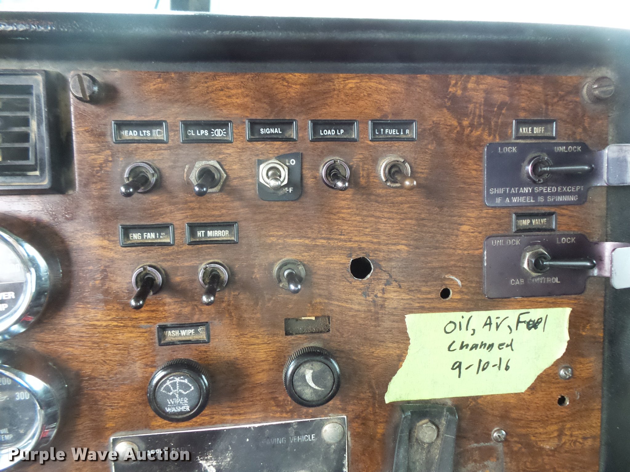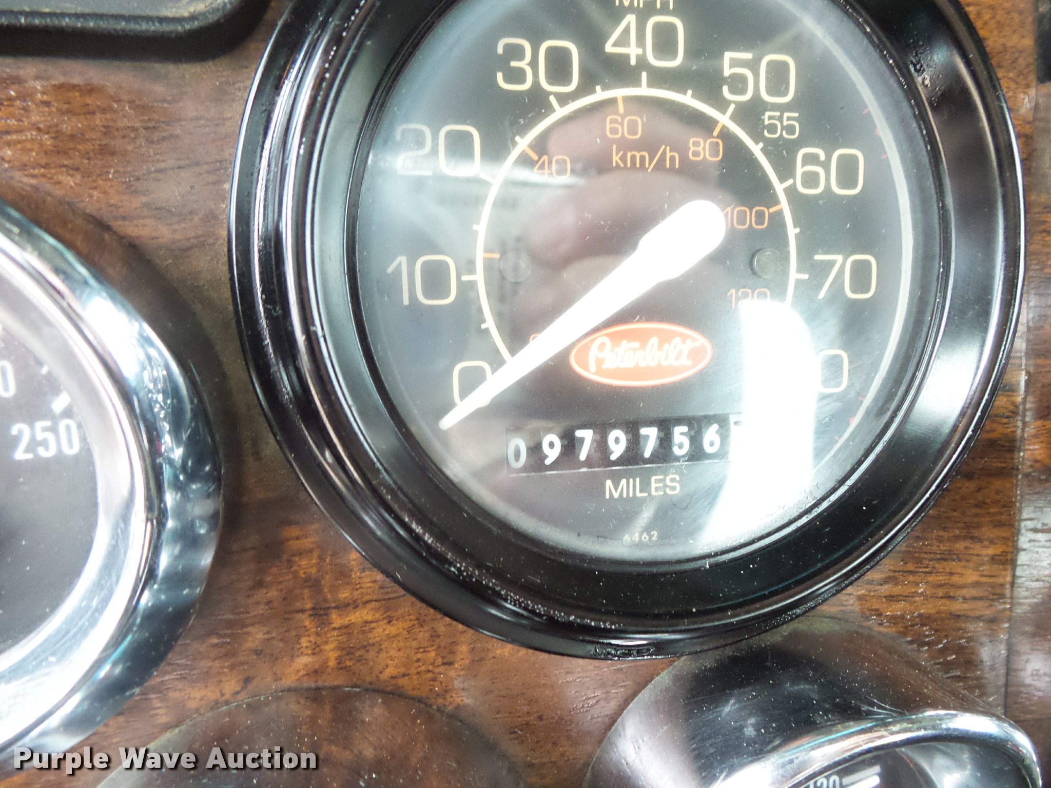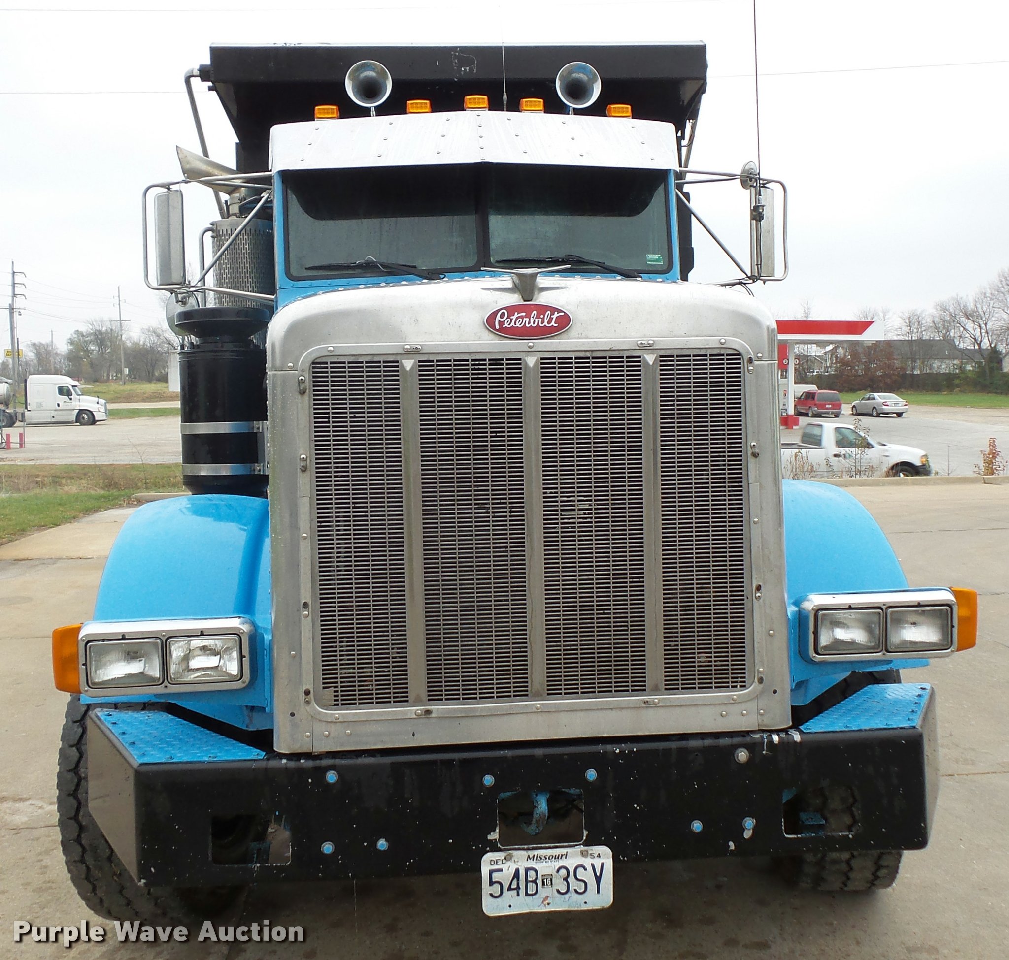 Purple Wave is selling a used Construction Dump Truck in Missouri. This item is a 1991 Peterbilt 378 dump truck with the following: 979,756 miles on odometer, Caterpillar 3406B 14.6L L6 diesel engine, 13 speed manual transmission, Tandem axle, AC and heat, AM/FM, Air suspension seat, PTO, 16'L steel dump bed, 48" side height, Air operated end gate, Rollrite electric rollover tarp, Single ram hoist, Air suspension, Air brakes, Engine brake, 385/65R22.5 front tires, 11R22.5 rear tires