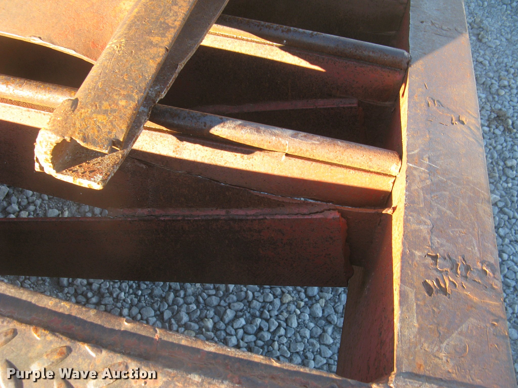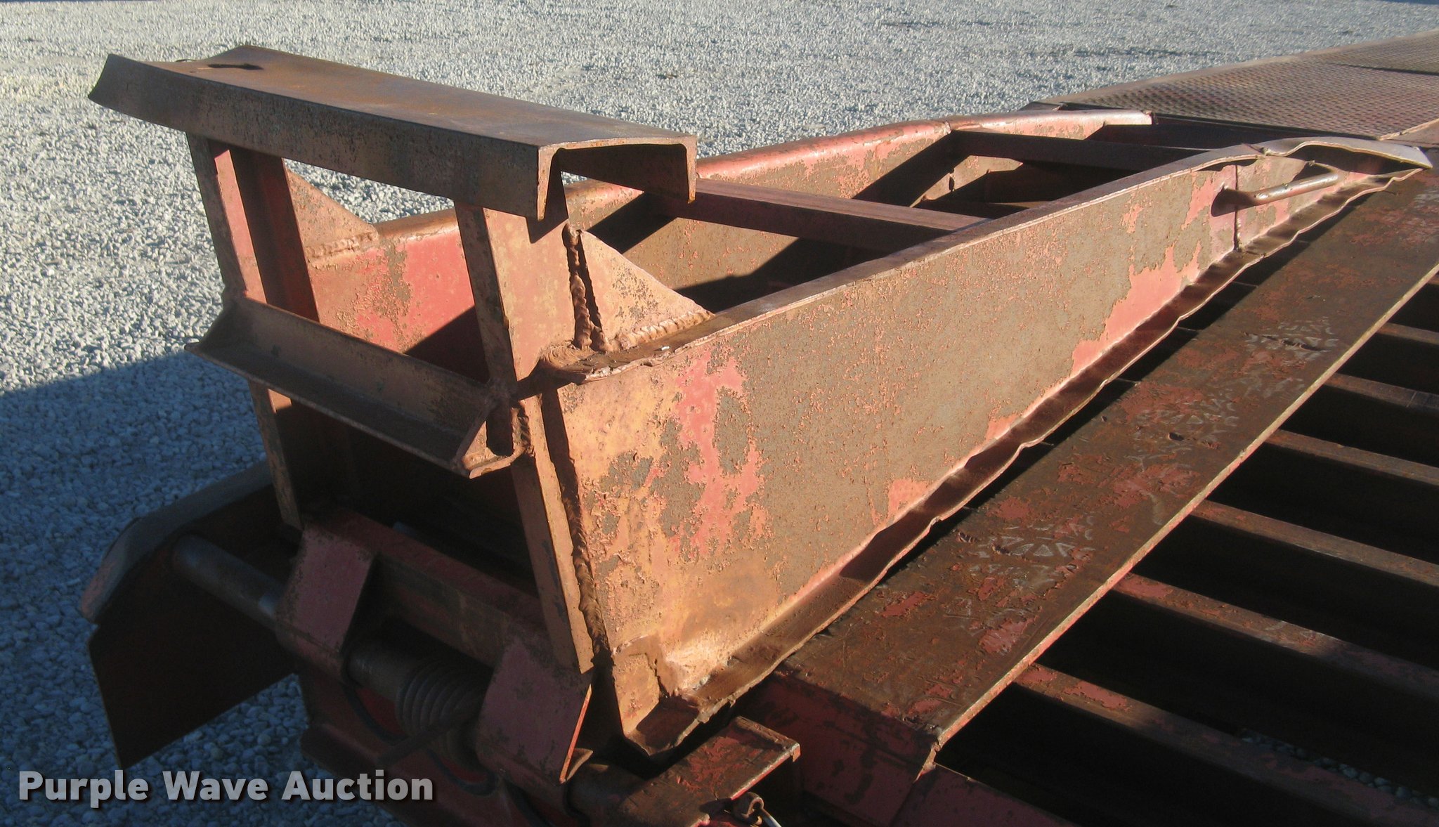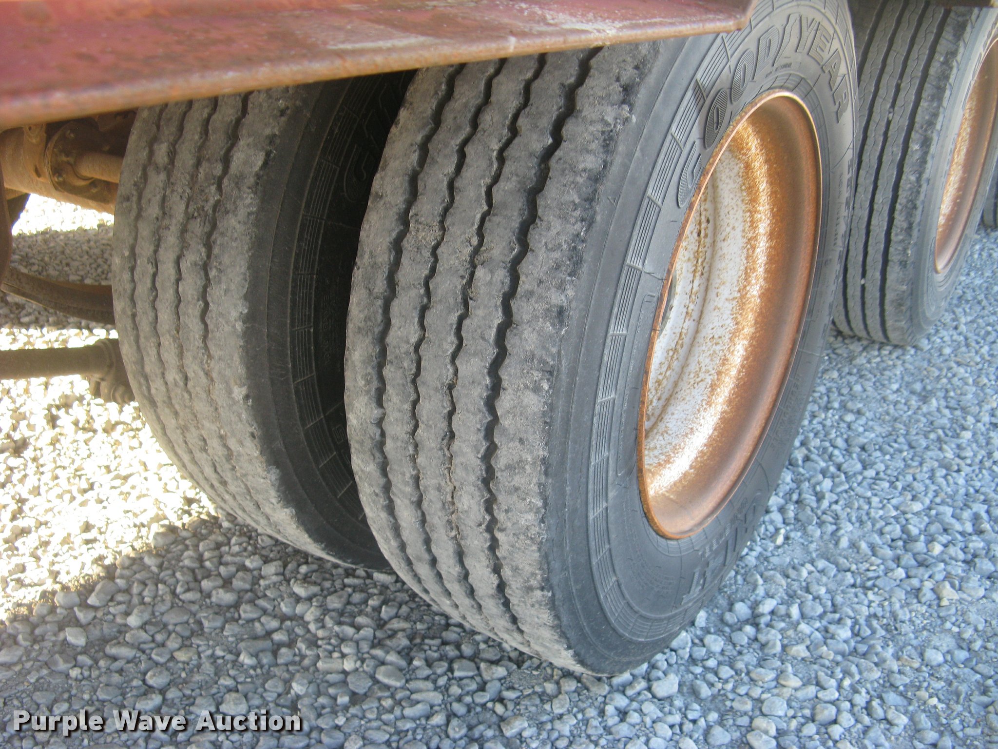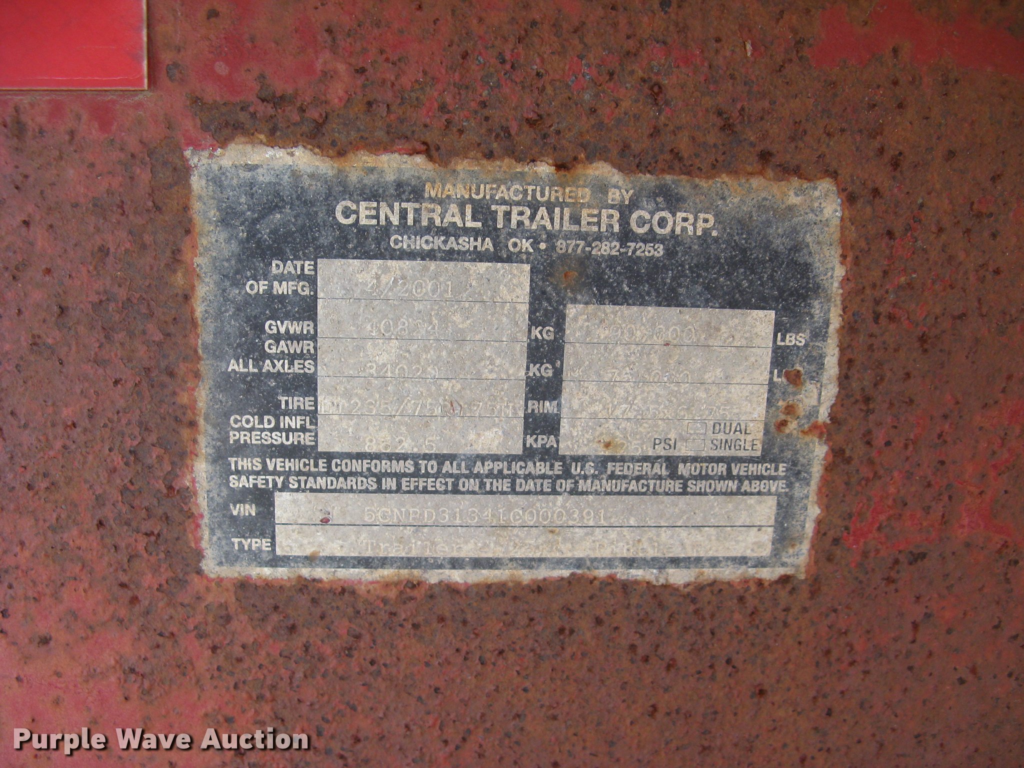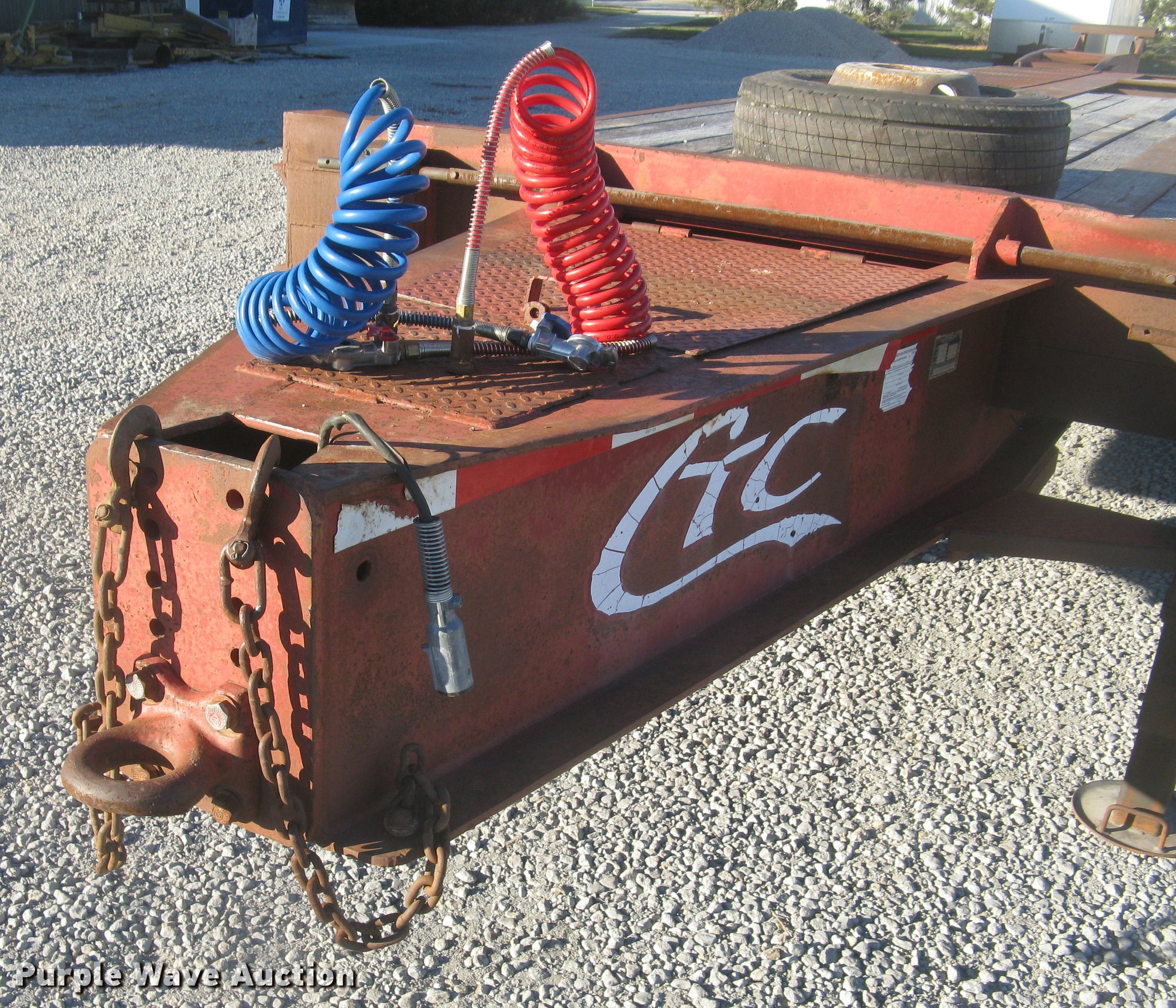 Purple Wave is selling a used Equip. Trailer in Kansas. This item is a 2001 Central equipment trailer with the following: 25'L x 102"W wood deck, 80"L dovetail, 72"L x 21"W ramps, D-ring tie downs, Tongue mounted storage, Dual leg landing gear, Adjustable height pintle hitch, Triple axle, Oil bath hubs, Spring suspension, Air brakes, 235/75R17.5 tires, GVWR 90,000 lbs