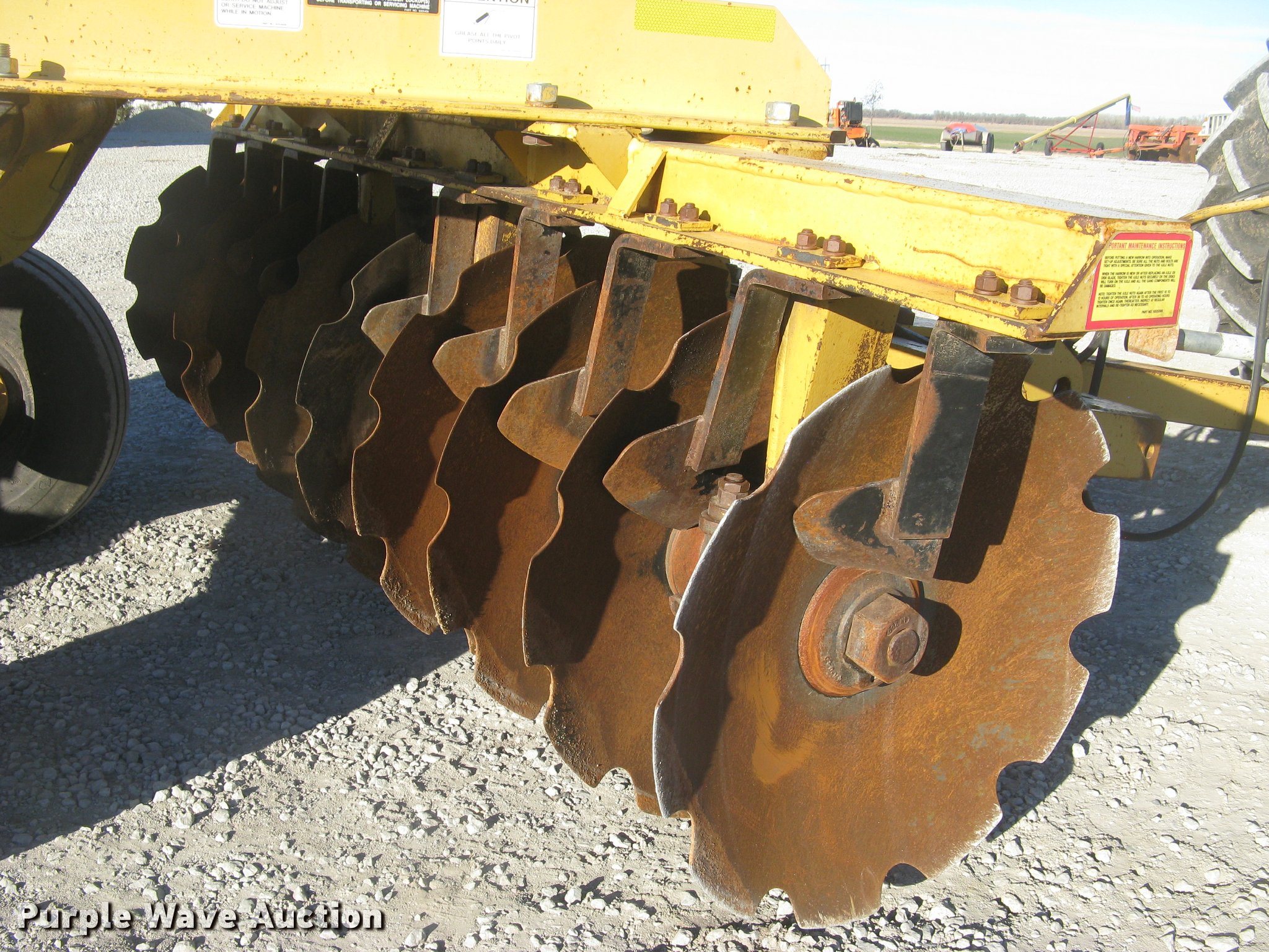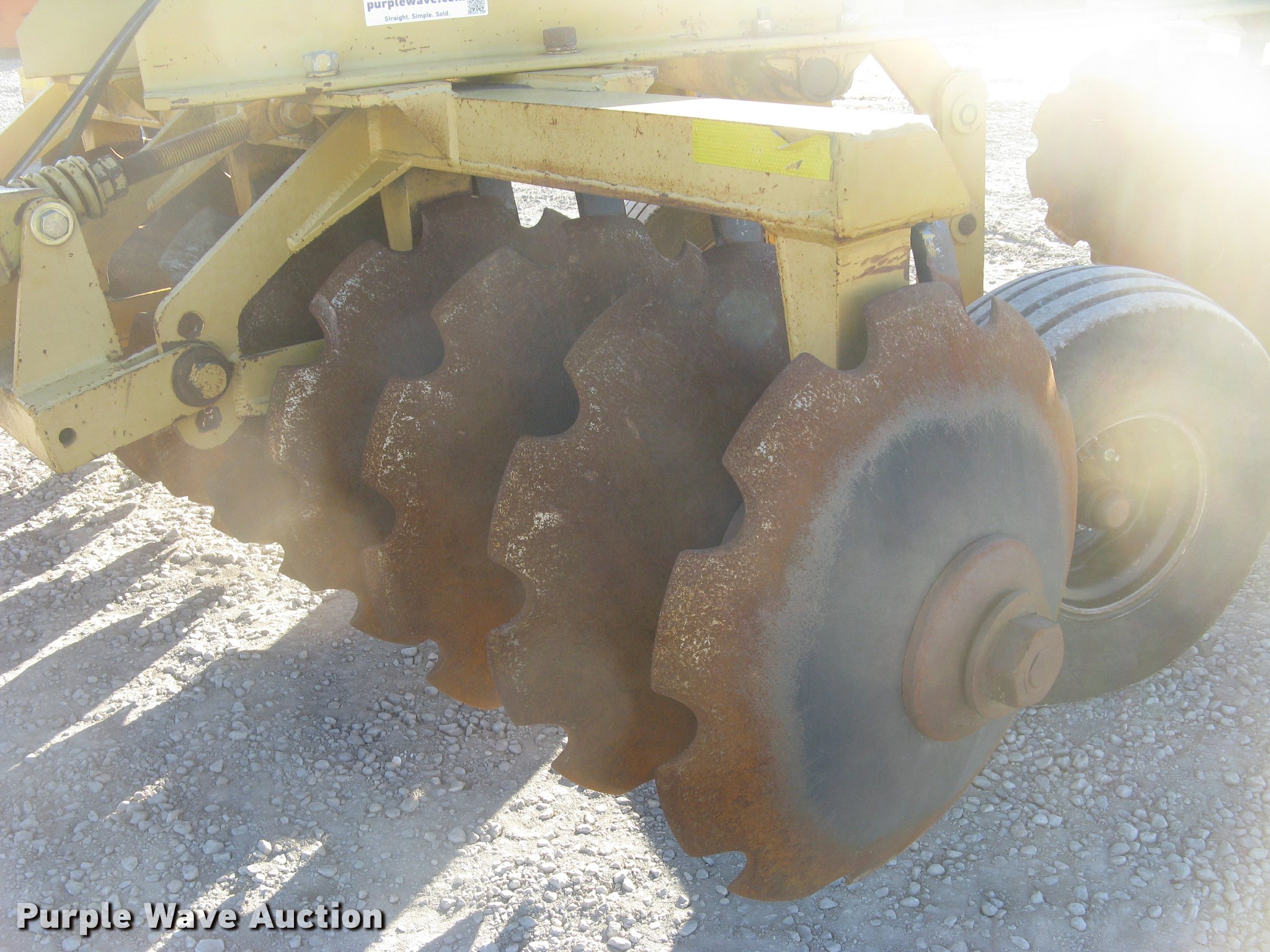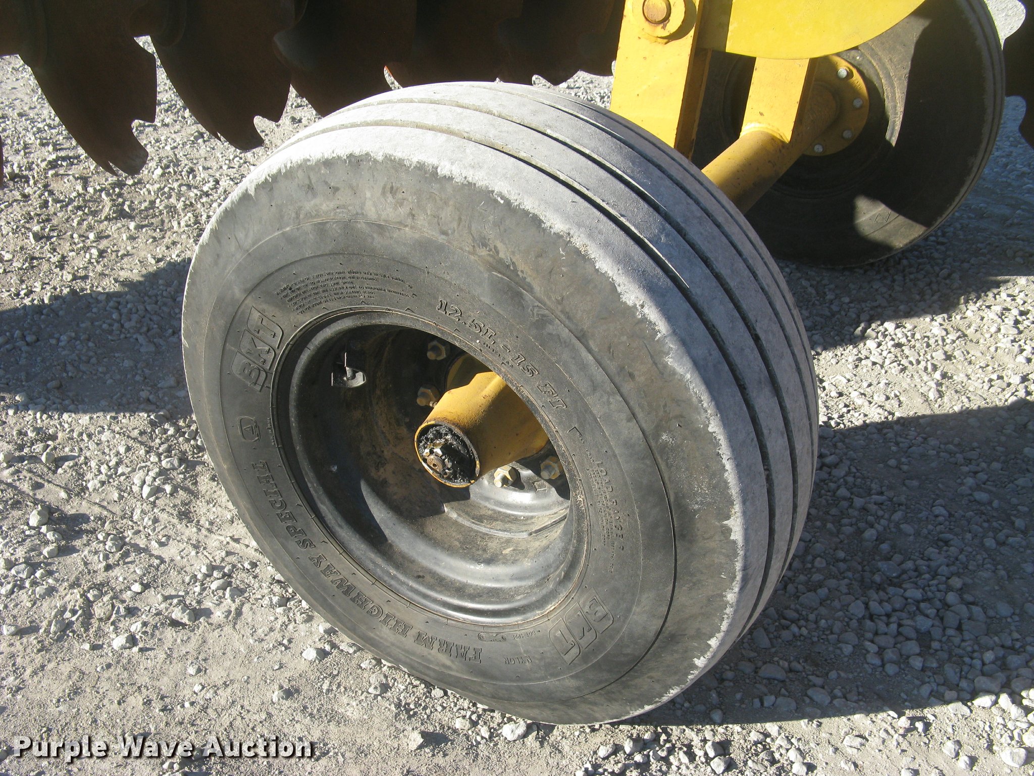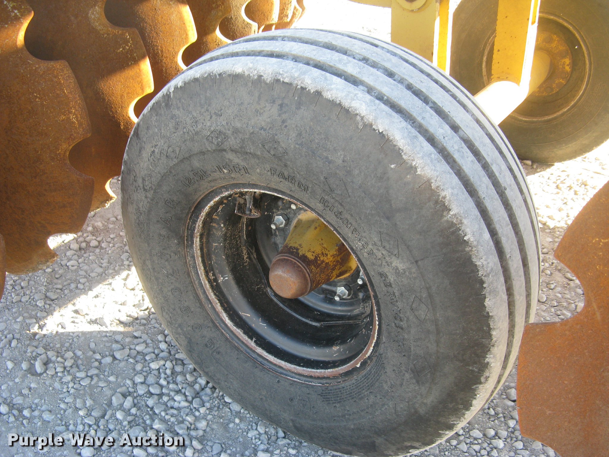 Purple Wave is selling a used Disk in Kansas. This item is a Rome TAW-20S double off-set disk with the following: Approximately 9' working width, Hydraulic lift, 31.5" diameter blades, Disk scrapers, Adjustable angle tongue, Pin hitch, 12.5L-15FI tires, Serial 10TAW-3503S