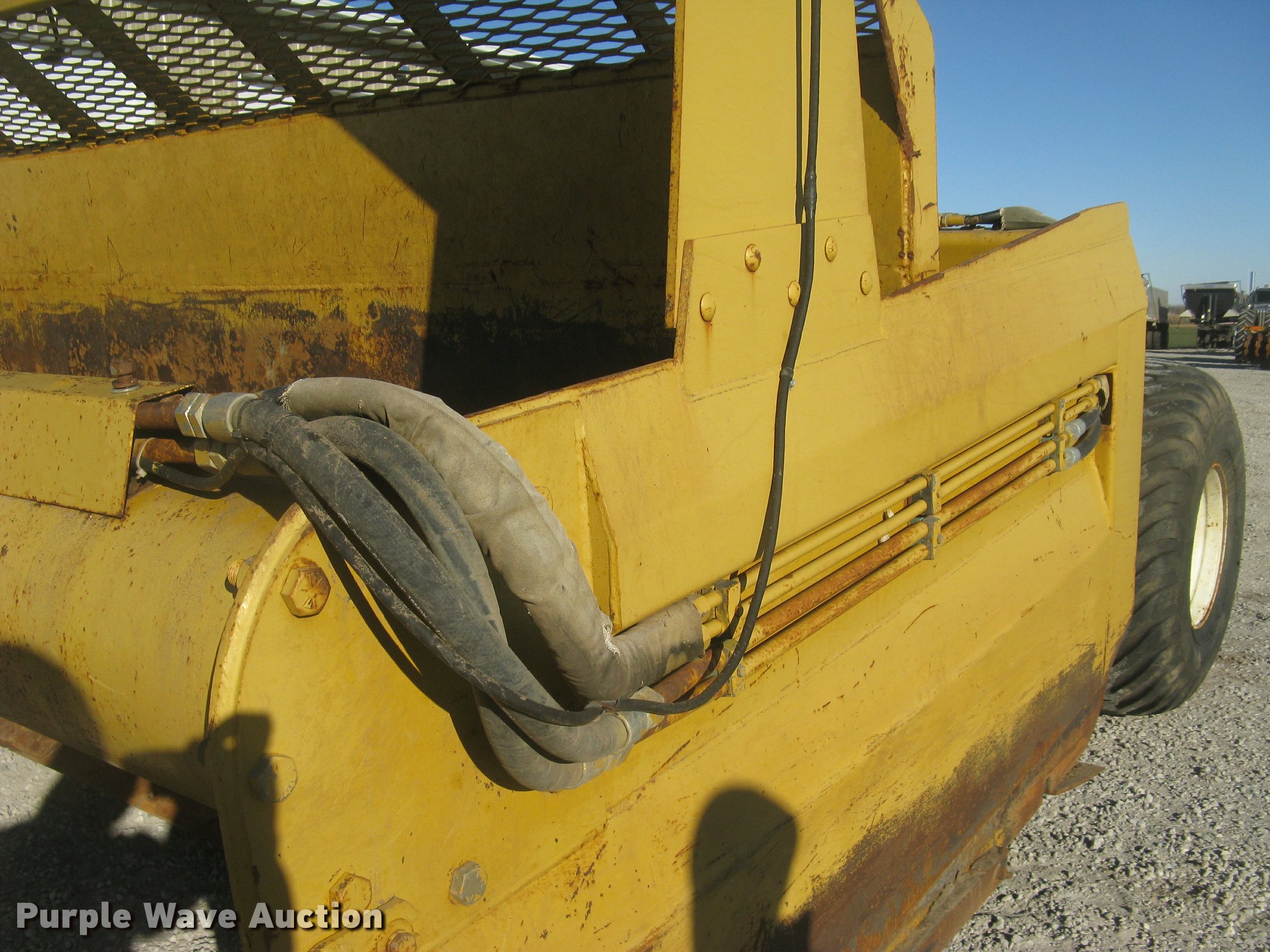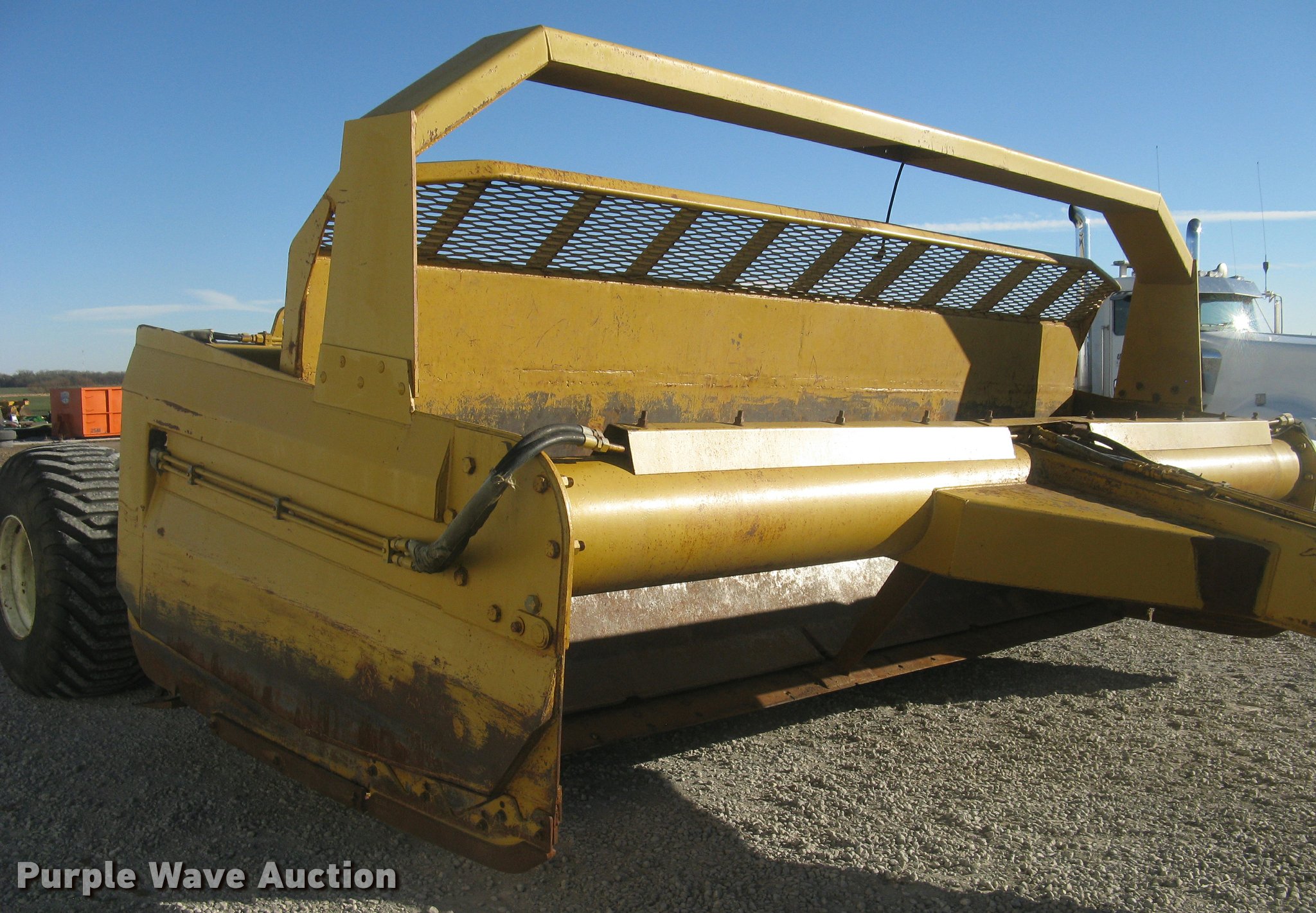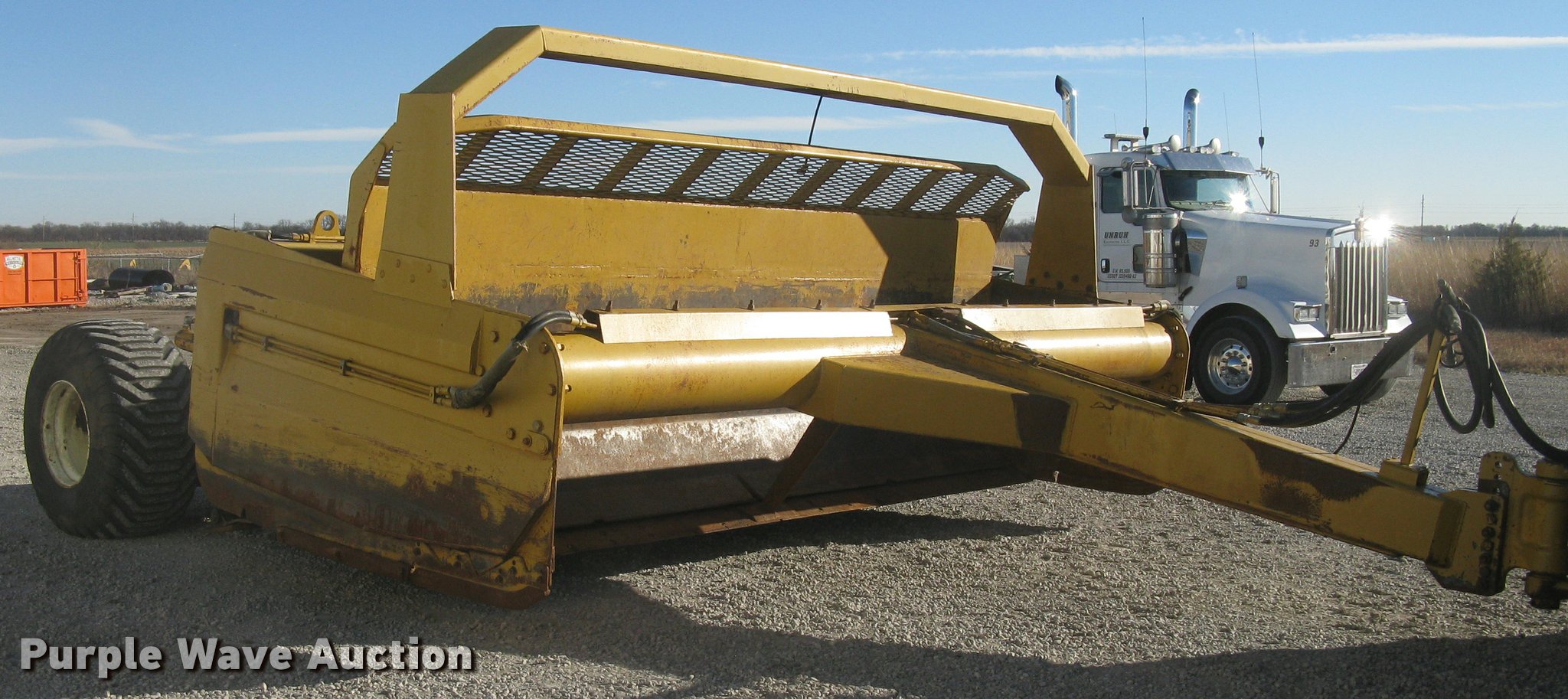 Purple Wave is selling a used Pull Type Scraper in Kansas. This item is a IMC 16E-288 scraper with the following: 16' working width, Bolt-on cutting edge, Hydraulic lift and eject, (4) lift assist wheels, 600/55-22.5 tires, Weld repairs and retro fitting