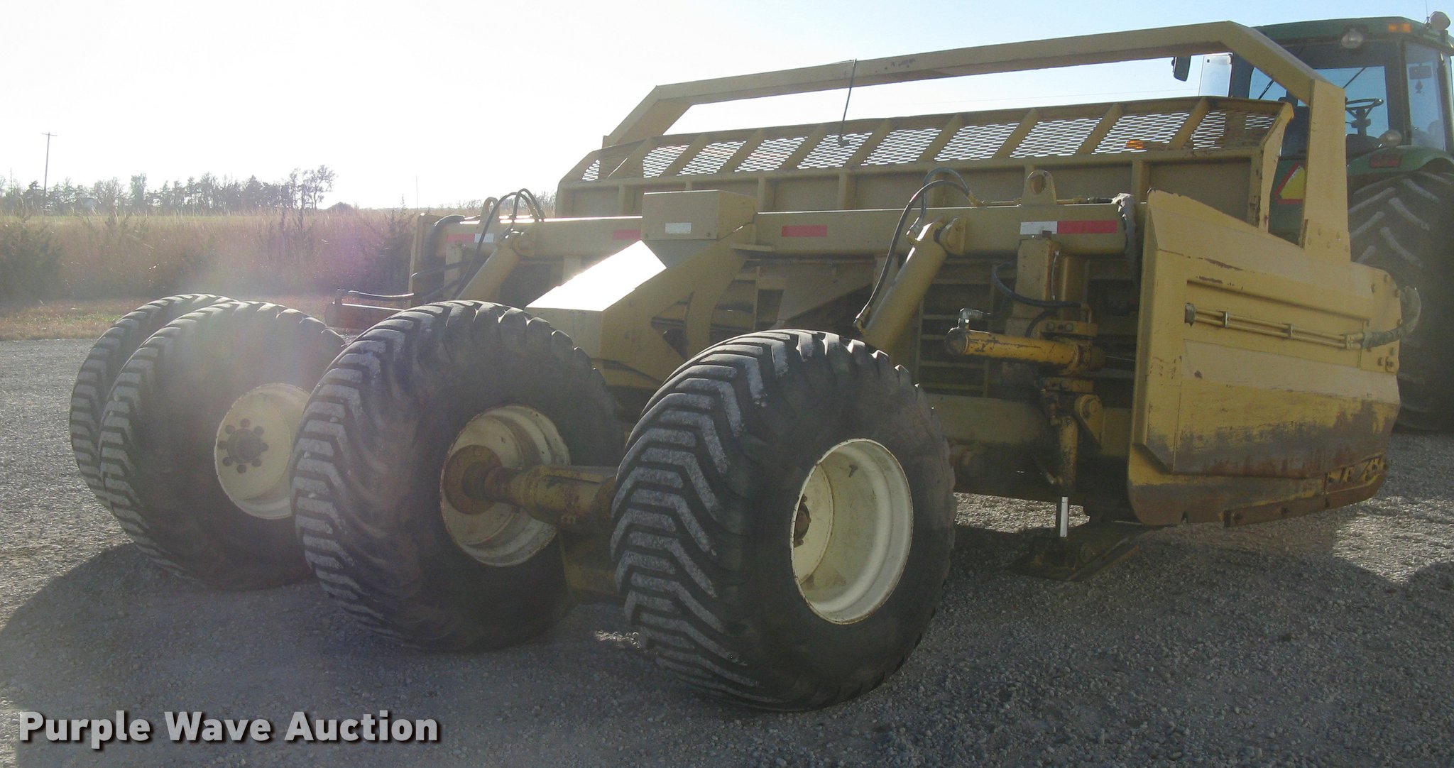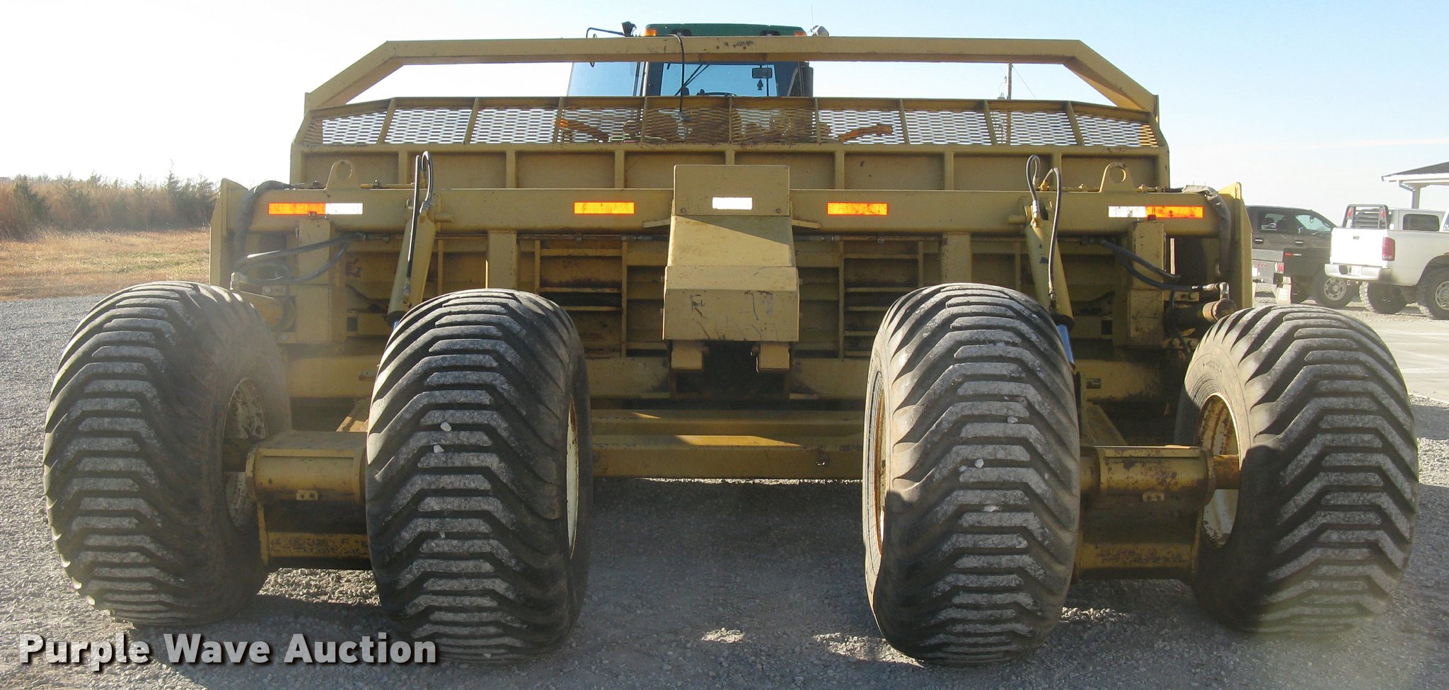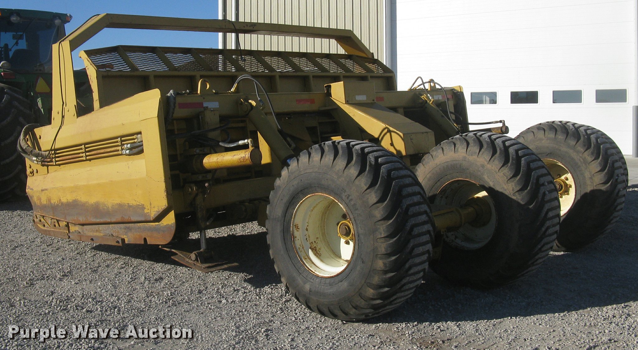 Purple Wave is selling a used Pull Type Scraper in Kansas. This item is a IMC 16E-288 scraper with the following: 16' working width, Bolt-on cutting edge, Hydraulic lift and eject, (4) lift assist wheels, 600/55-22.5 tires, Weld repairs and retro fitting