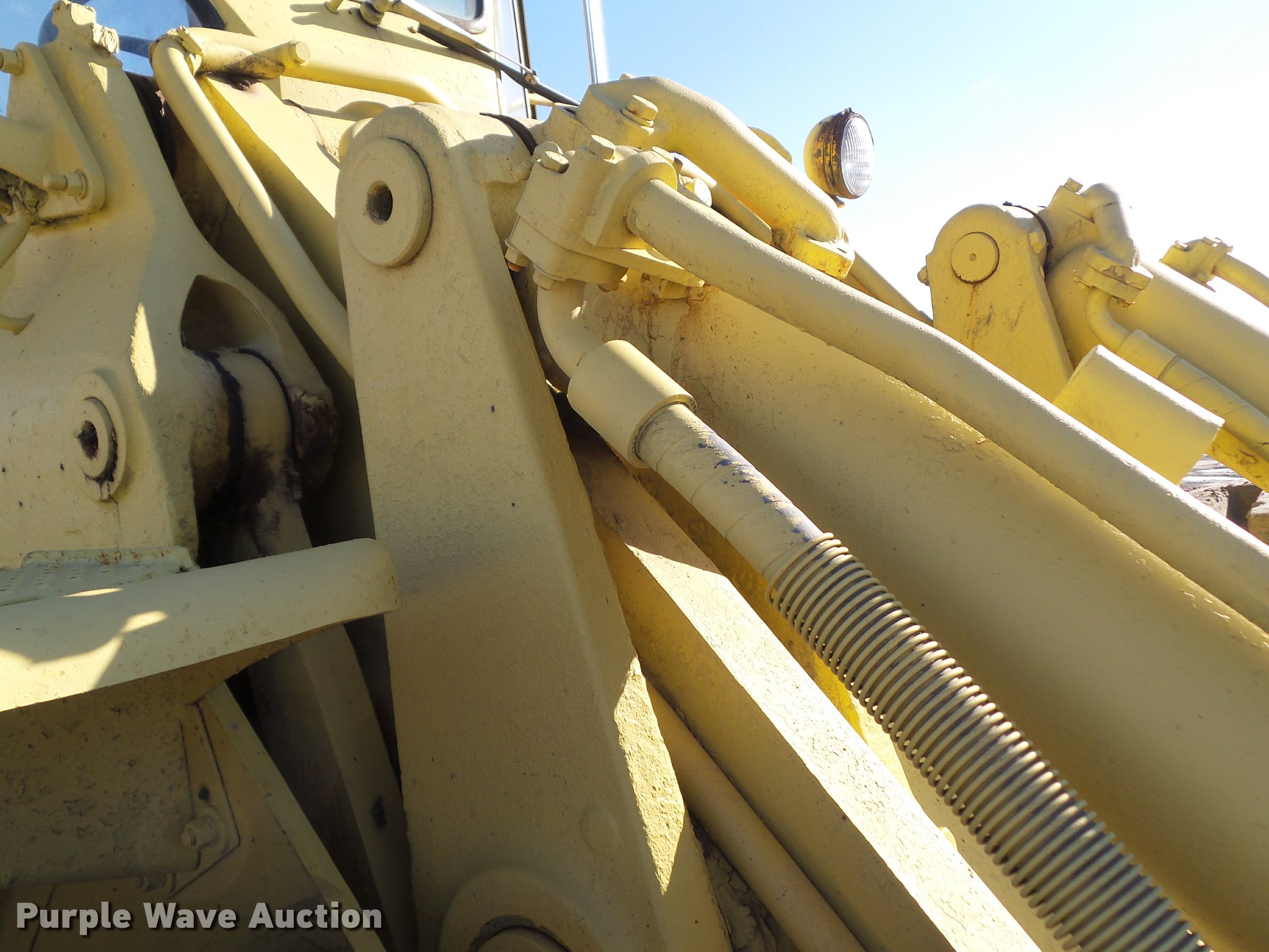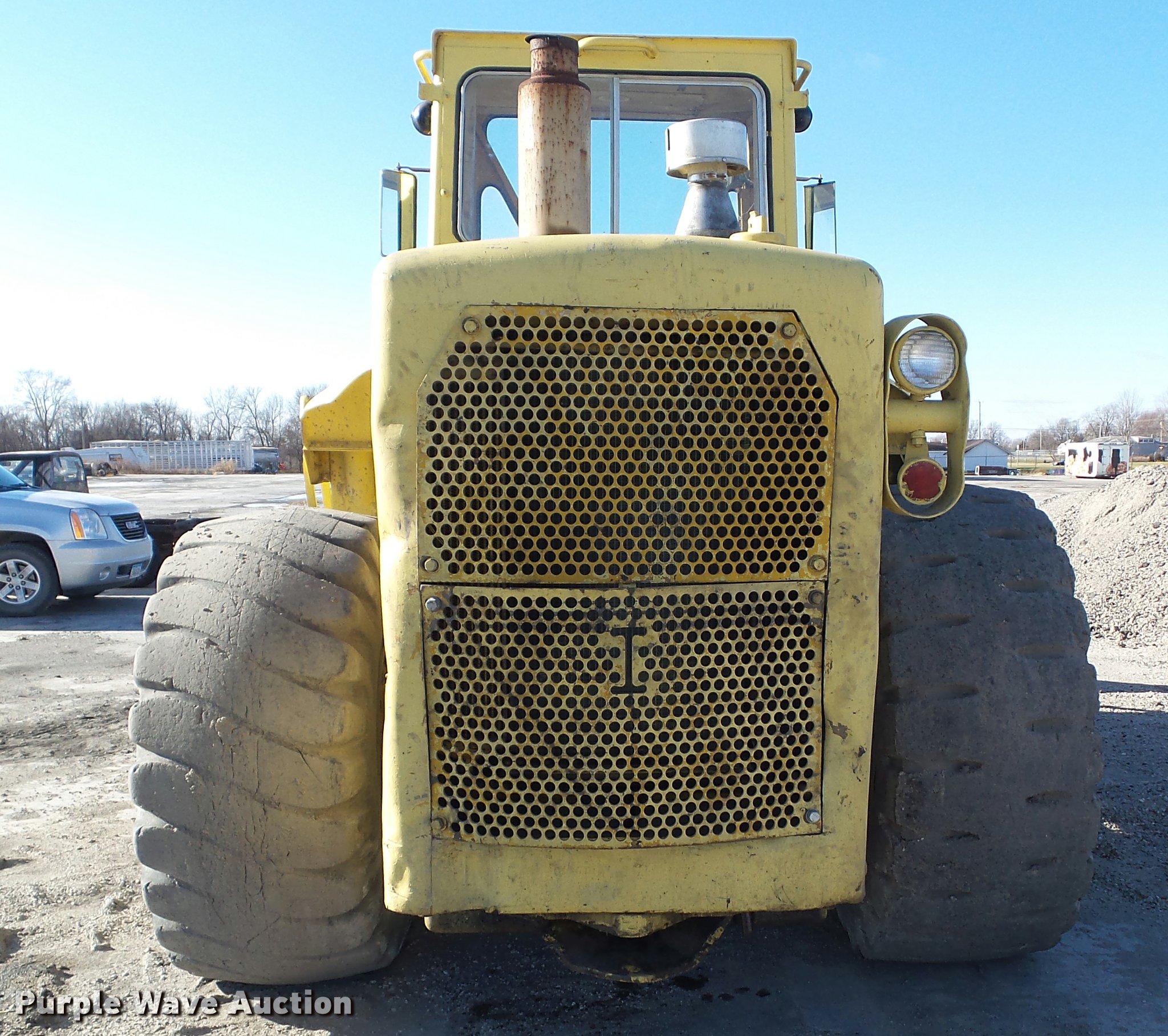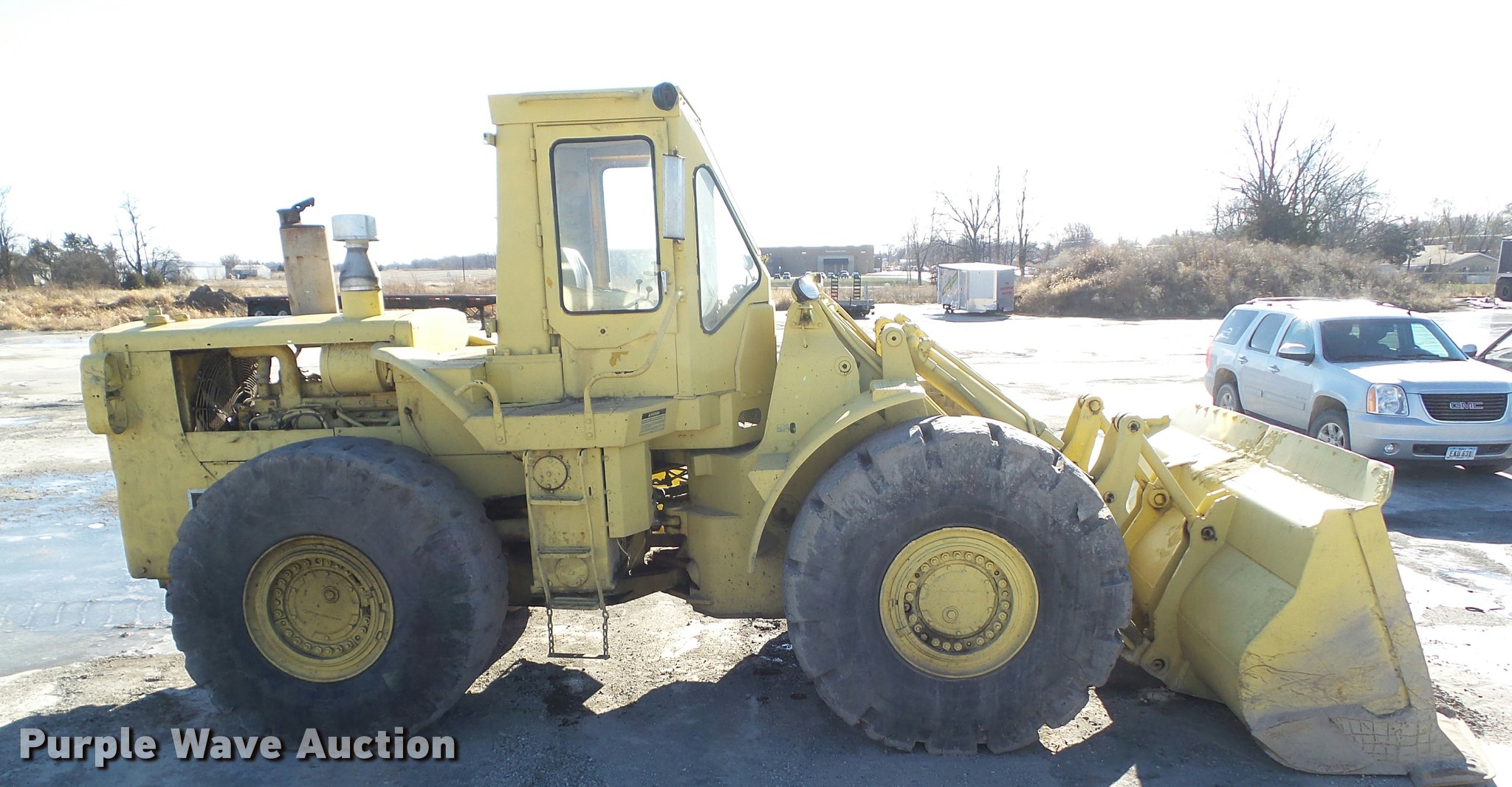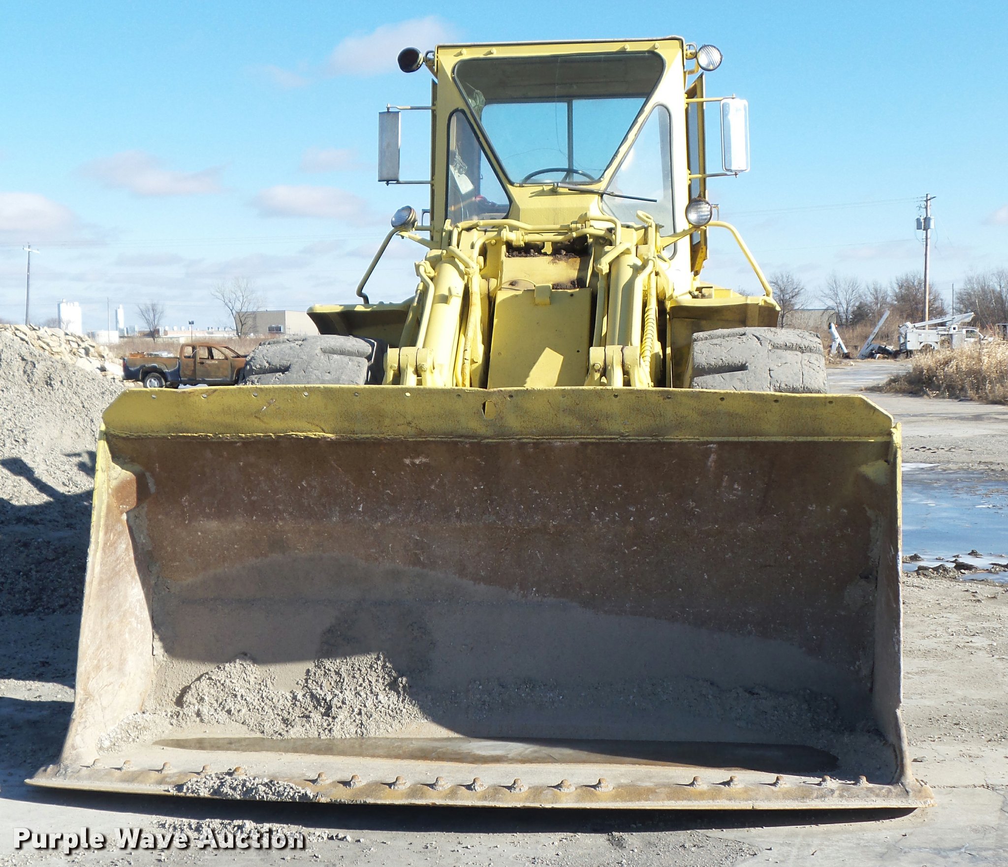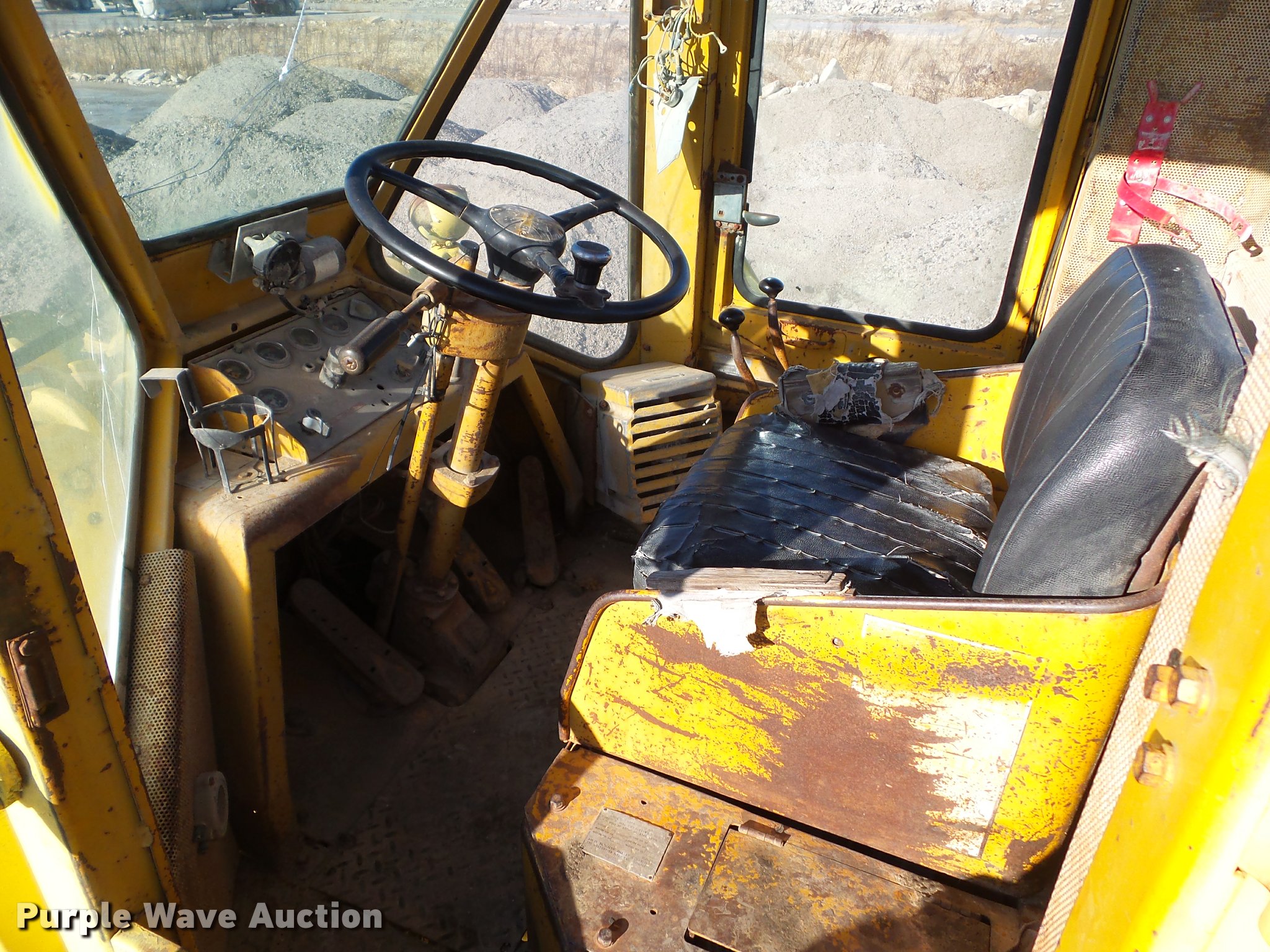 Purple Wave is selling a used Wheel Loader in Iowa. This item is a 1976 Caterpillar 980B wheel loader with the following: Caterpillar D30288 six cylinder diesel engine, Serial 7N3386, Two speed hydrostatic transmission, EROPS, Two-lever bucket controls, Front and rear work lights, 125"W general purpose bucket, Bolt-on cutting edge, 26.5-25 tires, Glass cracked