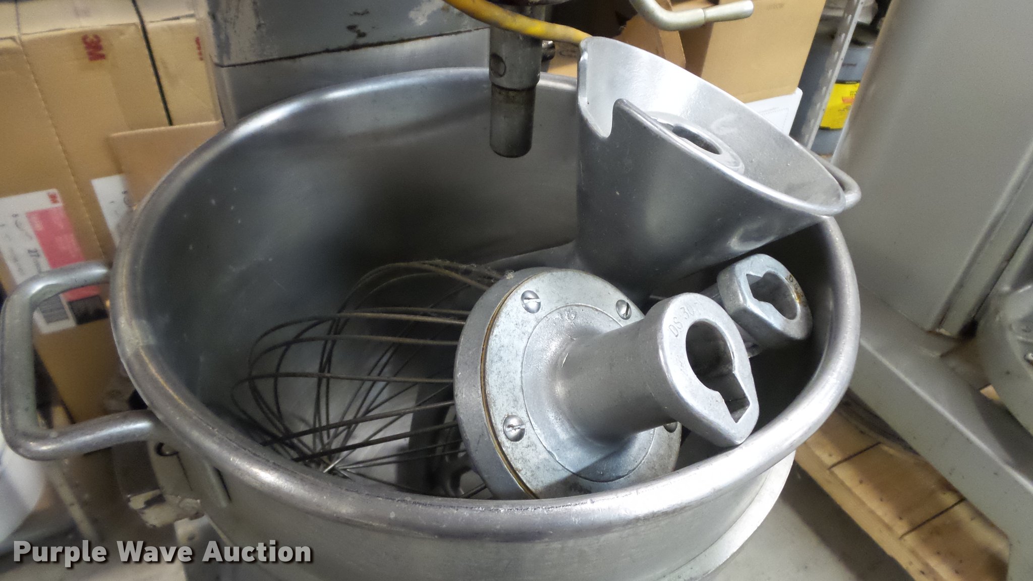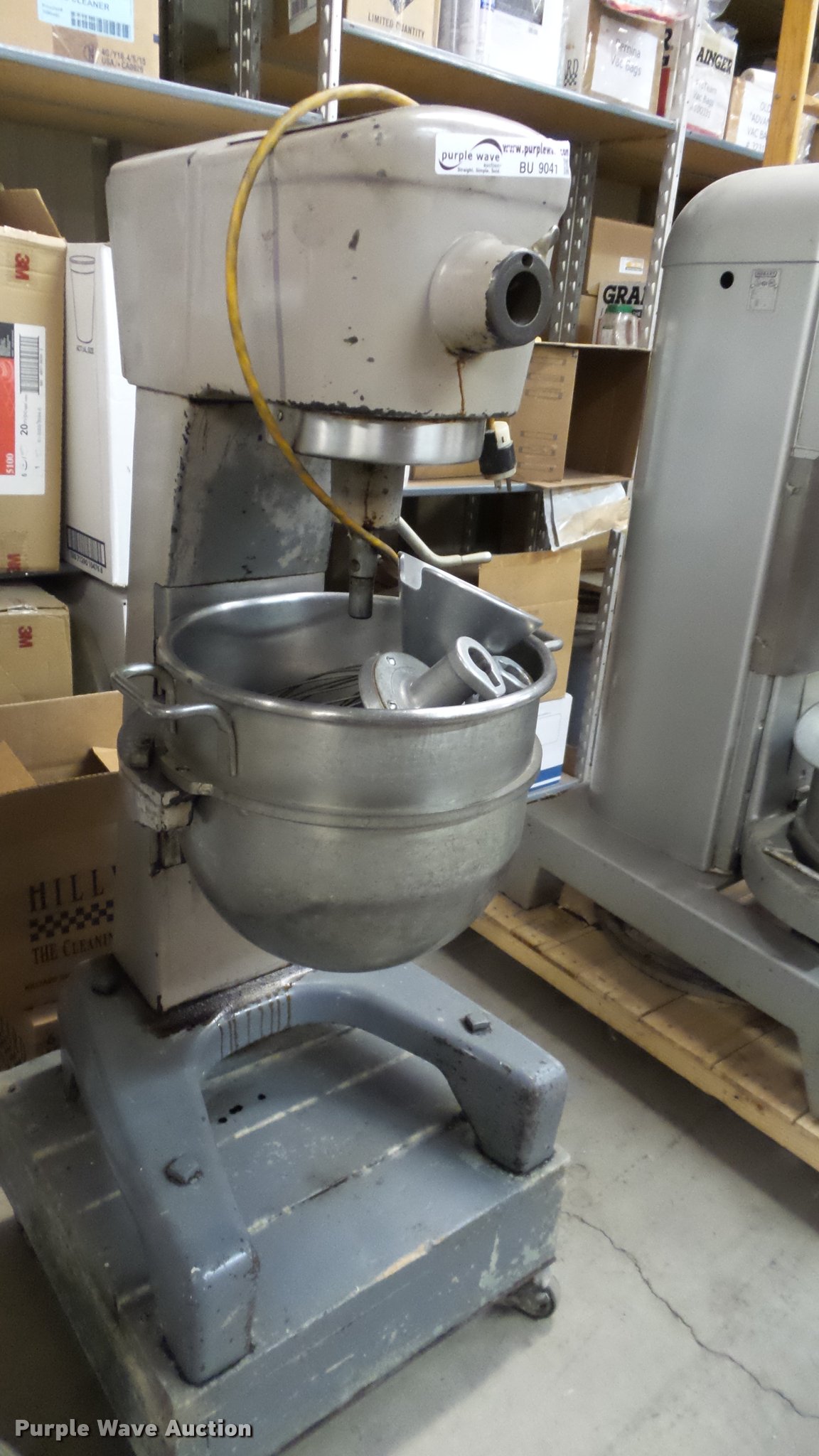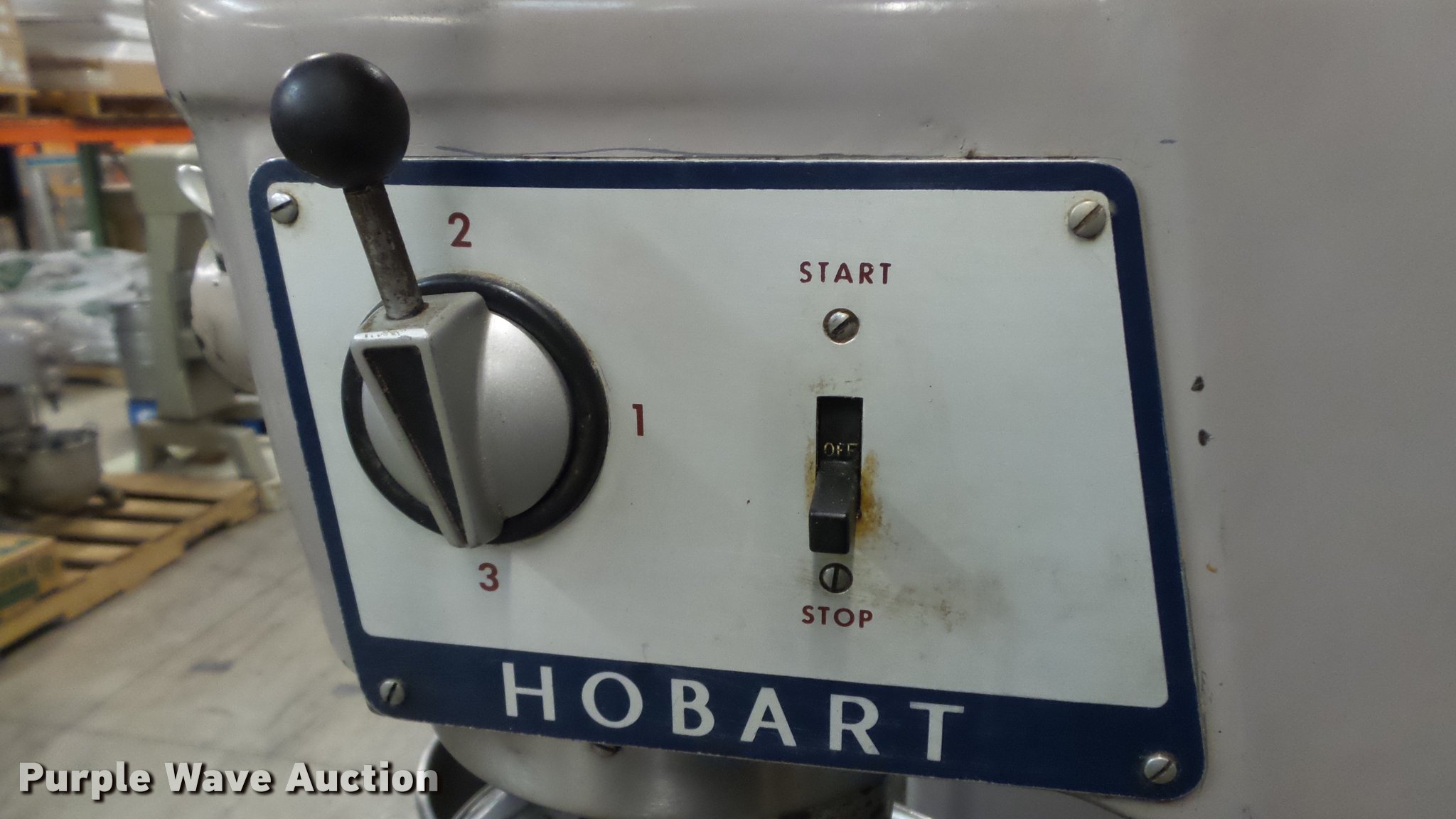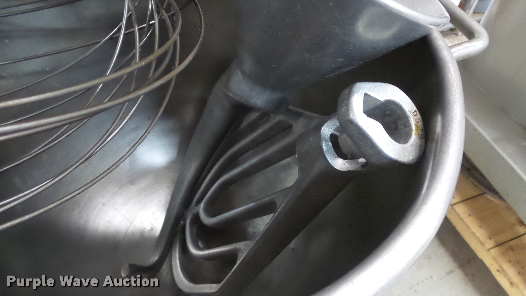 Purple Wave is selling a used Restaurant Equip. in Kansas. This item is a Hobart D300 mixer with the following: 1/2 HP motor, Single phase, Bowl, Whip, Paddle, Dough paddle, Serial 1410636