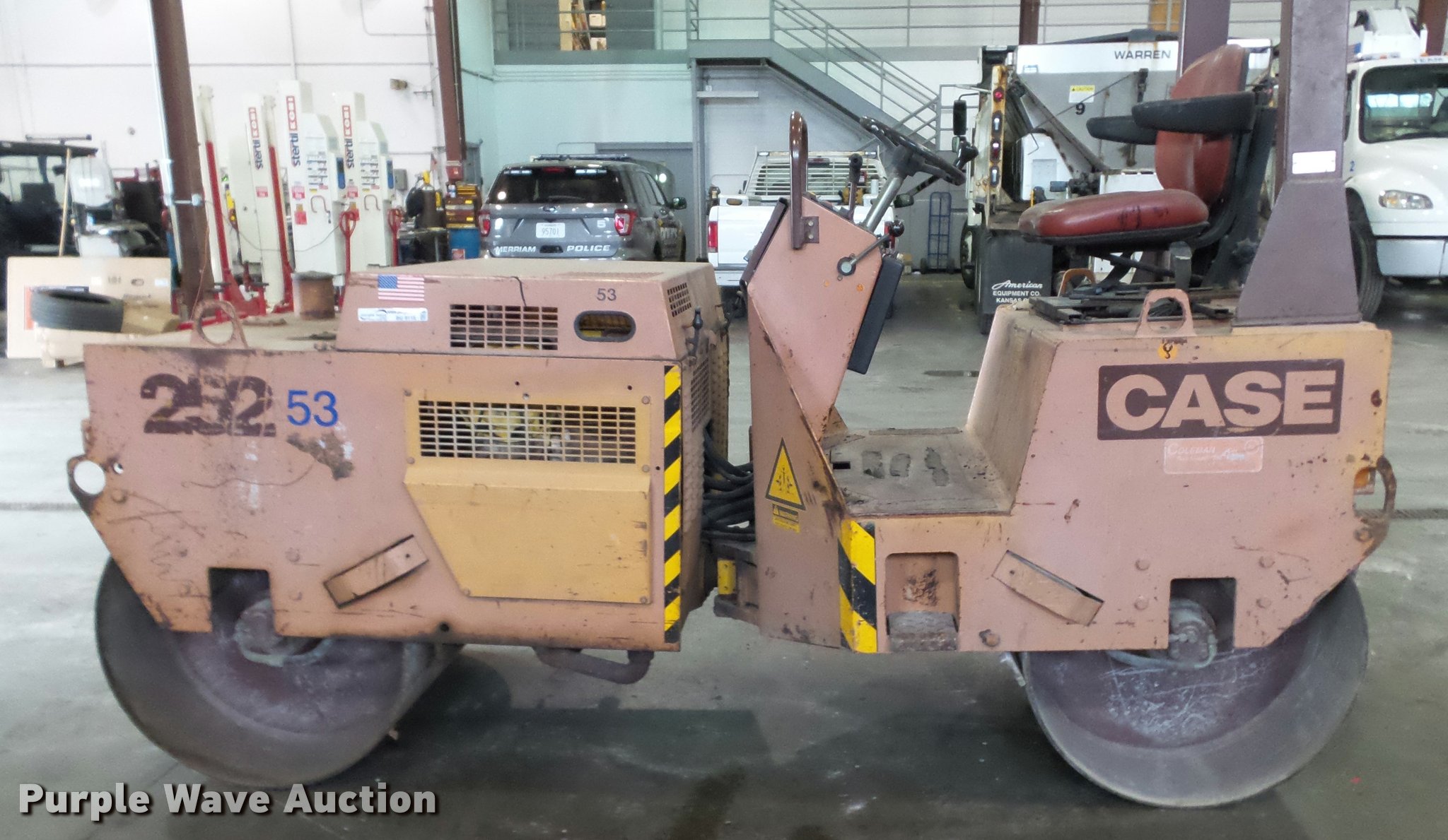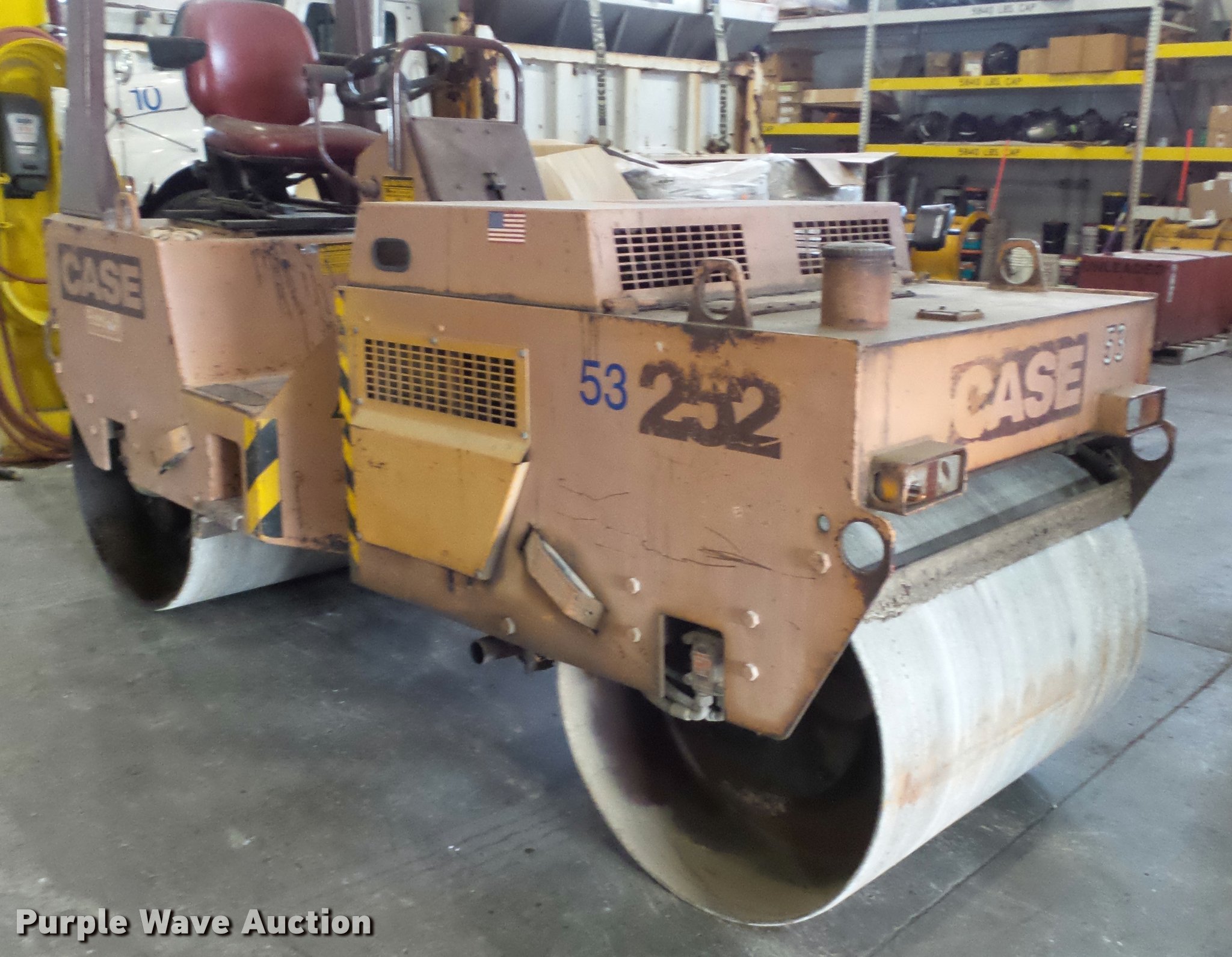 Purple Wave is selling a used Double Drum Roller Compactor in Kansas. This item is a Case 252 double drum roller with the following: 71 hours on meter, Hatz two cylinder diesel engine, 39"W x 29" diameter smooth drums, Front drum scrapers, Independent drum controls, Water pump for spray bars, Non-operational, Scrapers are worn, Weak battery, Unit# 53
