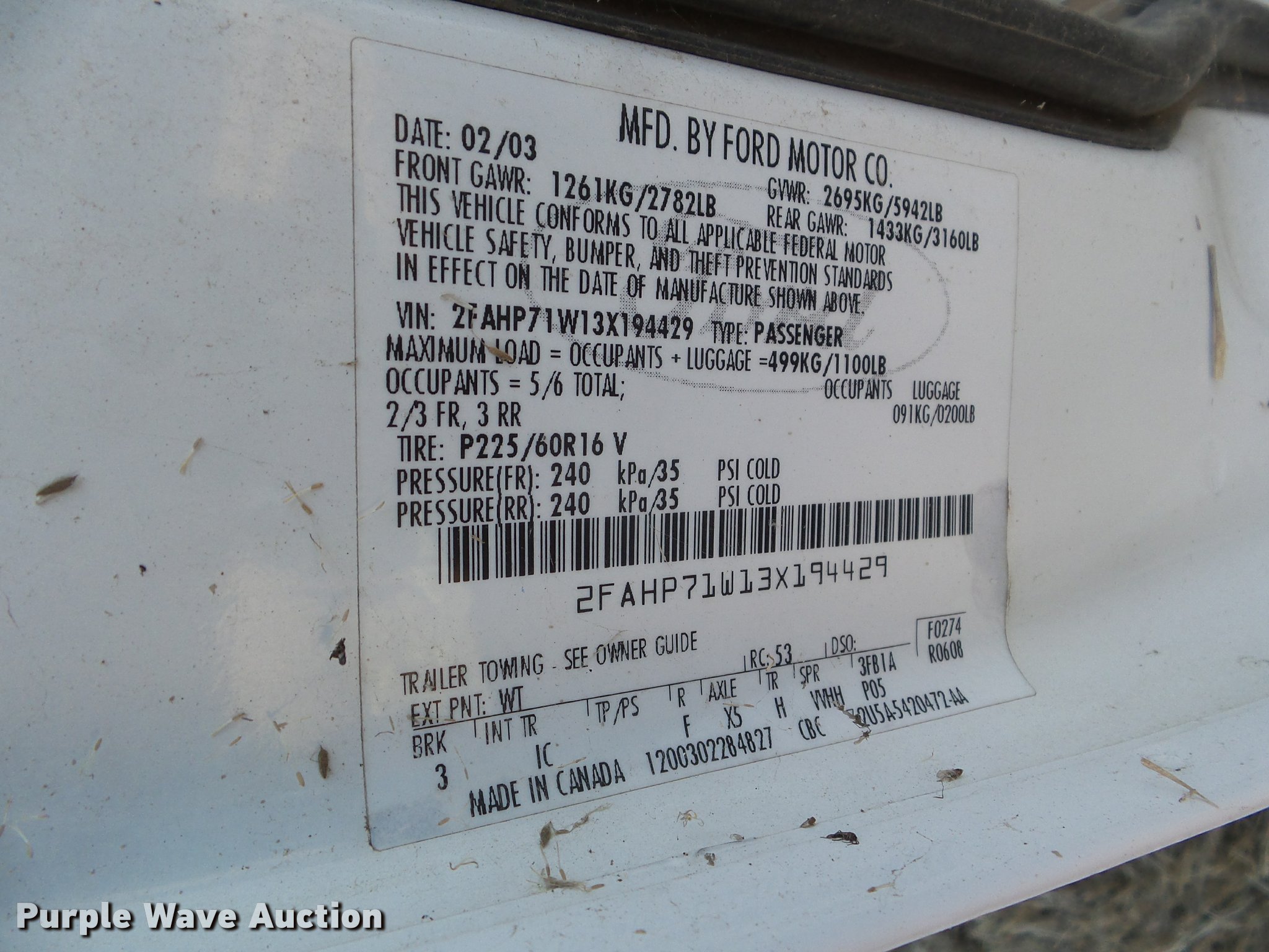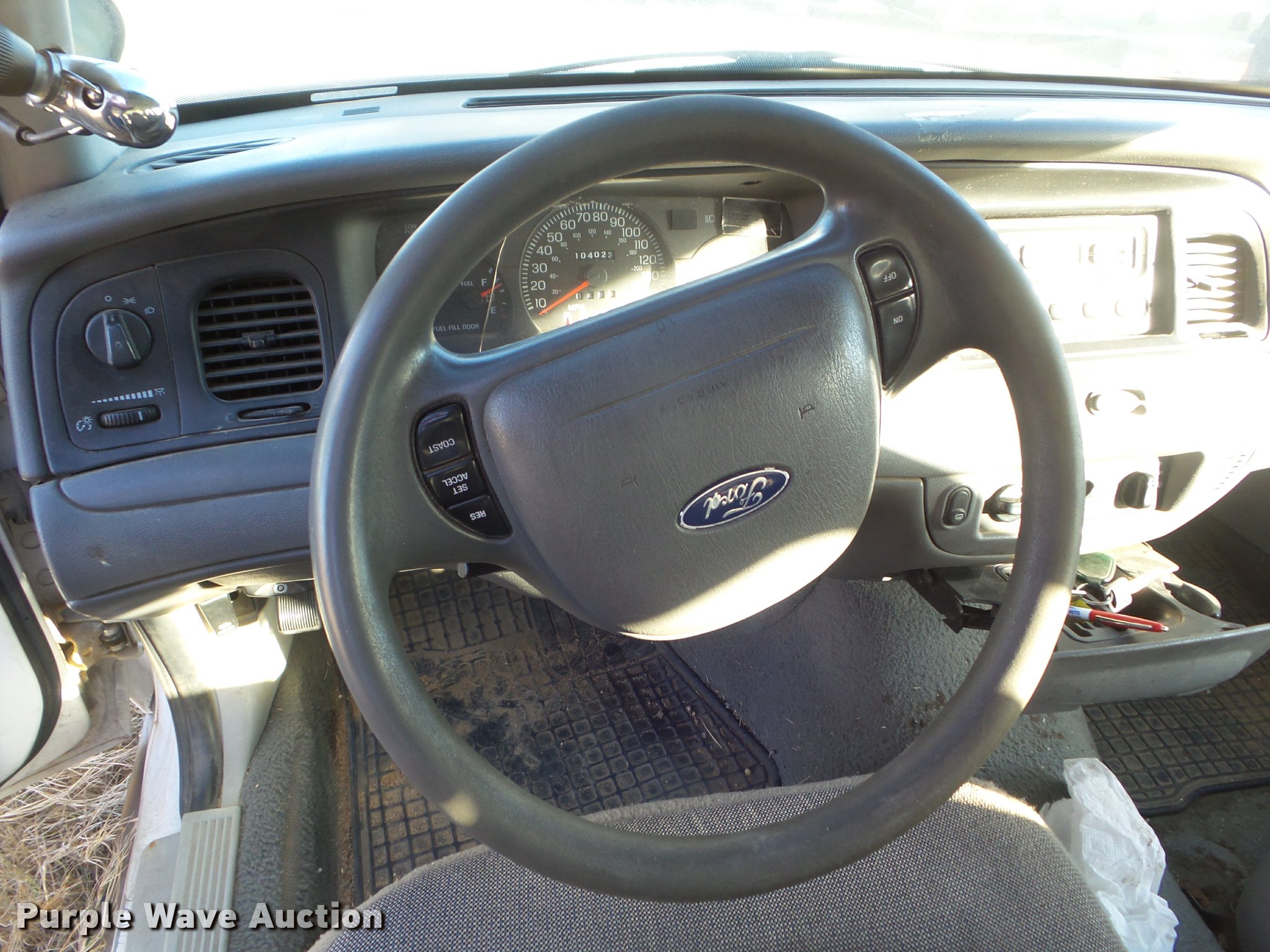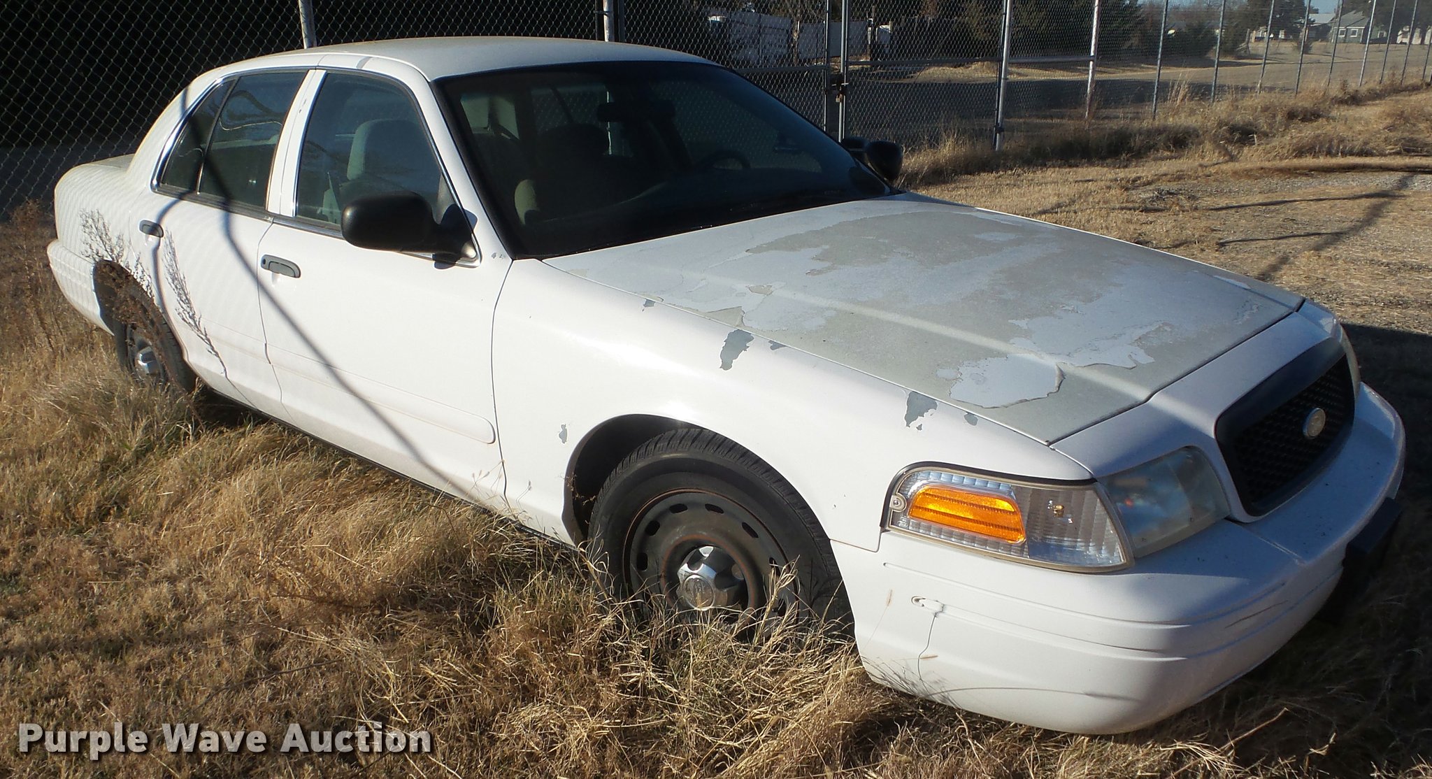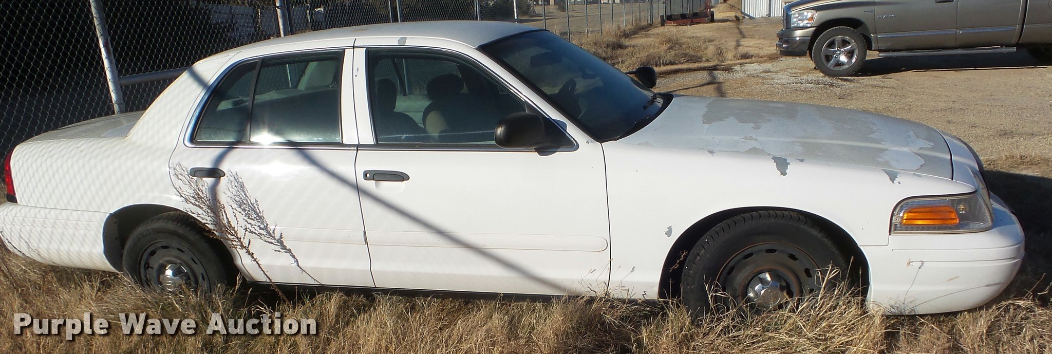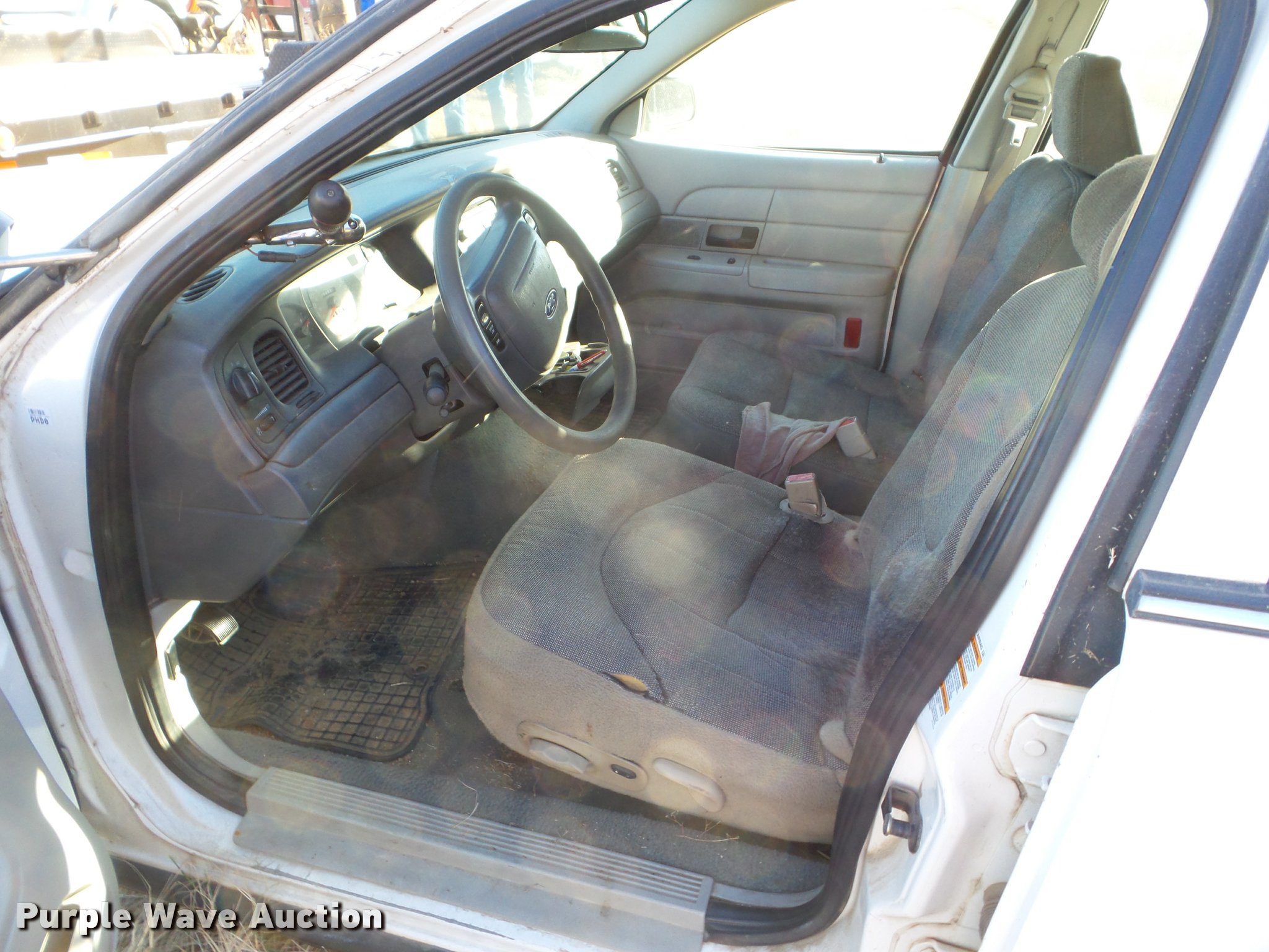 Purple Wave is selling a used Passenger Vehicle in Kansas. This item is a 2003 Ford Crown Victoria Police Interceptor with the following: 104,023 miles on odometer, 4.6L V8 SOHC 16V gas engine, Automatic transmission, AC and heat, Tilt, Cruise, AM/FM, Power windows, locks, mirrors, and seat, Cloth interior, 225/60R16 tires, Possible steering issues, Dead battery, Paint peeling, Coil needs to be replaced