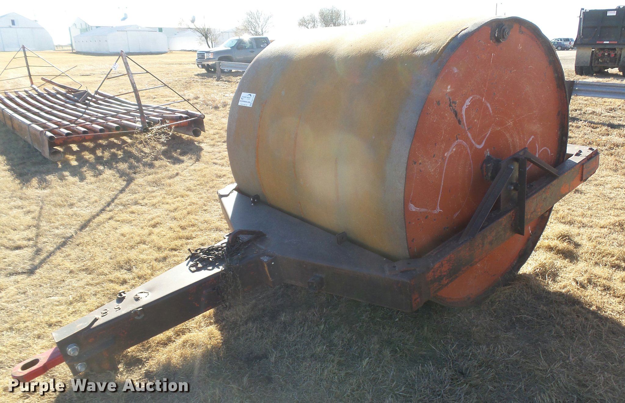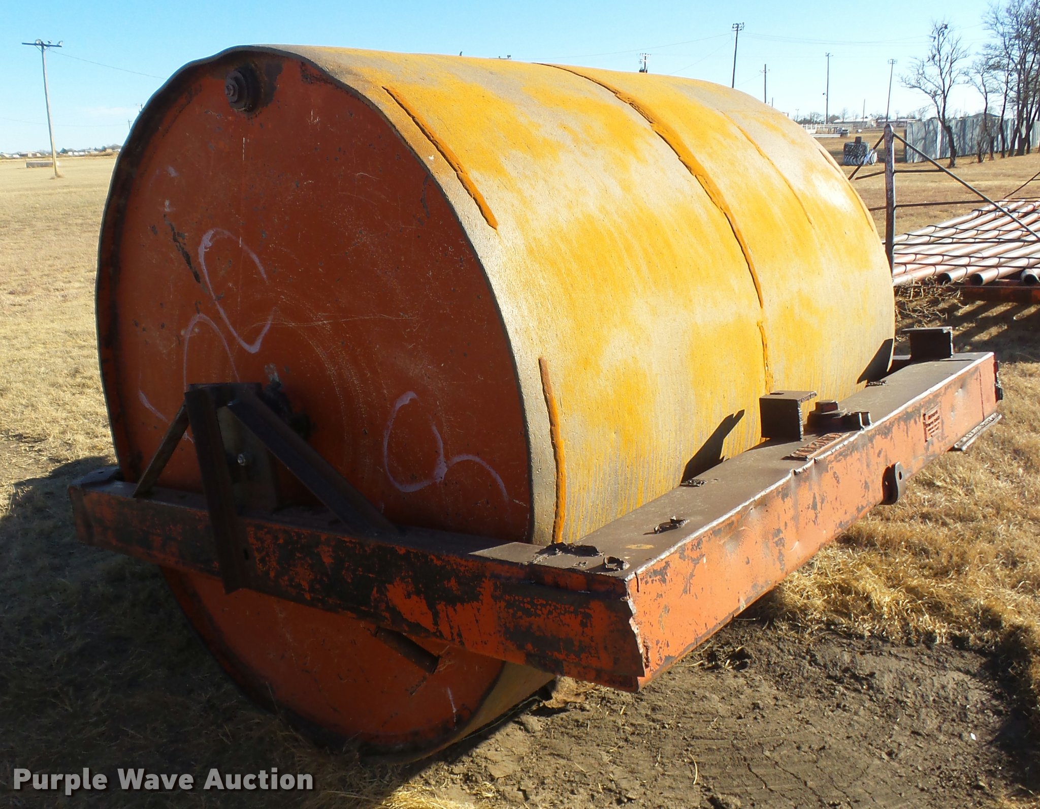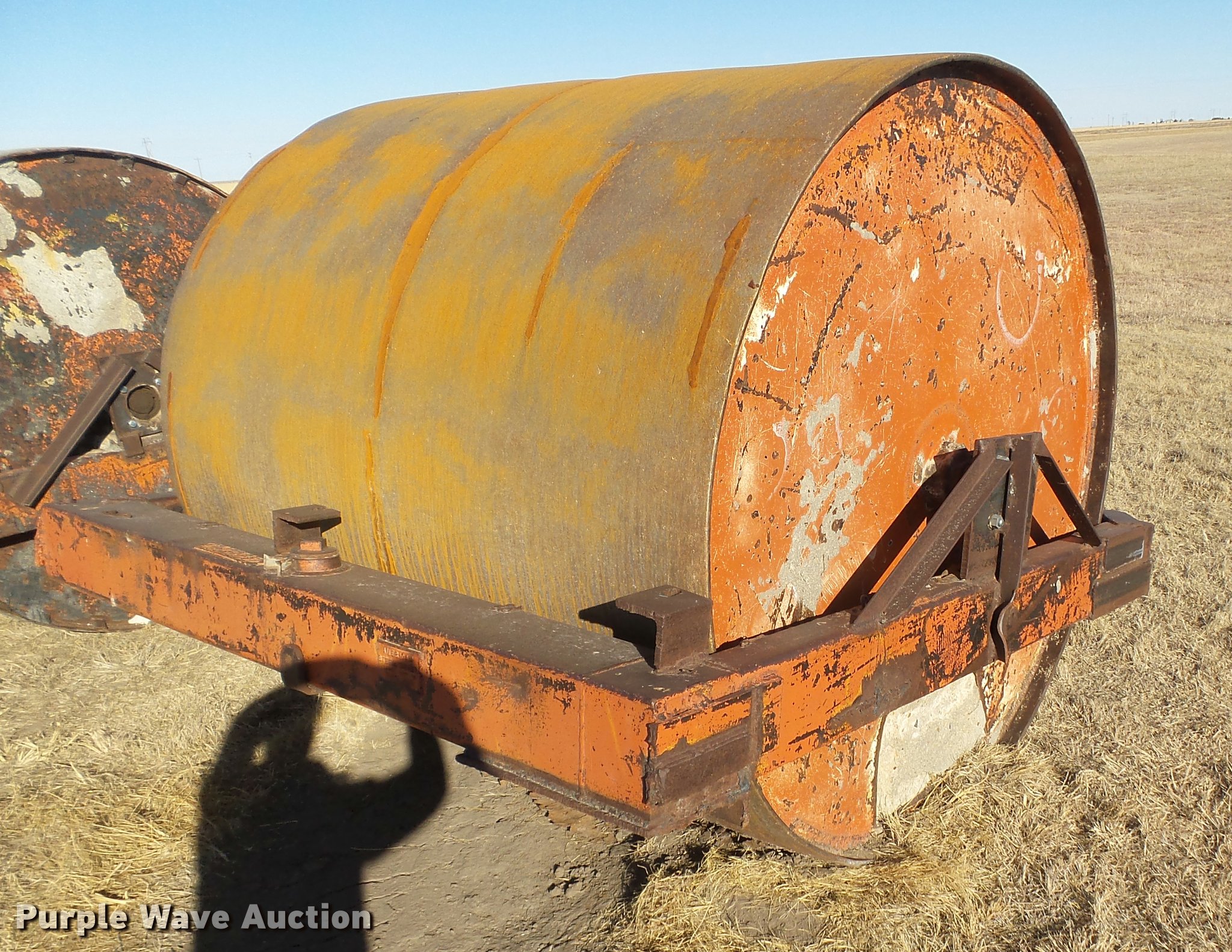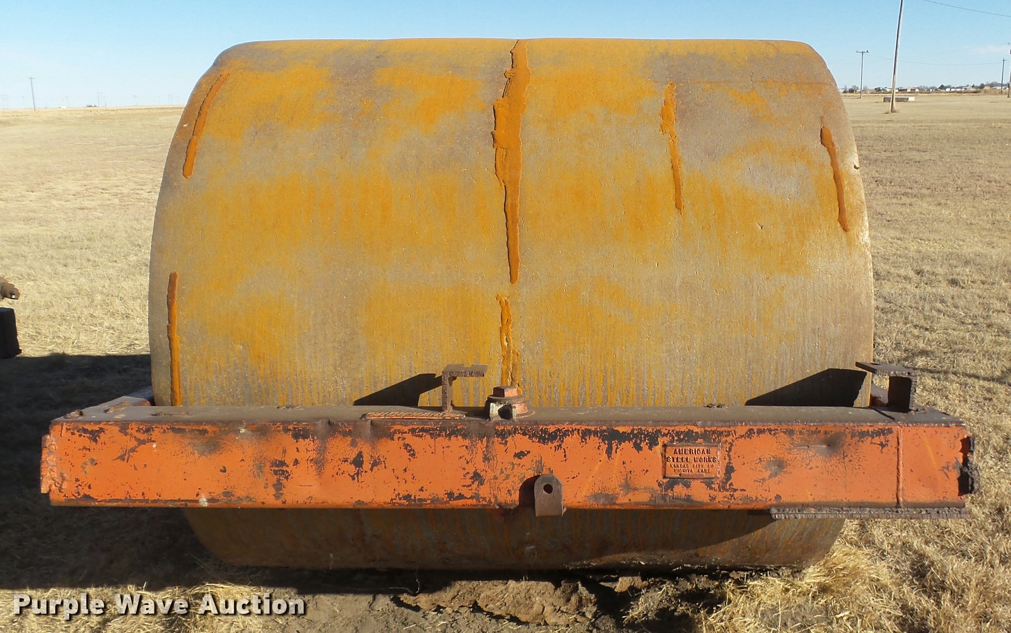 Purple Wave is selling a used Pull Type Roller Compactor in Kansas. This item is a American Steel Works steel roller with the following: 6'W x 70"H, Concrete filled, Pin hitch, Unit# 58
