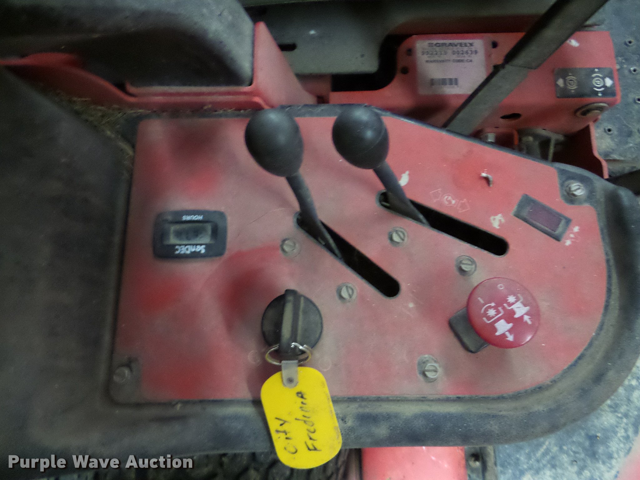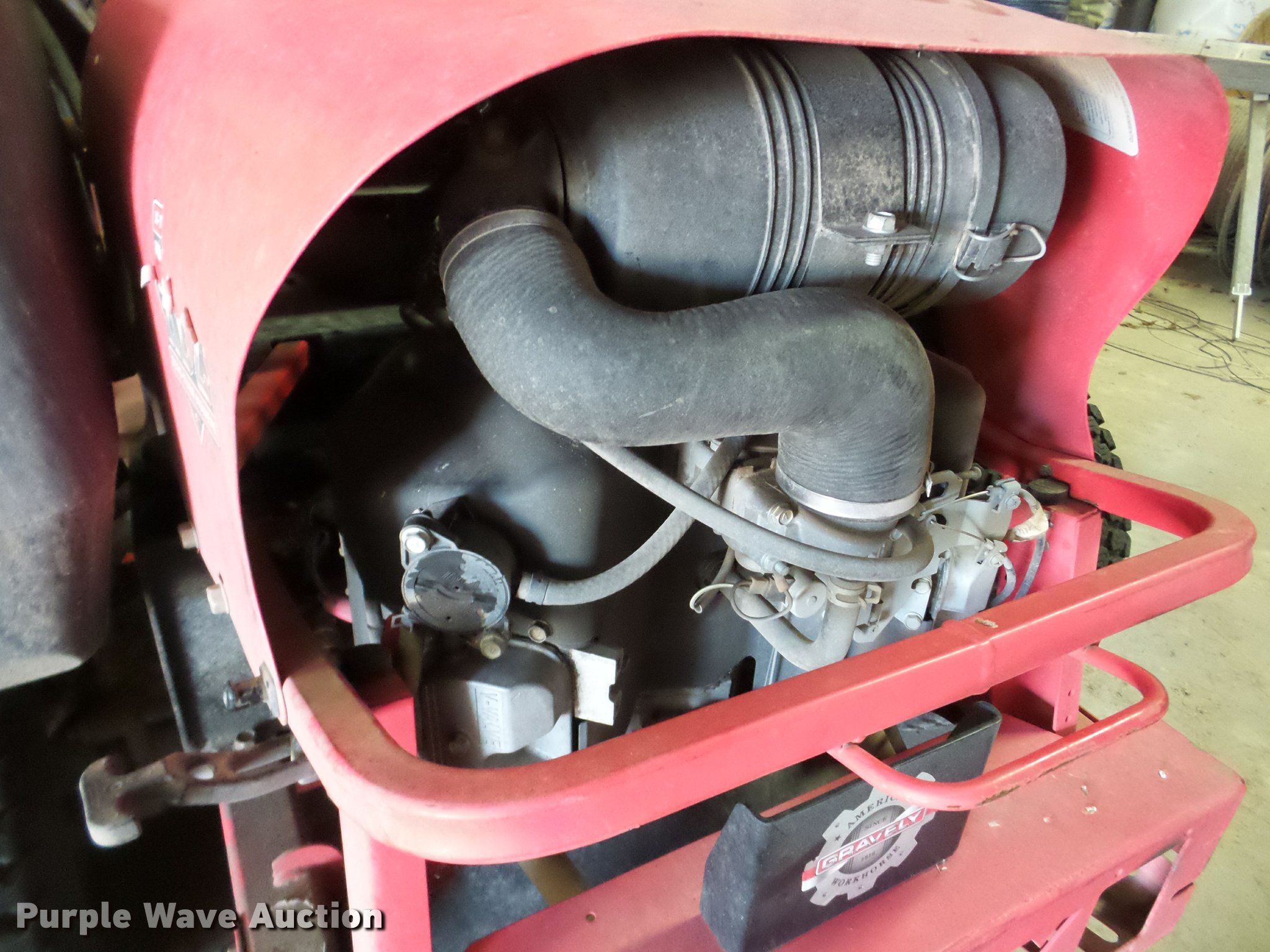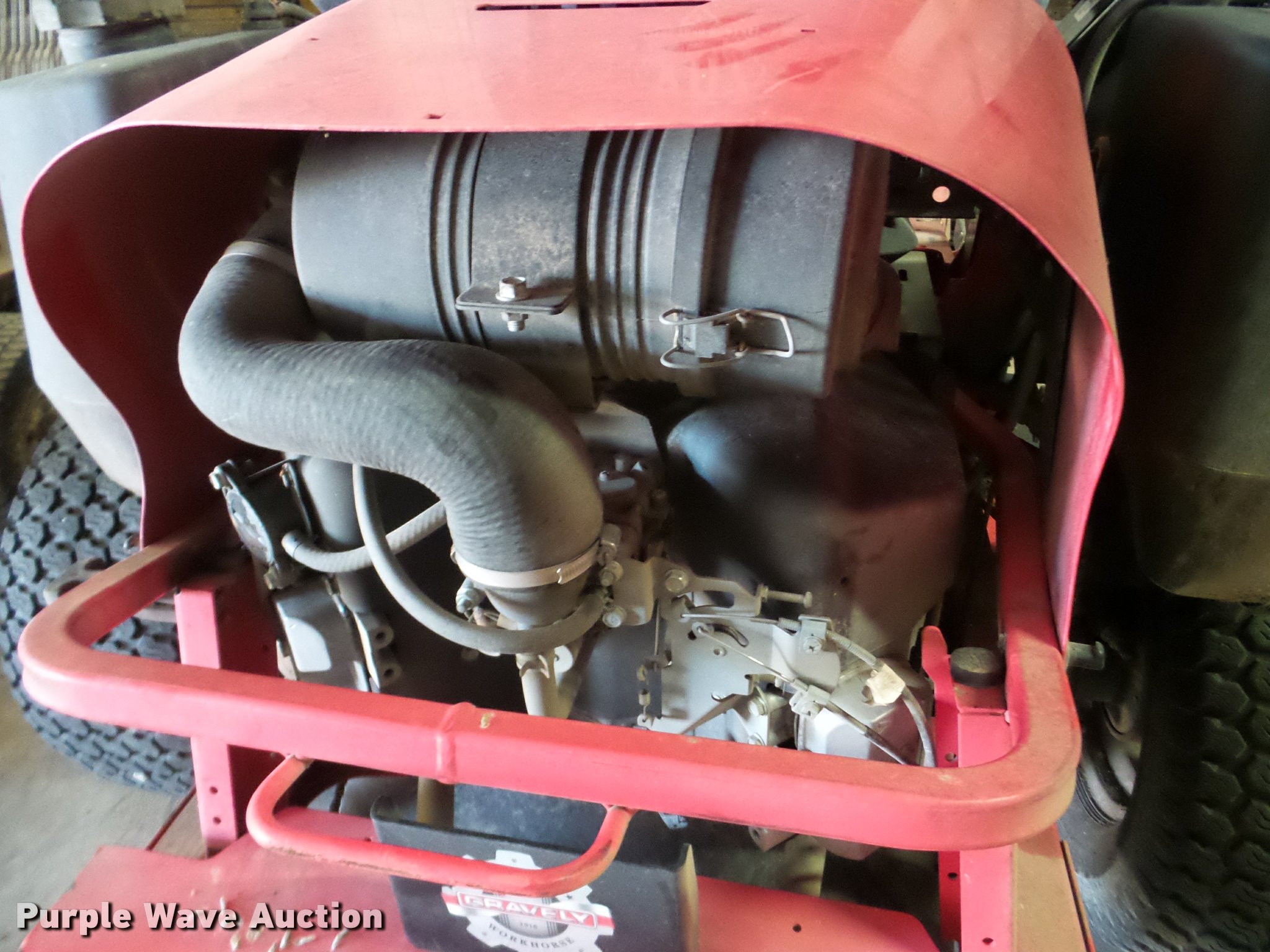 Purple Wave is selling a used Commercial Turf Mower in Kansas. This item is a Gravely Promaster 272 lawn mower with the following: 72" cut, Two cylinder gas engine, 15 x 6.00-6 tires, 24 x 11.50-12 tires, Hydrualic pump issue, Serial 1002639