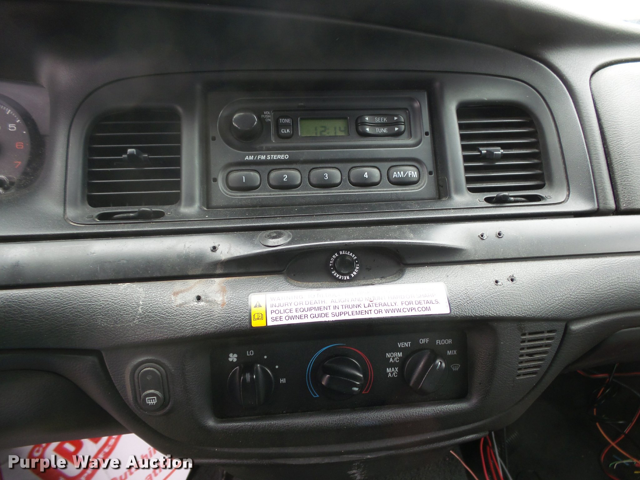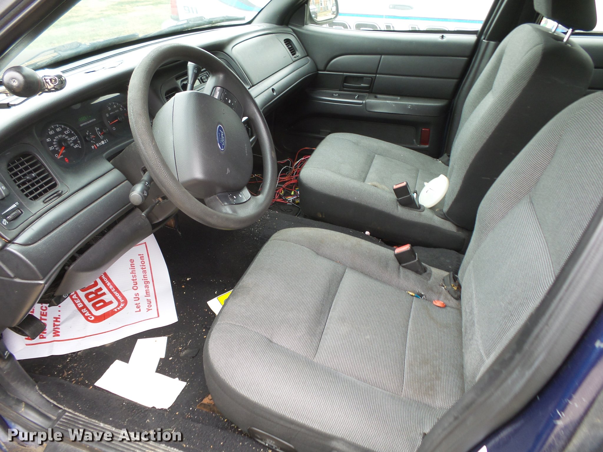 Purple Wave is selling a used Passenger Vehicle in Missouri. This item is a 2006 Ford Crown Victoria Police Interceptor with the following: 133,251 miles on odometer, 4.6L V8 SOHC 16V gas engine, Automatic transmission, AC and heat, Cruise, AM/FM, Power windows, locks, and mirrors, Cloth interior, P235/55R17 tires, Possible transmission issues, Unit must be jump started, Unit must be towed or hauled, Decals will be removed