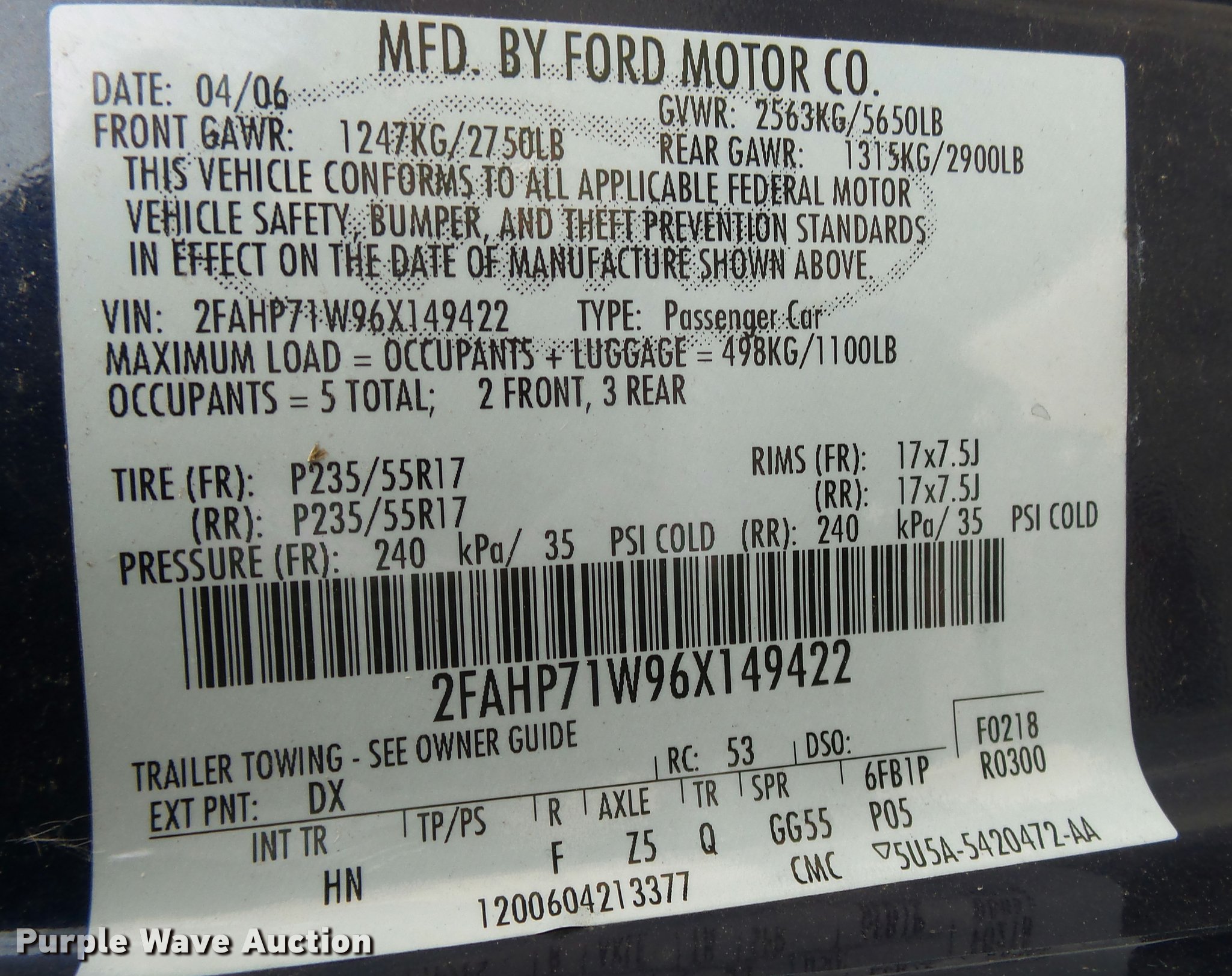 2FAHP71W96X149422