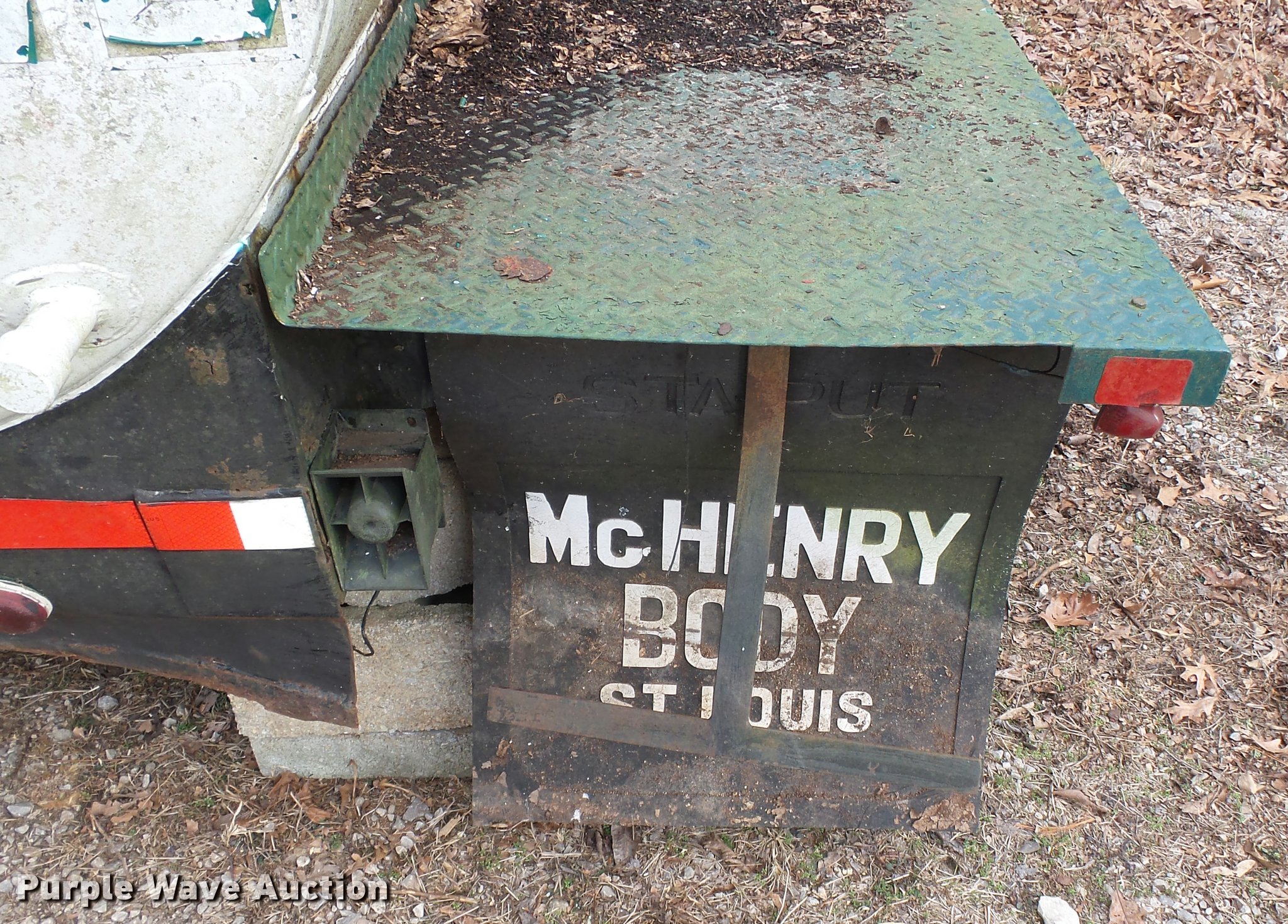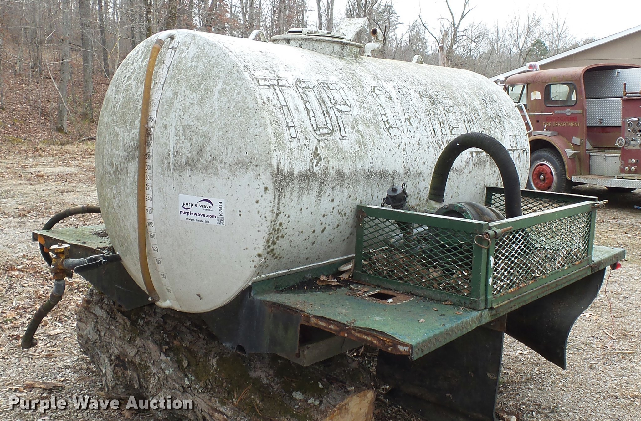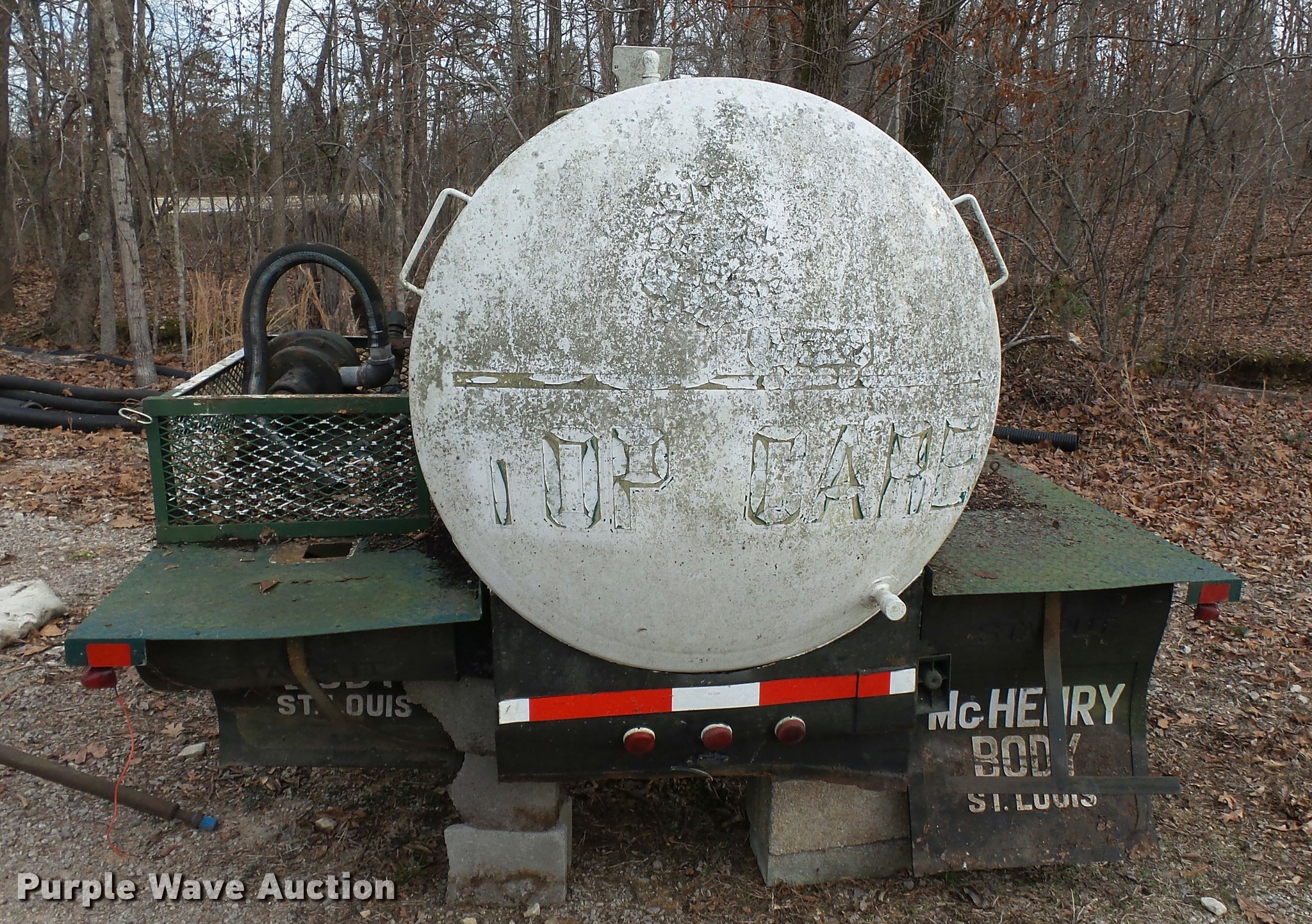 Purple Wave is selling a used Automotive Parts or Acces. in Missouri. This item is a Shop built tank bed with the following: 7'L x 92"W, Steel floor, Stainless steel tank with baffle, 600 gallon capacity, Storage boxes, PTO driven pump, Pump is locked up, Trailer wiring