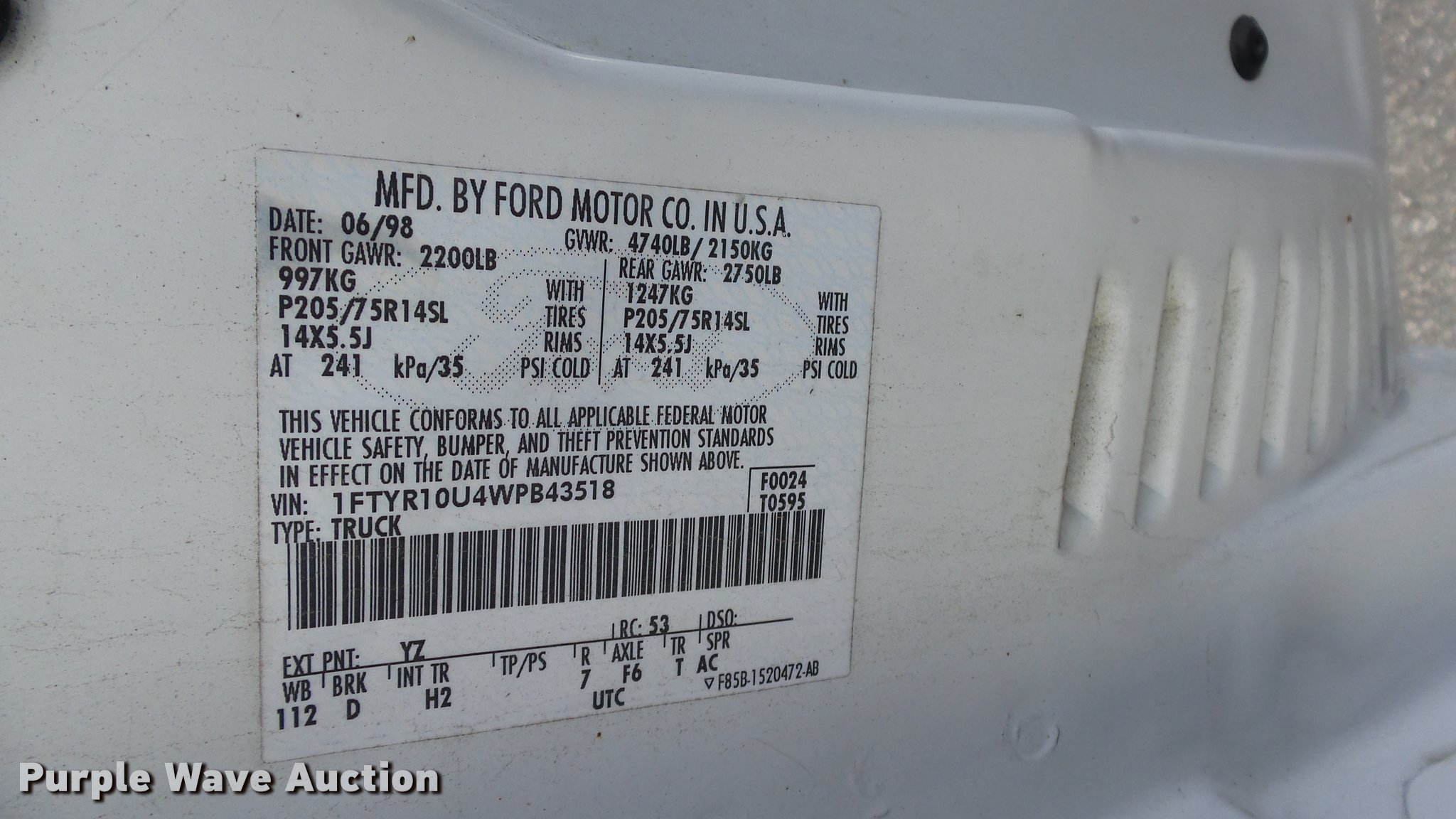 Purple Wave is selling a used Compact Pickup or Van in Kansas. This item is a 1998 Ford Ranger pickup truck with the following: 61,431 miles on odometer, 3,064 hours on meter, 3.0L V6 OHV 12V gas engine, Automatic transmission, AC and heat, Tilt, Cruise, AM/FM, Manual windows and locks, Vinyl interior, 225/70R14 tires, Rust