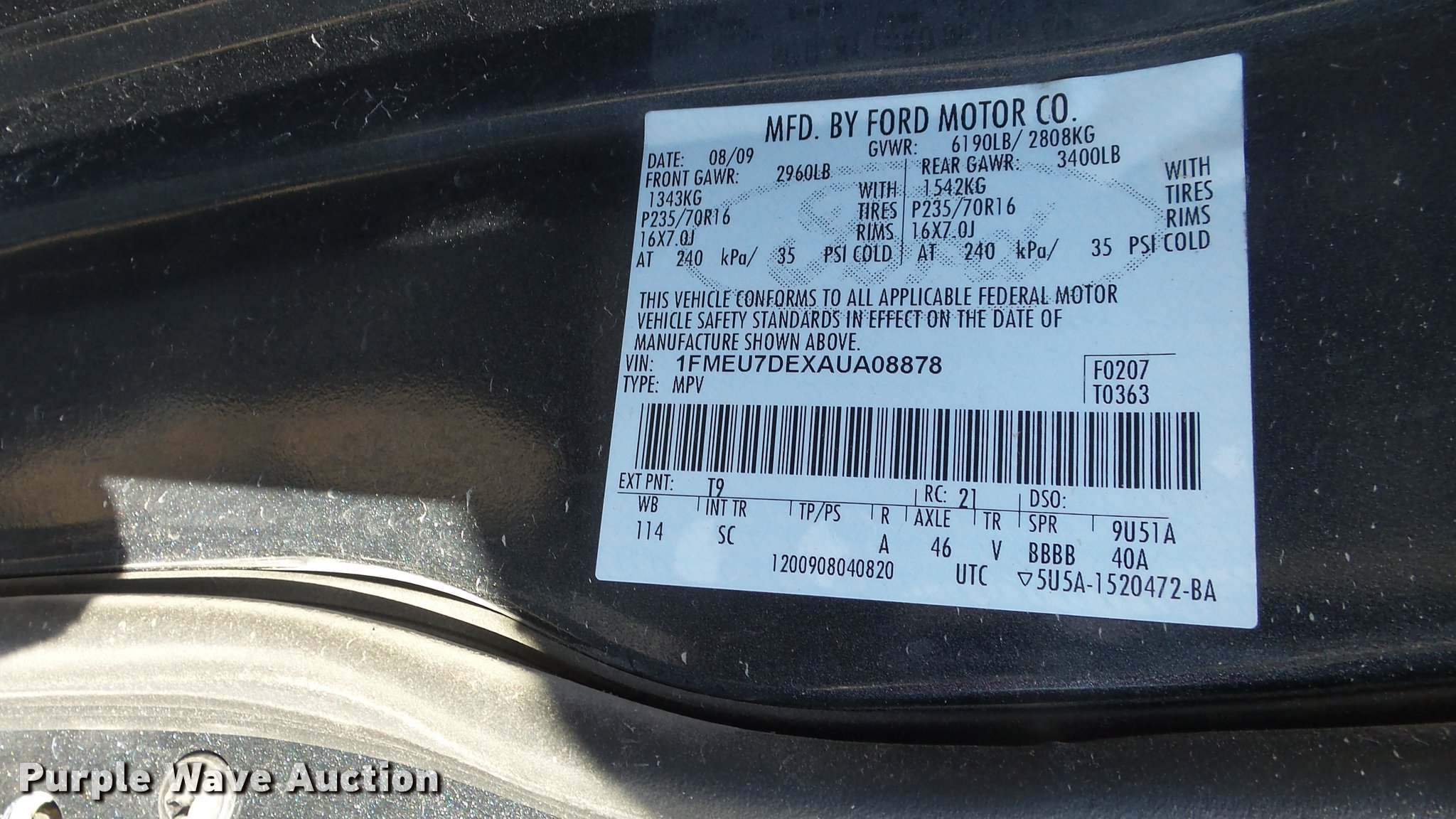 Purple Wave is selling a used Passenger Vehicle in Kansas. This item is a 2010 Ford Explorer XLT SUV with the following: 56,973 miles on odometer, 4.0L V6 SOHC 16V gas engine, Automatic transmission, Four wheel drive, AC and heat, Tilt, Cruise, AM/FM/CD, Power windows, locks, mirrors, and seat, Cloth interior, Fog lights, Luggage rails, Receiver hitch, Trailer wiring, 225/75R16 tires