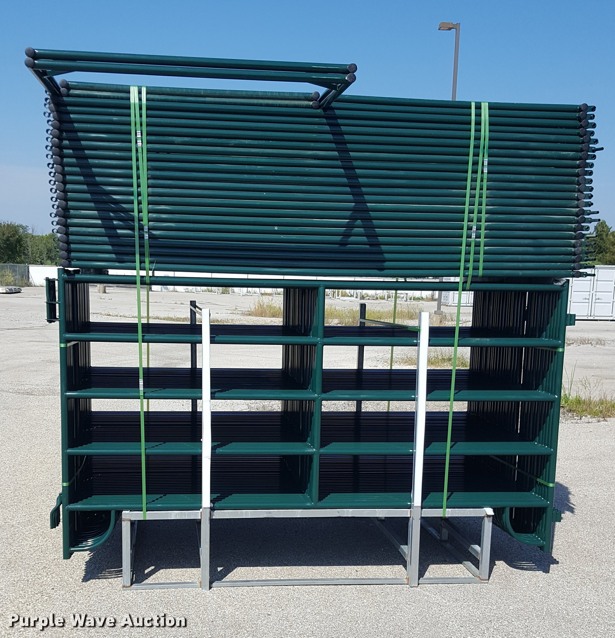 Purple Wave is selling a used Livestock Equip. in Kansas. This item is a (56) five bar corral panels with the following: (54) 9' x 5' panels, (2) 9' x 5' entrance panels, Powder coated, Unused