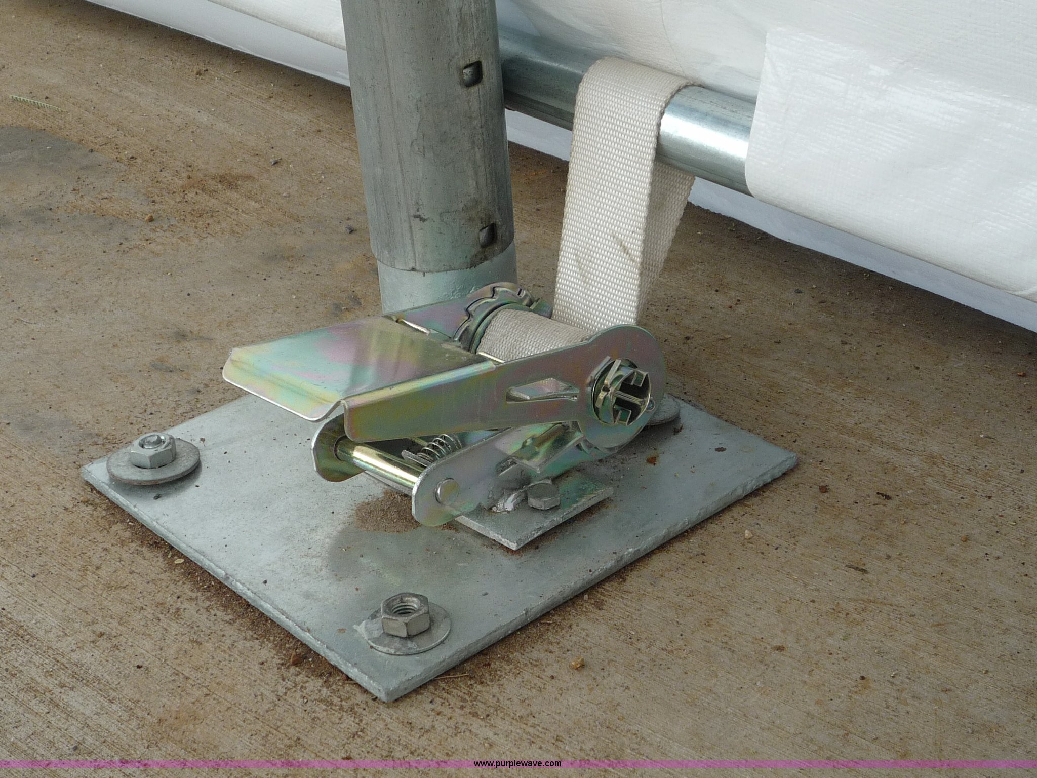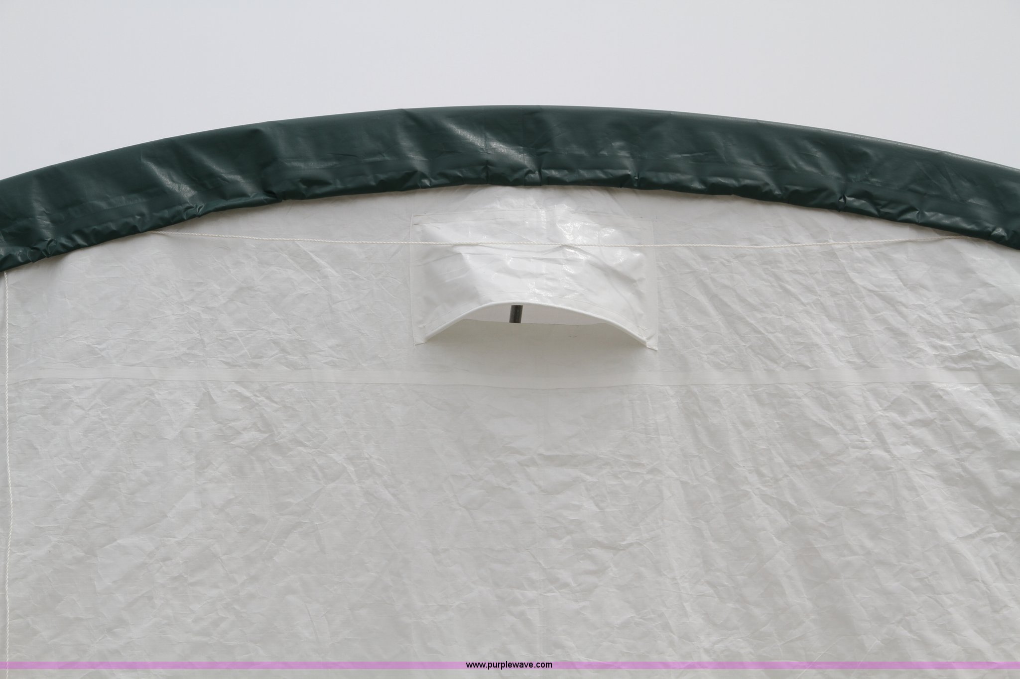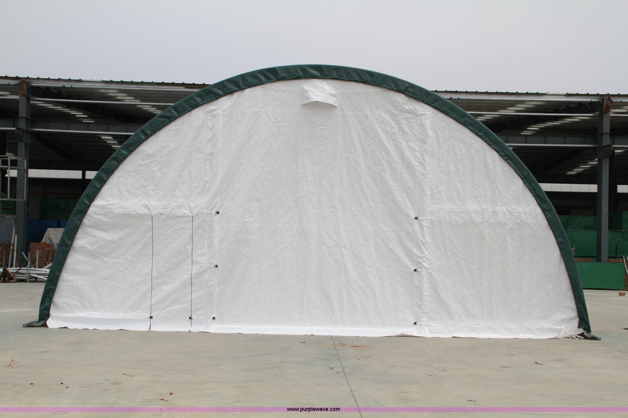 Purple Wave is selling a used Building Materials in Kansas. This item is a 30 x 85 x 15 dome storage building with the following: Galvanized finish, All steel frame, 2 3/4" oval galvanized steel piping, 15 gauge, Dome design sway bars, Front and rear double easy roll up doors, Single steel crate, Ground base plates and basic anchor pegs, Green caps/white main cover, Wind brace support on each corner, Double cover tensioning system, Rod anchoring system, 10 oz. CPAI-84 fabric cover and doors, Unused