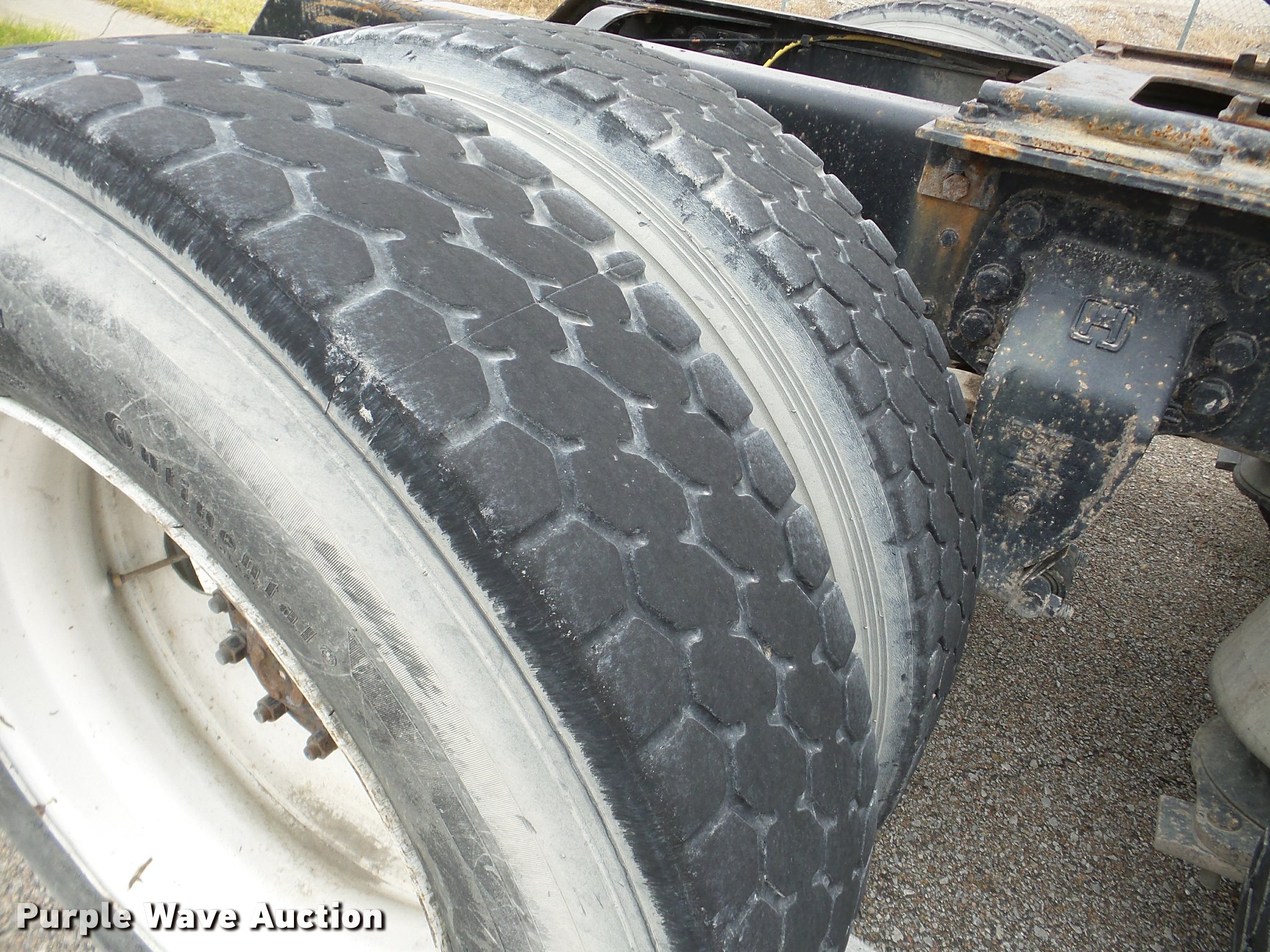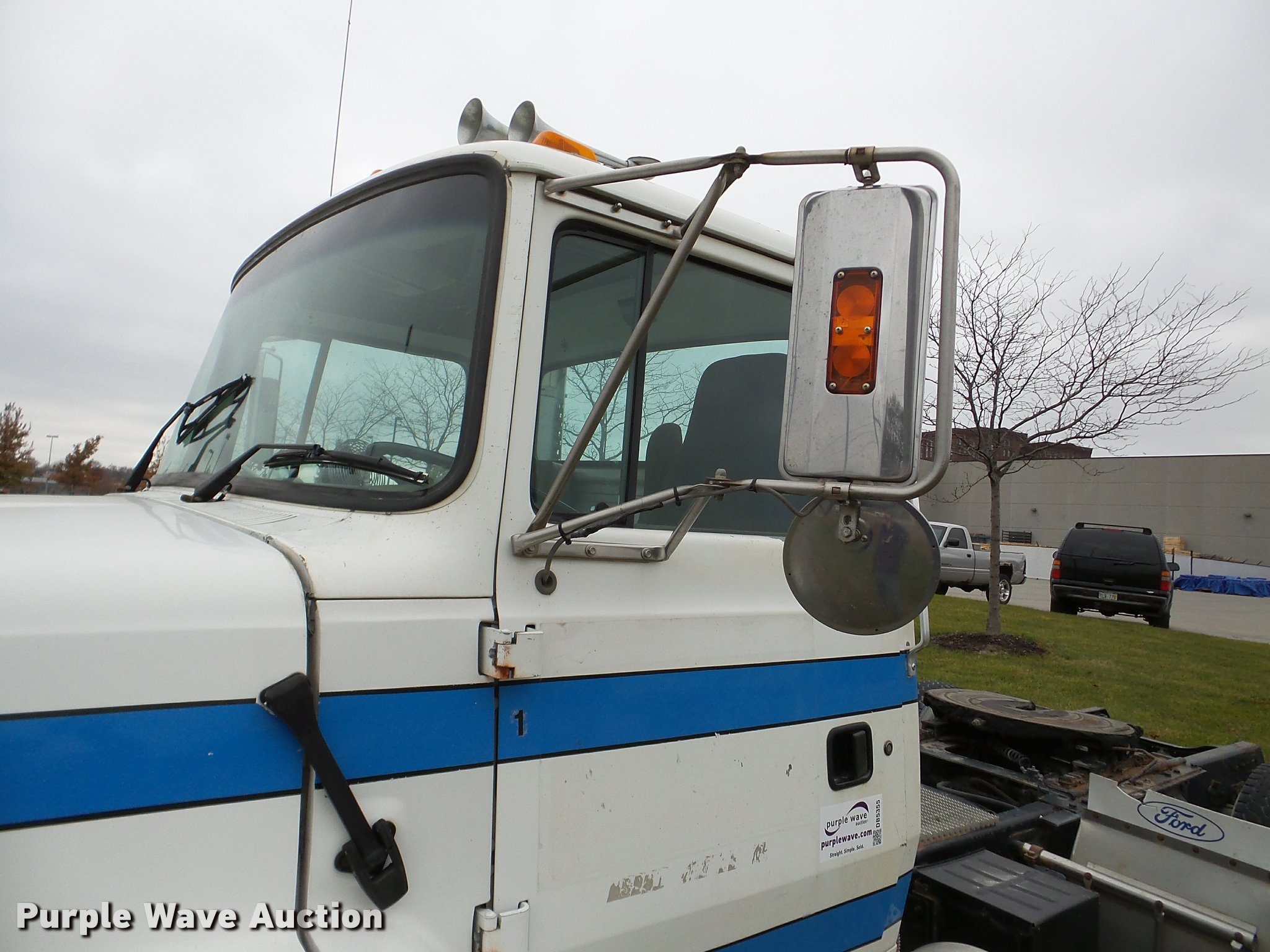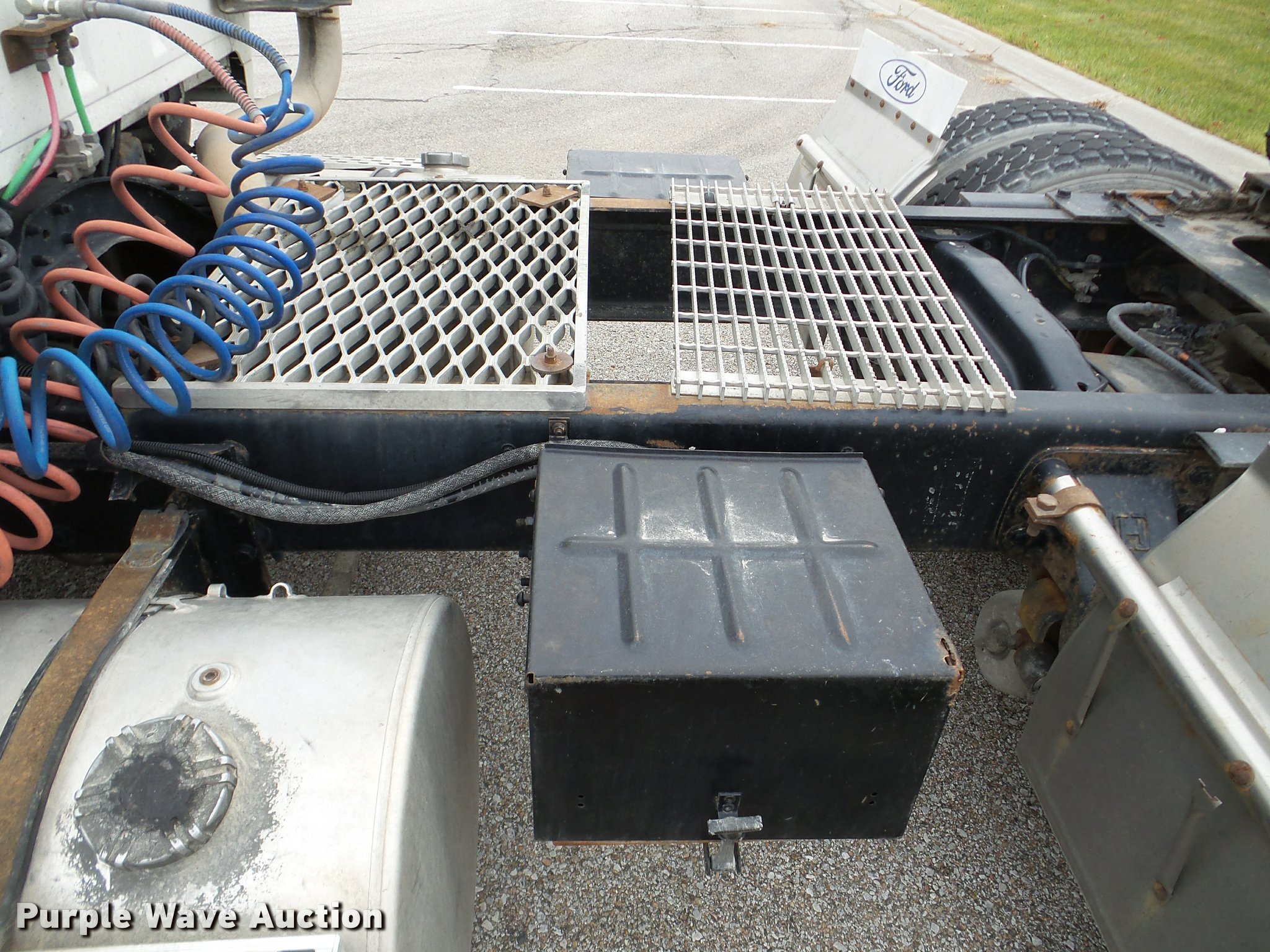 Purple Wave is selling a used Truck Tractor in Nebraska. This item is a 1995 Ford LTA9000 Aero Max 106 semi truck with the following: 467,835 miles on odometer, Cummins ISM 10.8L L6 turbo diesel engine, Eaton Fuller 10 speed manual transmission, Tandem axle, Inter-axle differential lock, Heat, Cruise, AM/FM, Heated mirrors, Air suspension seat, Dump valves, Aluminum deck plate, Air operated sliding fifth wheel plate, Dual fuel tanks, Quarter fenders, Mud flaps, 167" wheelbase, Spring suspension, Air brakes, 285/75R24.5 tires, GVWR 50,000 lbs, FAWR 12,000 lbs, RAWR 40,000 lbs, Piston cracked, Non-operational AC