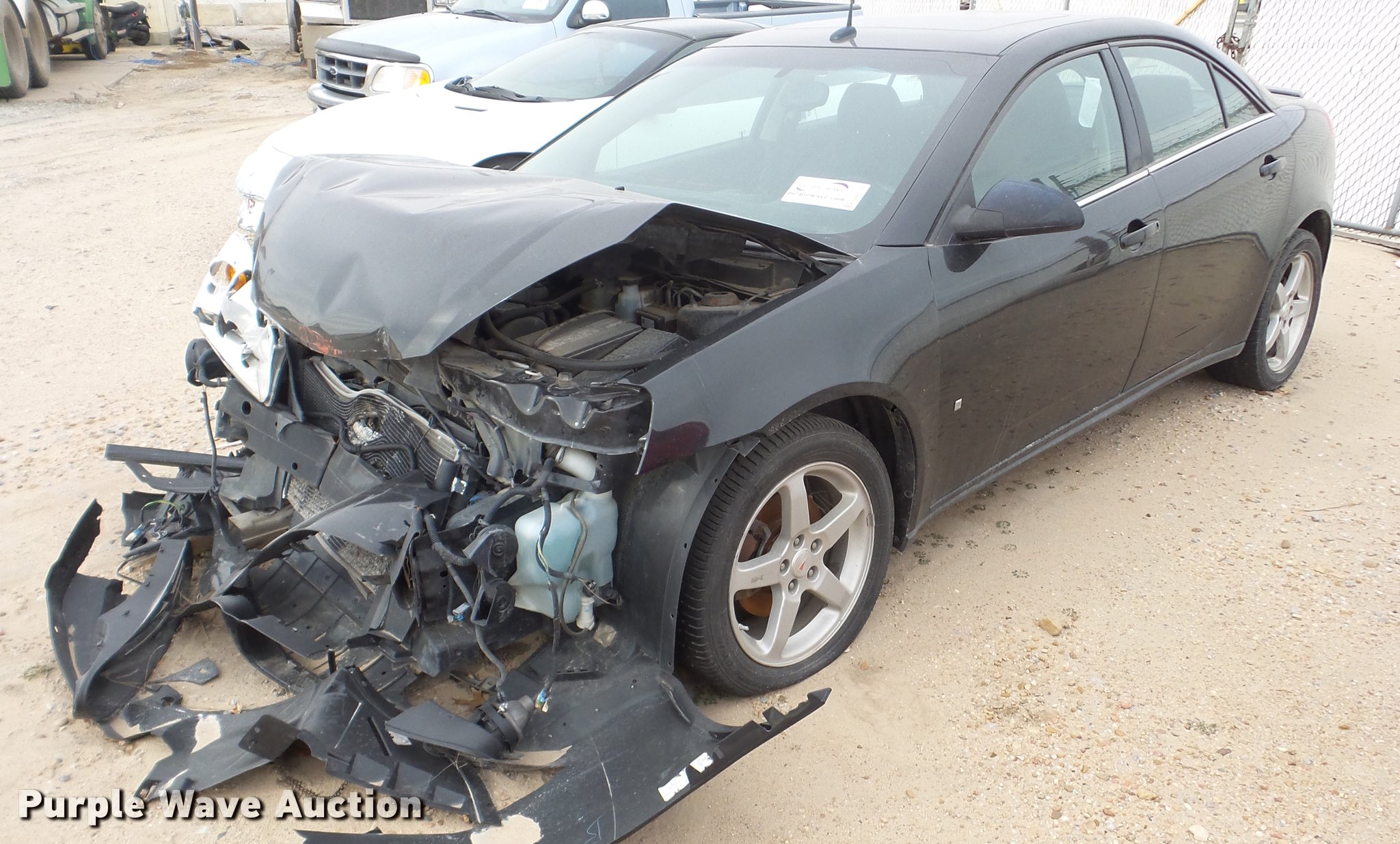 Purple Wave is selling a used Passenger Vehicle in Kansas. This item is a 2008 Pontiac G6 with the following: Unknown miles on odometer, 3.5L V6 OHV 12V gas engine, Automatic transmission, AC and heat, Tilt, Cruise, AM/FM/CD, Power windows, locks, and mirrors, Cloth interior, Sunroof, 225/50ZR17 tires, Front end damage, Air bags deployed, Case# 16C060910