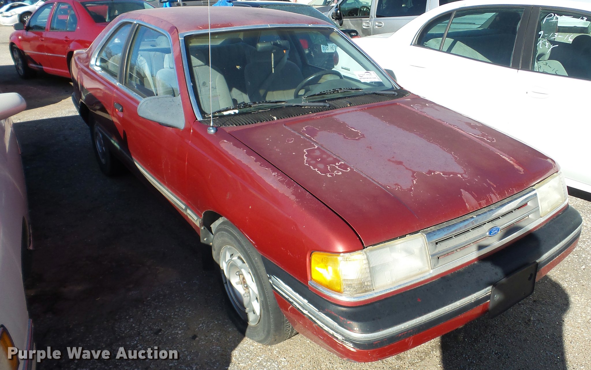 Purple Wave is selling a used Passenger Vehicle in Kansas. This item is a 1990 Ford Tempo with the following: Unknown miles on odometer, 2.3L L4 OHV 8V gas engine, Automatic transmission, AC and heat, AM/FM, Manual windows and locks, Cloth interior, 195/70R14 tires, Paint faded, Doors locked, Rust, Case# 16C055406