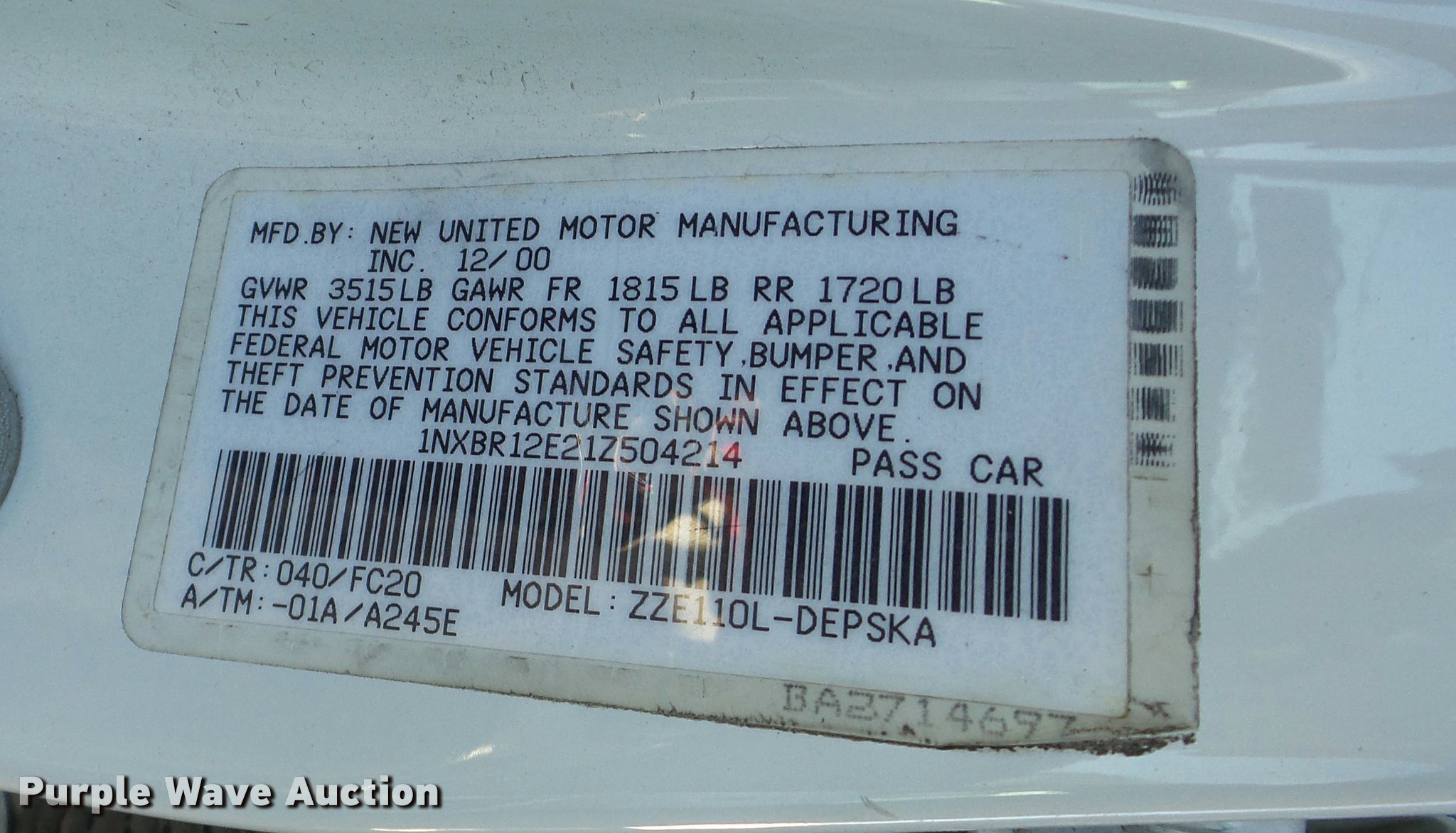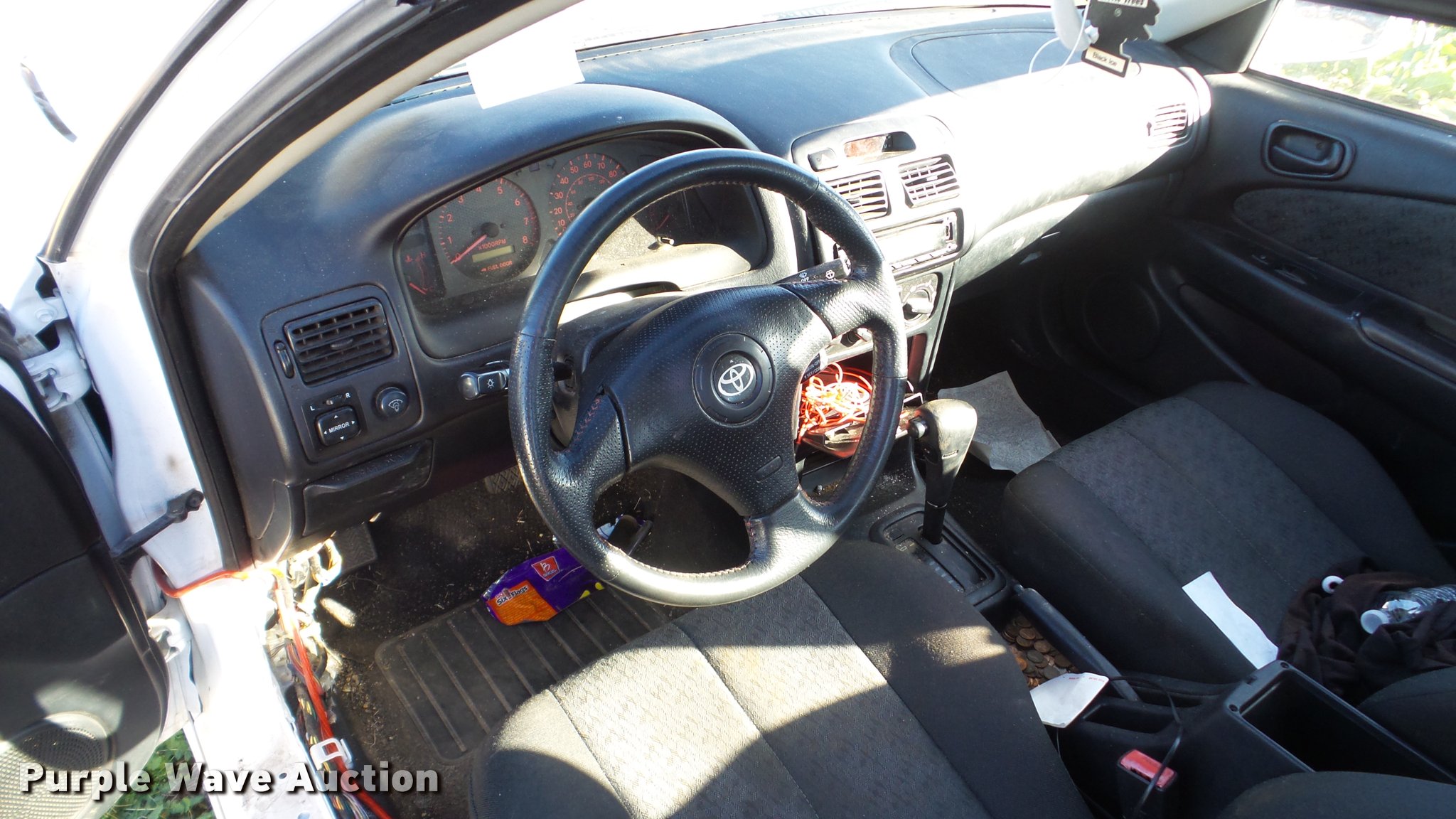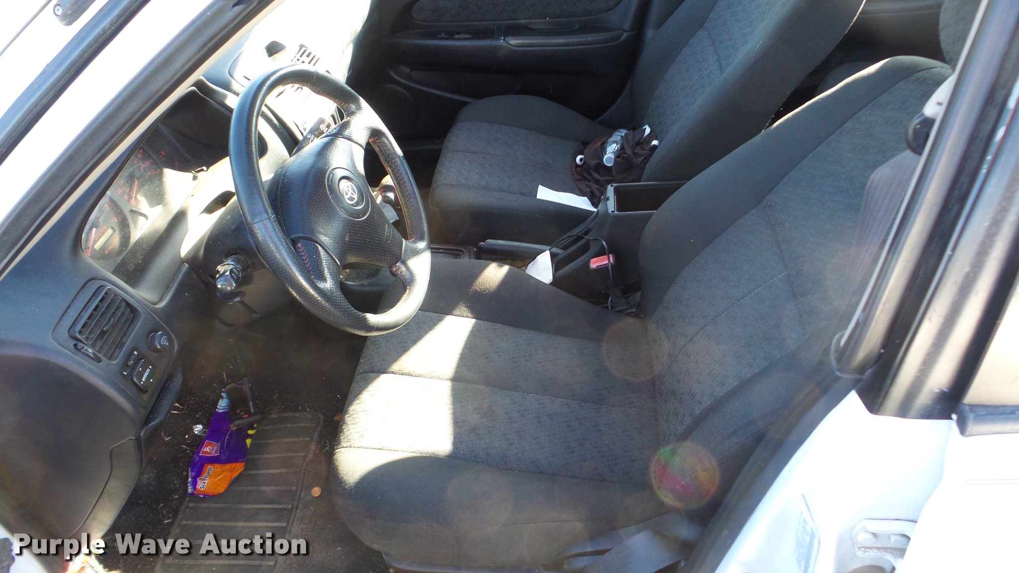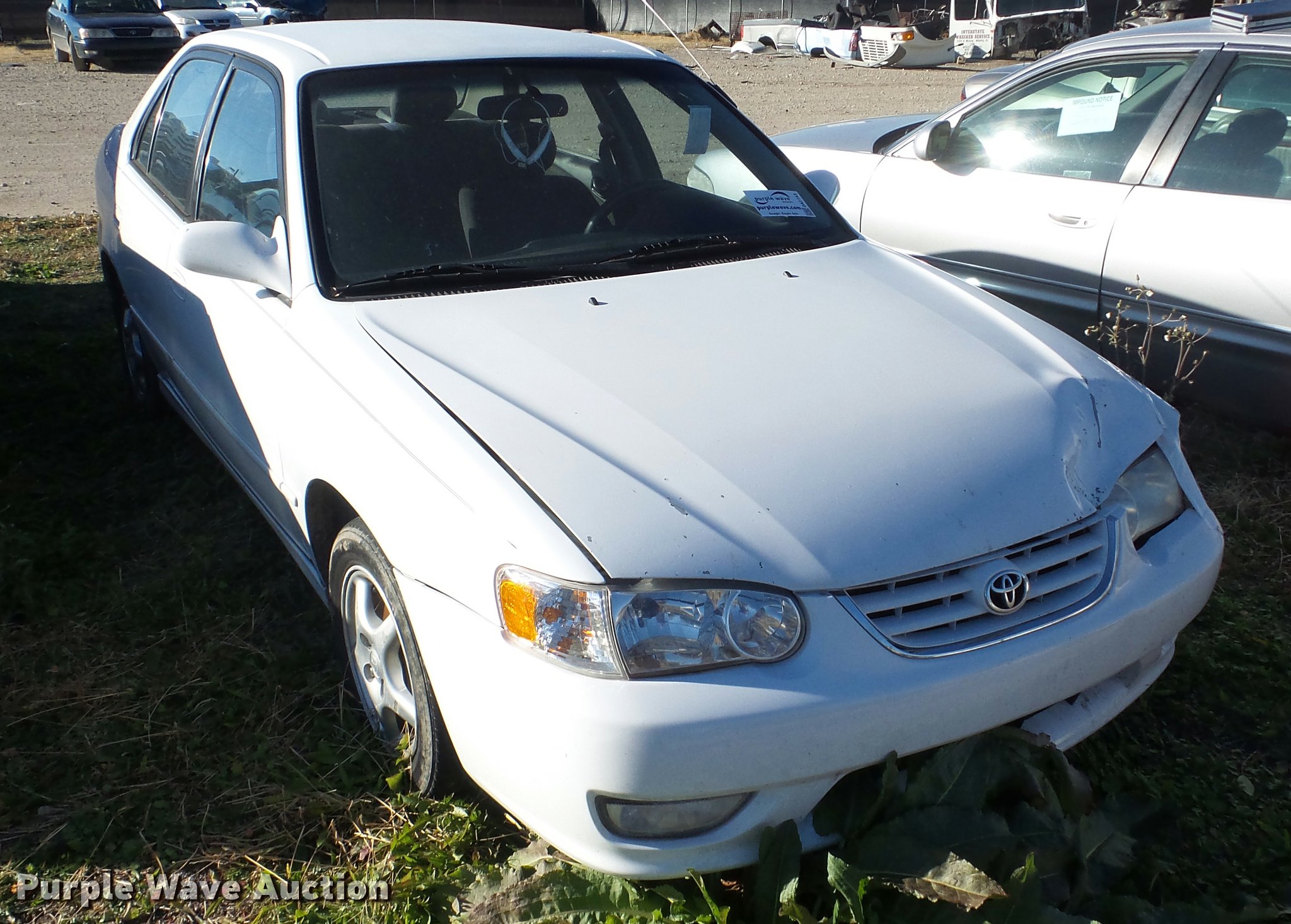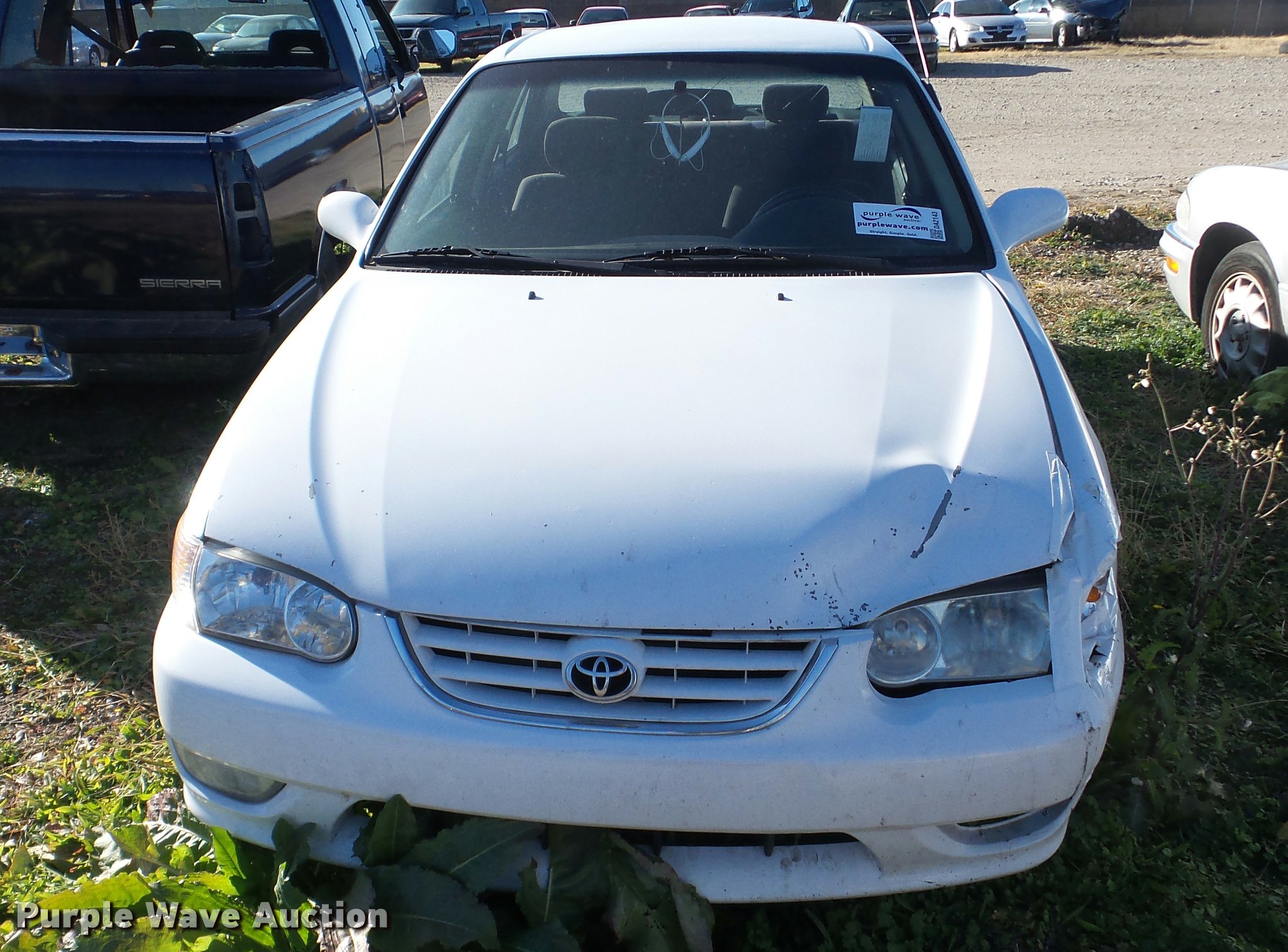 Purple Wave is selling a used Passenger Vehicle in Kansas. This item is a 2001 Toyota Corolla with the following: Unknown miles on odometer, 1.8L L4 DOHC 16V gas engine, Automatic transmission, AC and heat, AM/FM/CD, Power windows, locks, and mirrors, Cloth interior, 175/65R14 tires, Hood will not open, Windshield cracked, Rust, Case# 16C60705