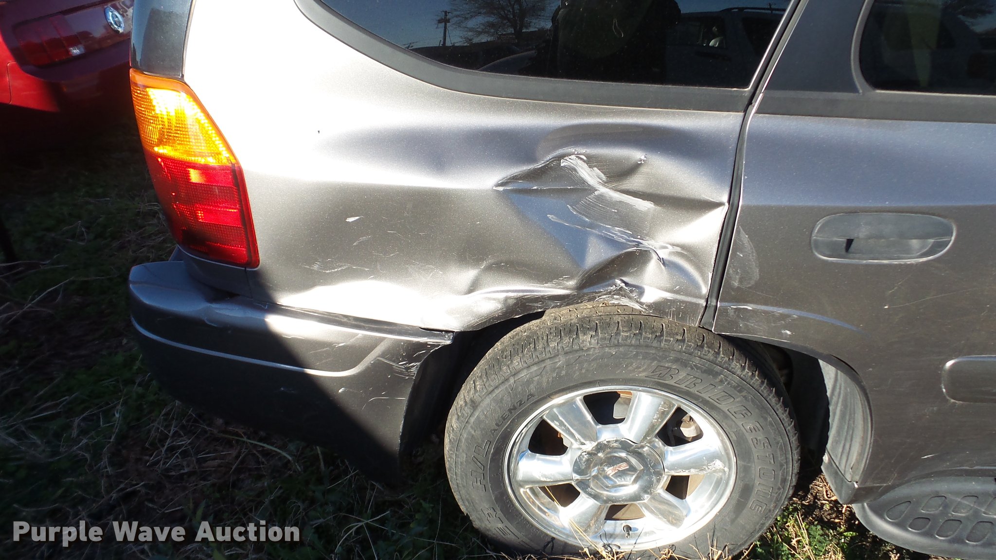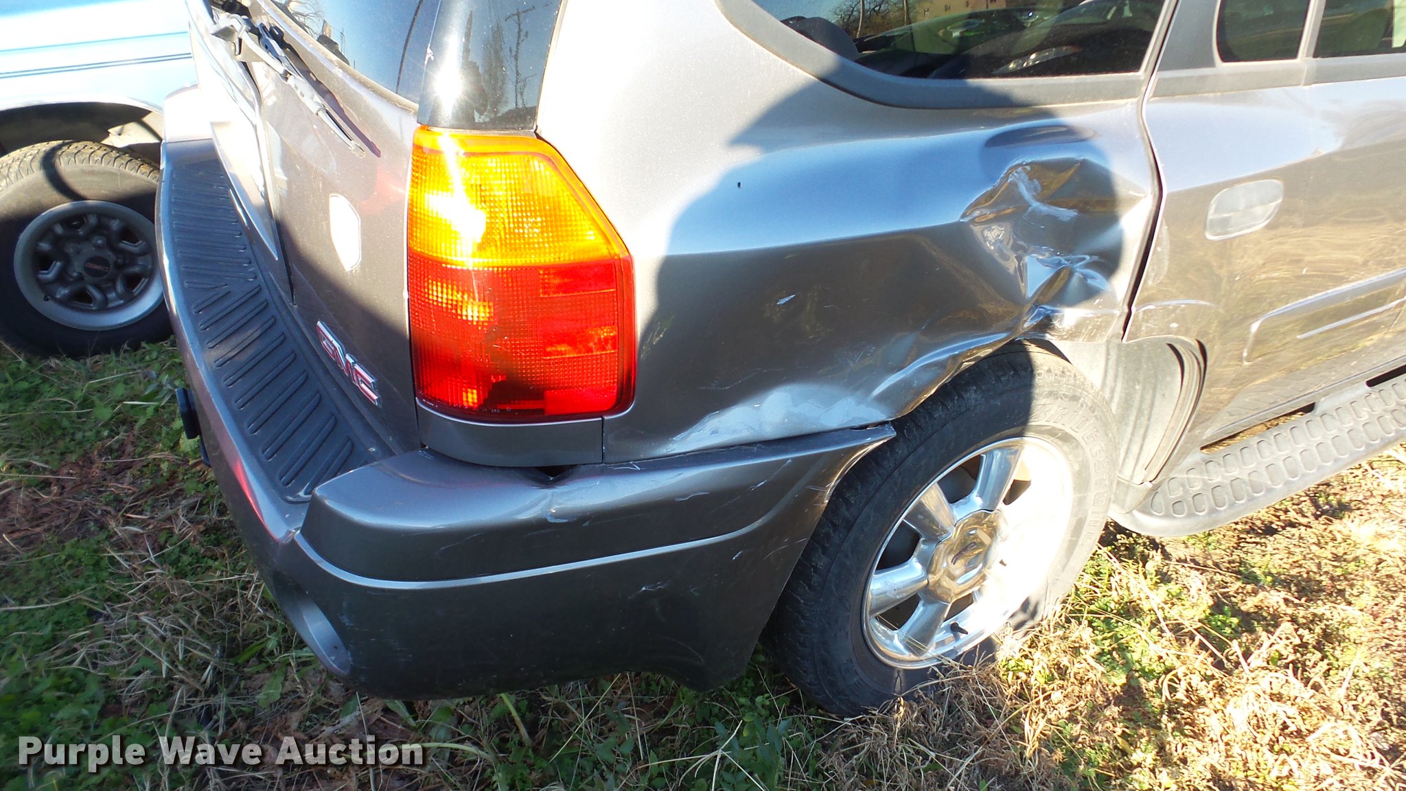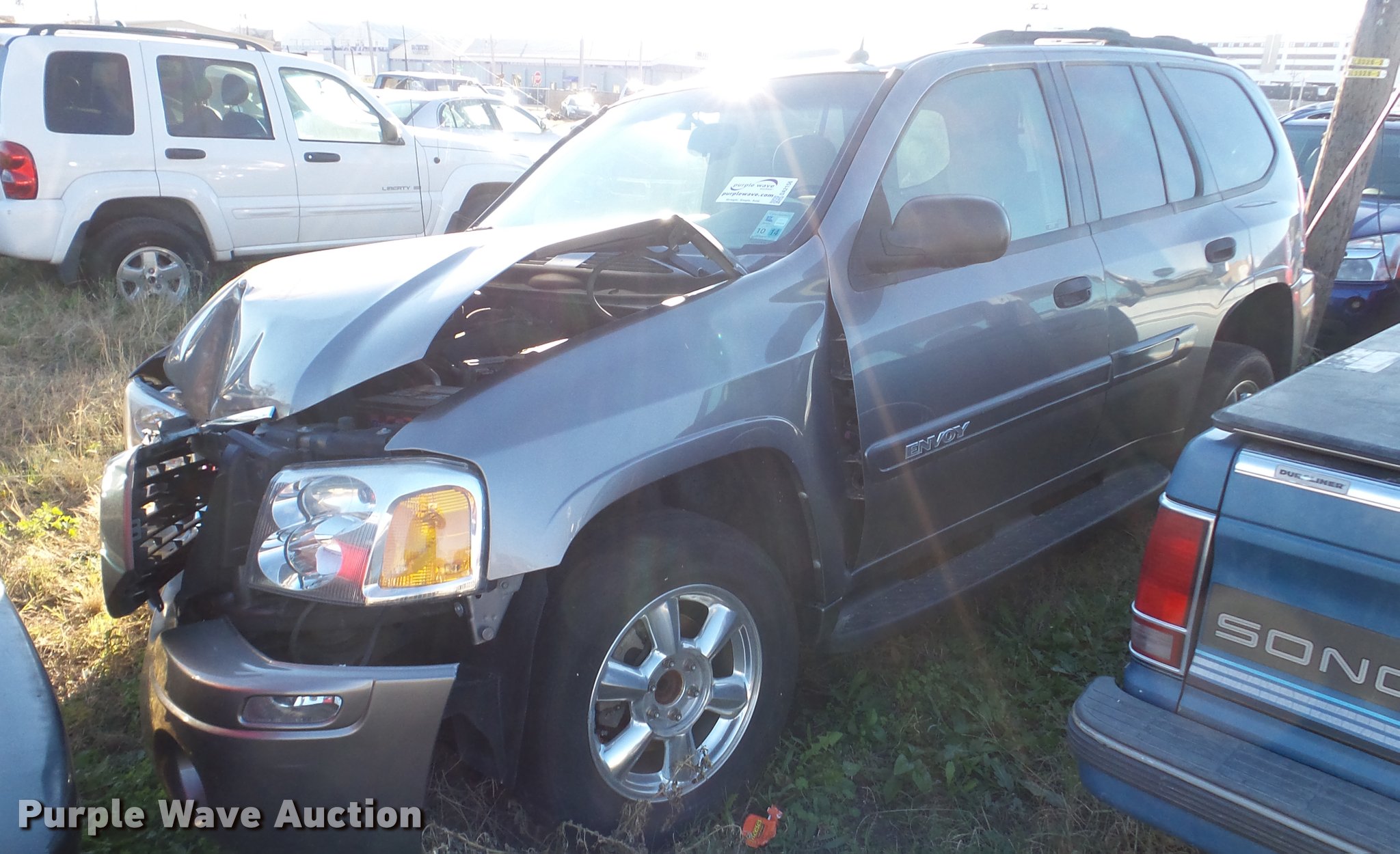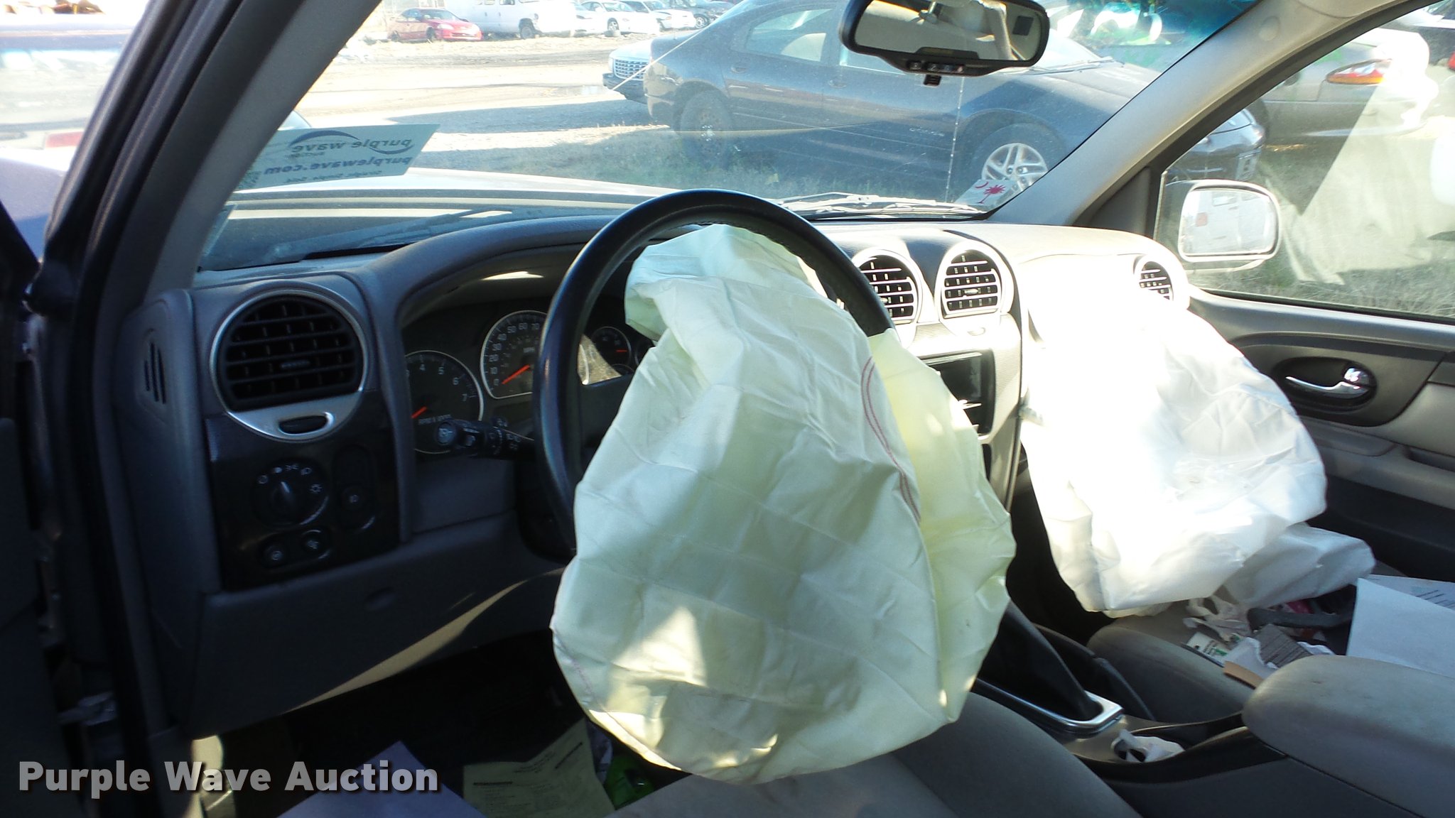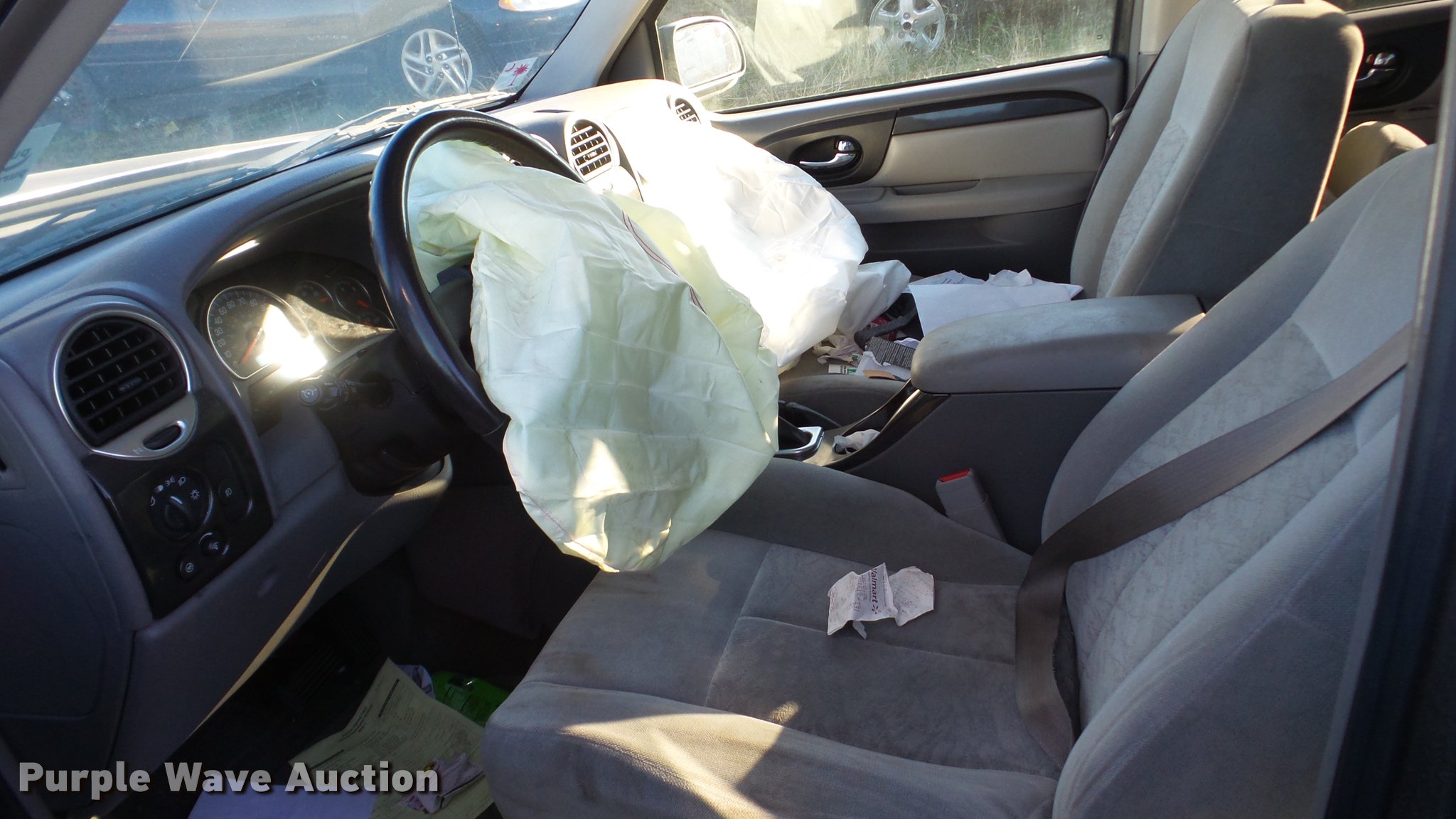 Purple Wave is selling a used Passenger Vehicle in Kansas. This item is a 2005 GMC Envoy SUV with the following: Unknown miles on odometer, 4.2L L6 DOHC 24V gas engine, Automatic transmission, AC and heat, Tilt, Cruise, Power windows, locks, and mirrors, Cloth interior, Running boards, Receiver hitch, 245/55R17 tires, Front end damage, Air bags deployed, No radio, Case# 16C54985