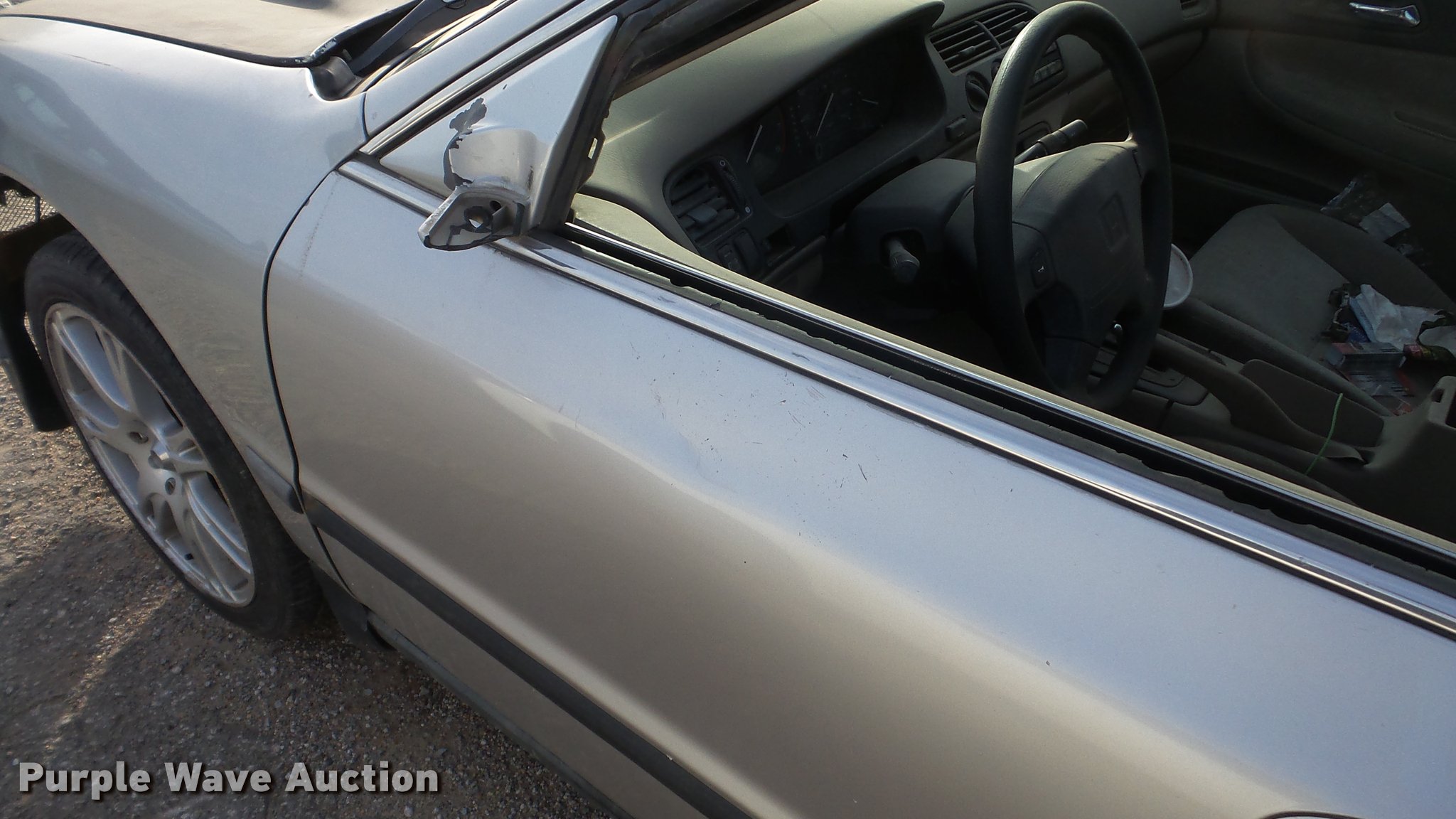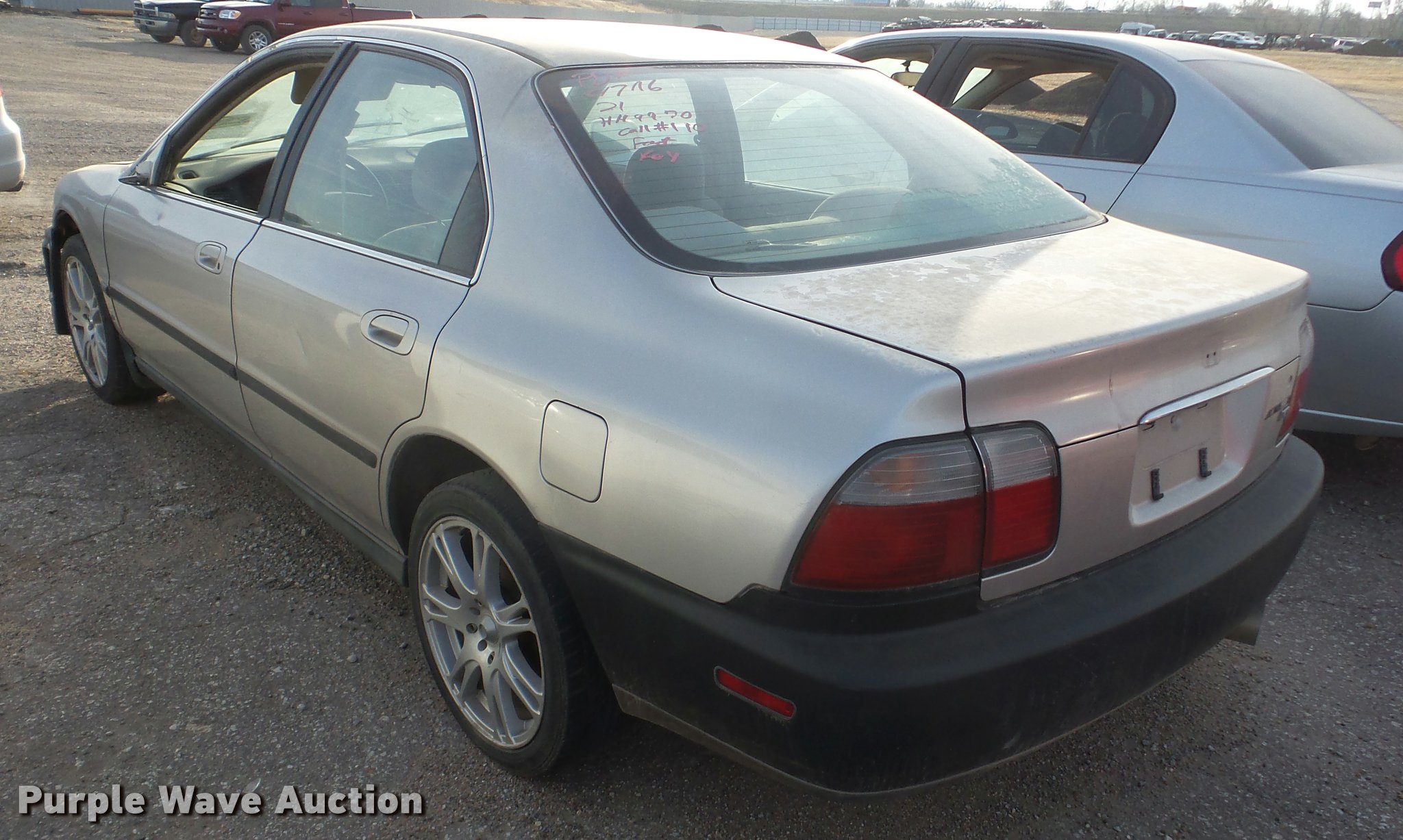 Purple Wave is selling a used Passenger Vehicle in Kansas. This item is a 1997 Honda Accord with the following: 279,839 miles on odometer, 2.2L L4 SOHC 16V gas engine, Automatic transmission, AC and heat, AM/FM/CD, Power windows, locks, and mirrors, Cloth interior, 215/45ZR17 tires, Hood will not open, Windshield cracked, Paint peeling, Case# 16C055002