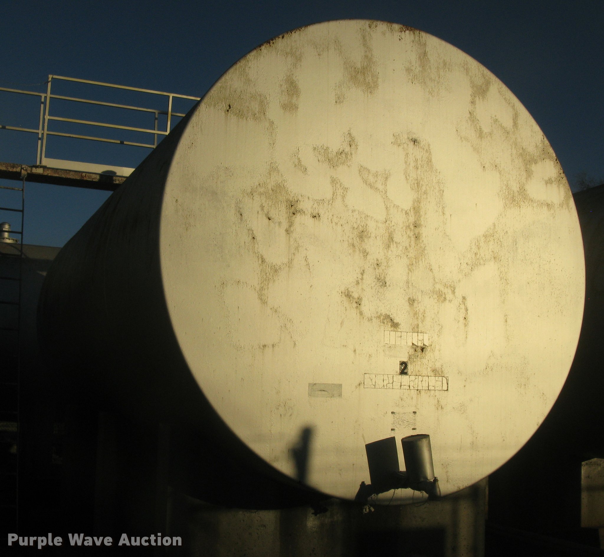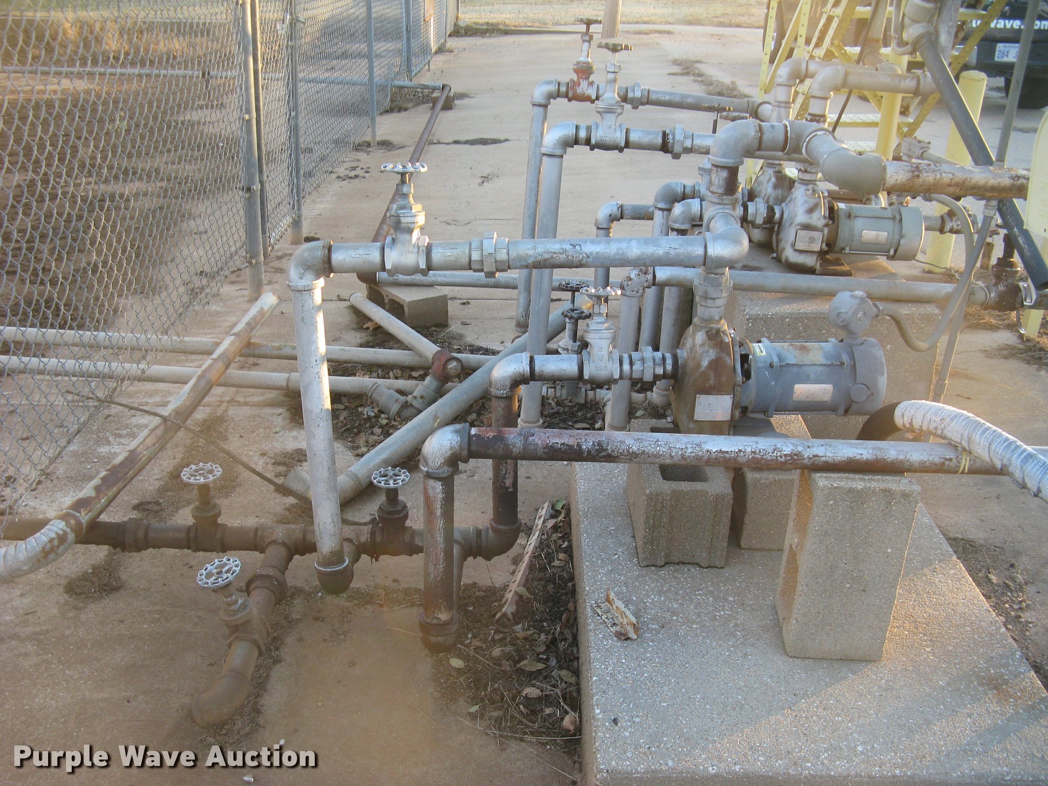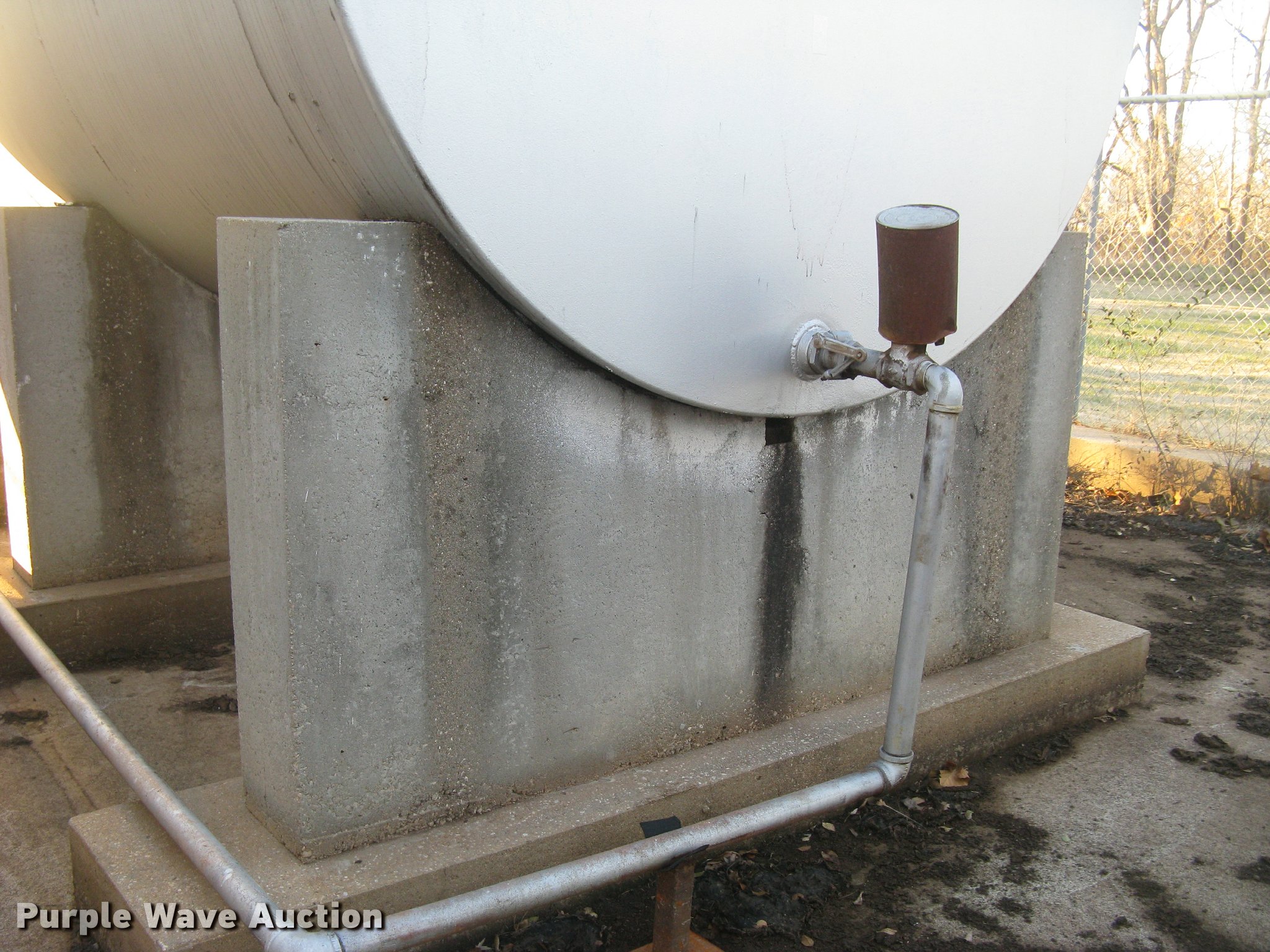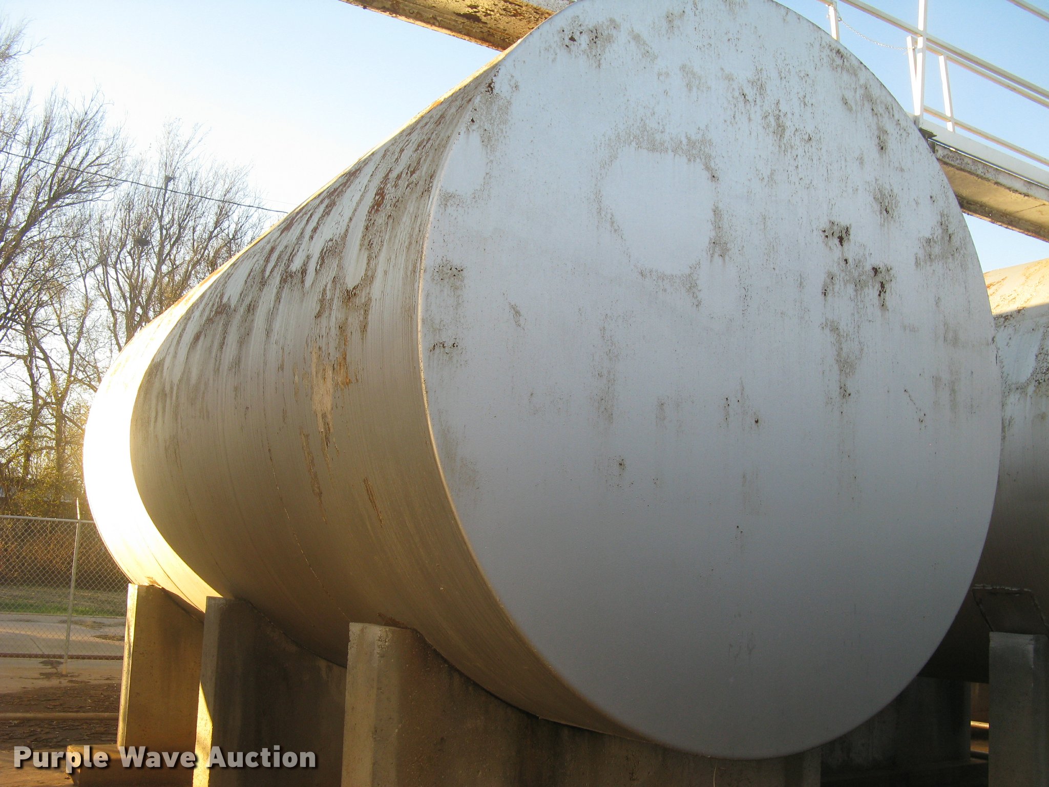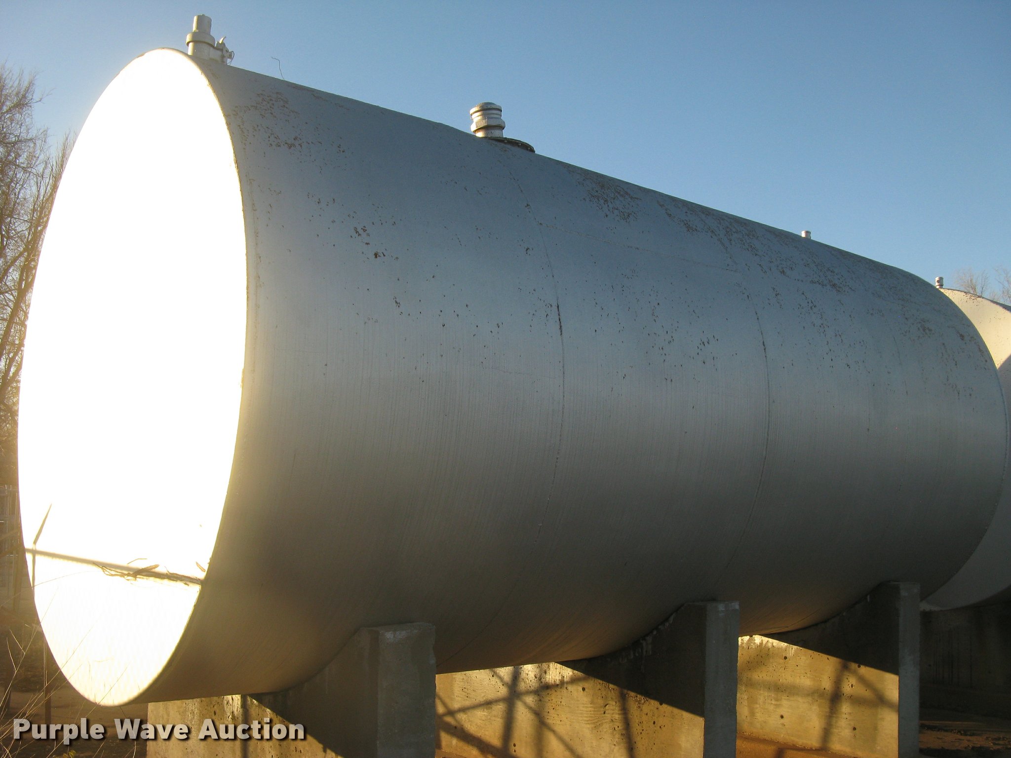 Purple Wave is selling a used Fuel and Lube in Kansas. This item is a Bulk fuel fill center with the following: (7) Standard Steel Works single wall fuel tanks, #1, 20'L x 10' diameter, 12,000 gallon capacity, Piped in conjunction with tank #7, Previously used for gasoline, #2, 20'L x 10' diameter, 12,000 gallon capacity, #3, 20'L x 10' diameter, 12,000 gallon capacity, Previously used for gasoline, #4, 16'L x 8' diameter, (2) chamers, 6,000 gallon capacity, Previously used for diesel, #5, 20'L x 10' diameter, 12,000 gallon capacity, Previously used for diesel, #6, 20'L x 10' diameter, 12,000 gallon capacity, Previously used for diesel, #7, 20'L x 10' diameter, 12,000 gallon capacity, Previously used for gasoline,, (2) steel catwalks and ladders, Approx. 14'L and 28'L, Approx. 300' steel pipe fuel supply lines with pedestal stands, Approx. 90' steel pipe at fill station with elbows, valves, and Kamlok caps, (3) Gorman-Rupp fuel pumps, 1.5 HP electric motors, 115/230V, Single phase, (2) Morrison bulk fill fuel nozzles, 36"L fill tubes, Steel filling platform with staircase, 8'L platform, Electric will be disconnected by seller just above ground level, Fence will be removed by seller and is not included, Concrete tank stands are poured in place and not included