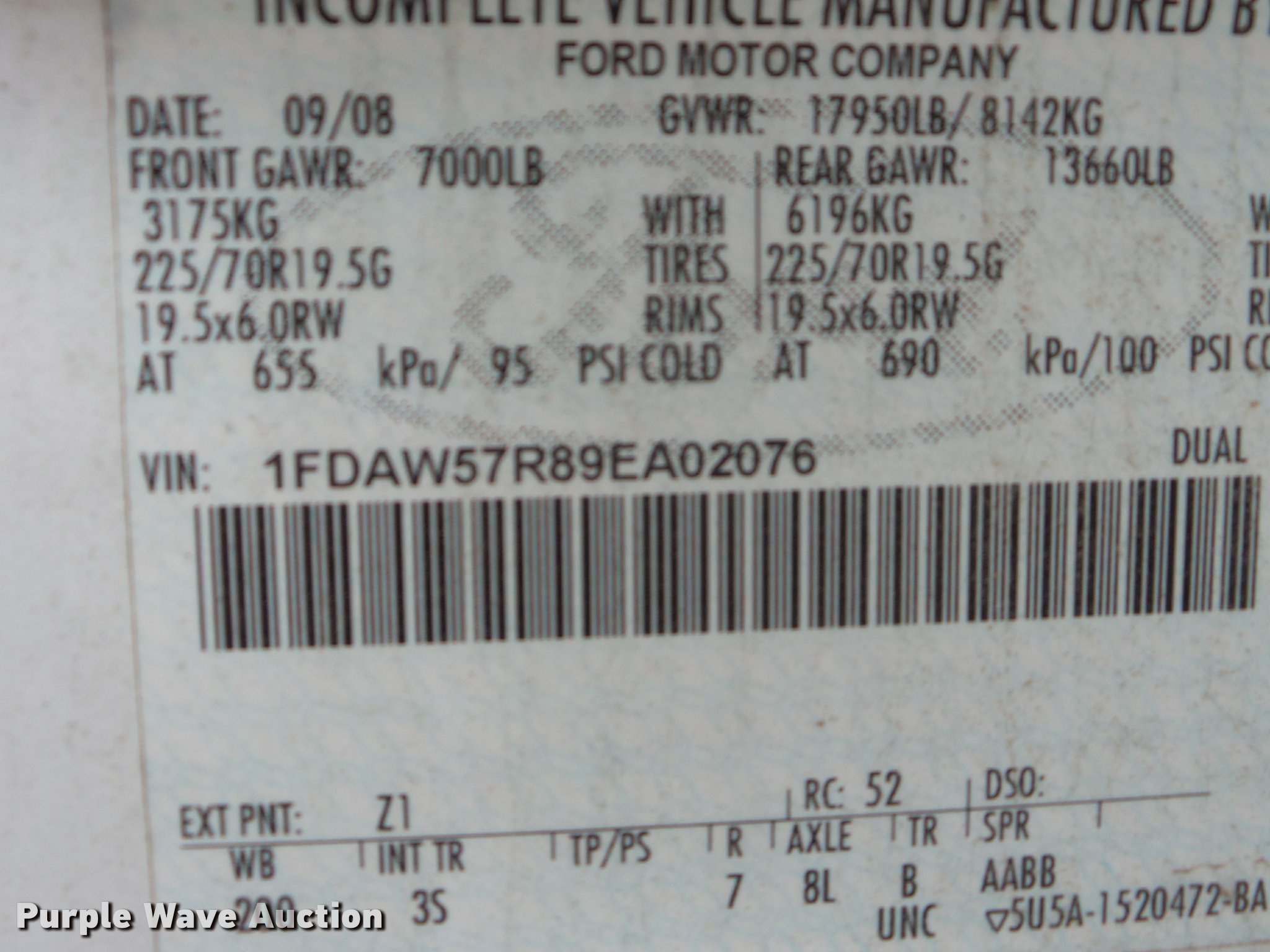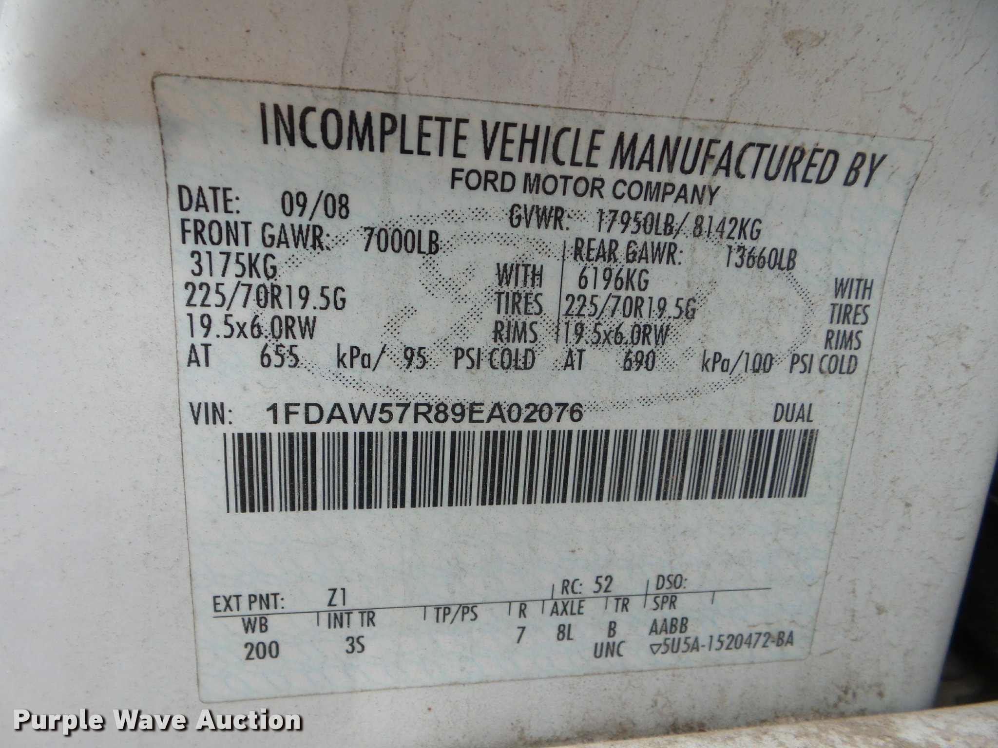 Purple Wave is selling a used Truck Chassis in Texas. This item is a 2009 Ford F550 Crew Cab truck cab and chassis with the following: Unknown miles on odometer, Approx. 151,456 miles, 6.4L V8 OHV 32V diesel engine, Automatic transmission, Four wheel drive, AC and heat, Tilt, Cruise, AM/FM, Power windows, locks, and mirrors, Cloth interior, Grill guard, Running boards, Receiver hitch, Trailer wiring, 225/70R19.5 tires, Cracked windshield, Non-operational unit, Unit# 52272