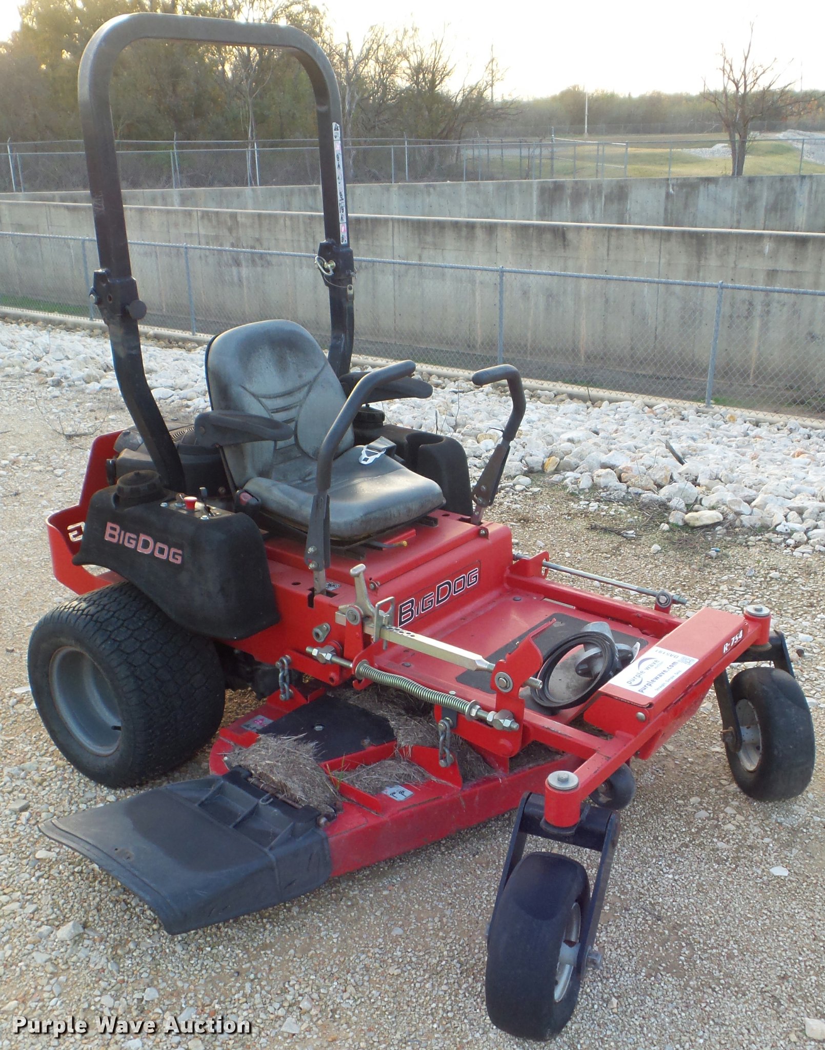 Purple Wave is selling a used Lawn Mower in Texas. This item is a 2010 Big Dog R series lawn mower with the following: 52" cut, Briggs & Stratton two cylinder gas engine, Hydrostatic transmission, Roll bar, 13x5.00-6 front tires, 20x12.00-10 drive tires, Unknown operating condition, Serial 10030424, Unit# 52541