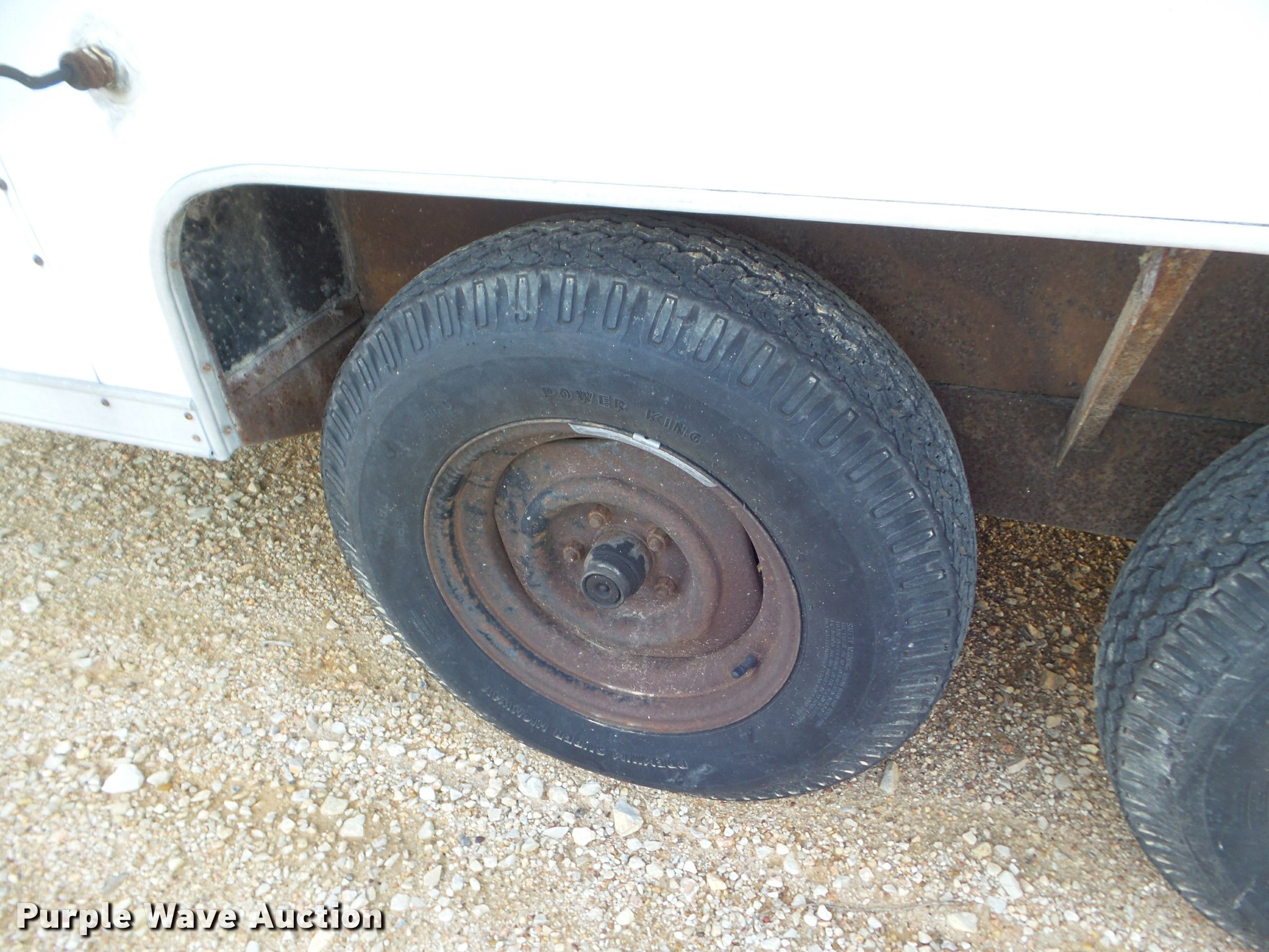 Purple Wave is selling a used Enclosed Cargo Trailer in Texas. This item is a 1990 Wells Cargo enclosed cargo trailer with generator with the following: 12'L x 8'W, Wood floor, Lights, Onan Pro 6000E generator, Single cylinder gas engine, 110V and 240V outlets, Unknown operating condition, Ball hitch, Single leg landing gear, Spring suspension, Electric brakes, 6.70-15 tires, Unit# 50511