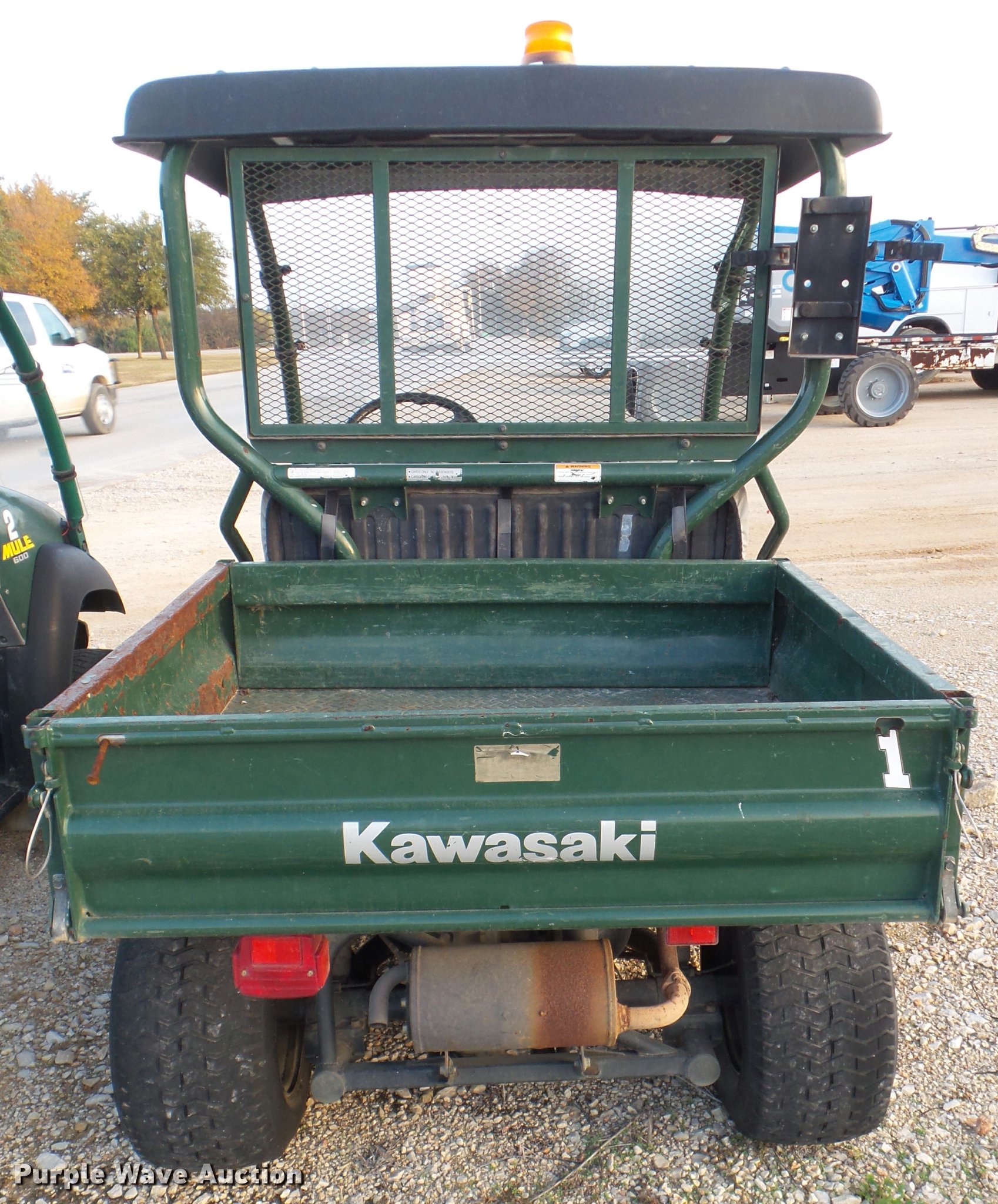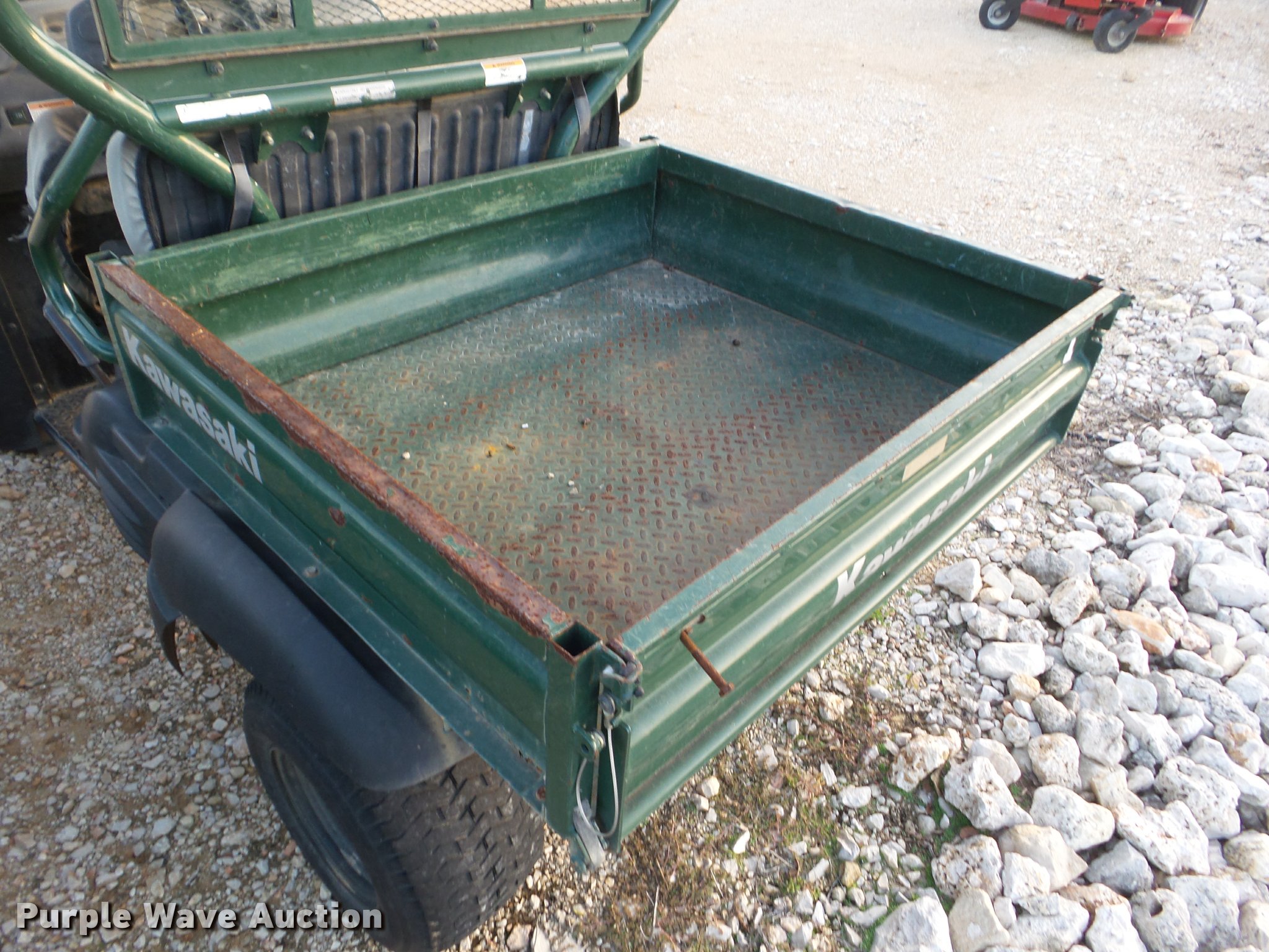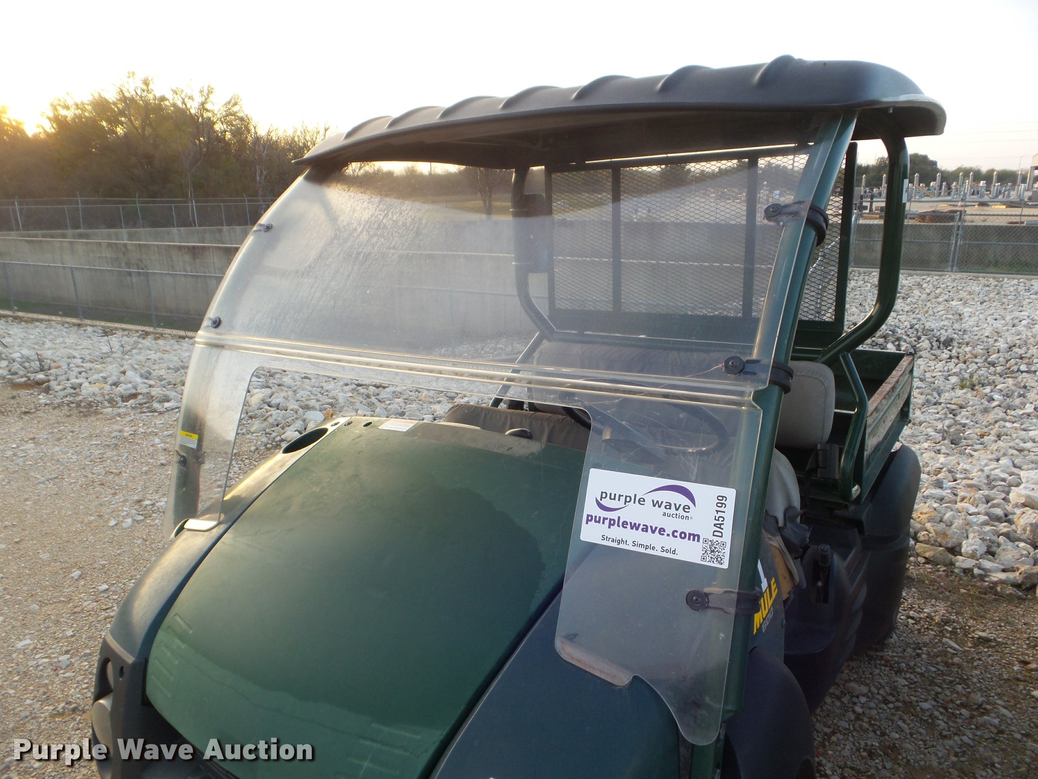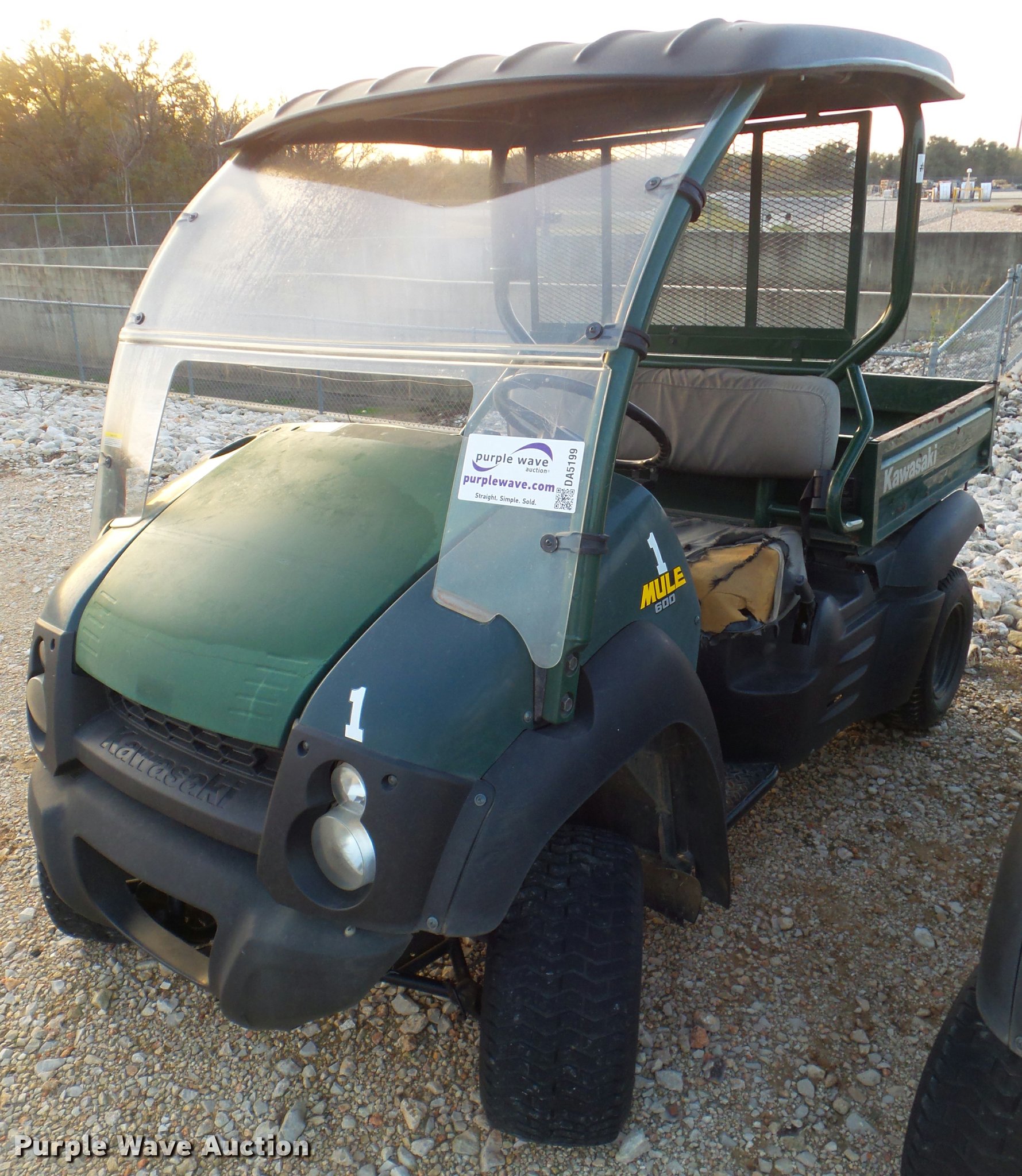Purple Wave is selling a used Utility Vehicle in Texas. This item is a 2006 Kawasaki Mule 600 utility vehicle with the following: 2,038 hours on meter, Kawasaki one cylinder gas engine, Forward/reverse transmission, Four wheel drive, Windshield, Lights, 34" x 37" bed, 20x10-10 tires, Unknown operating condition, Unit# 52114