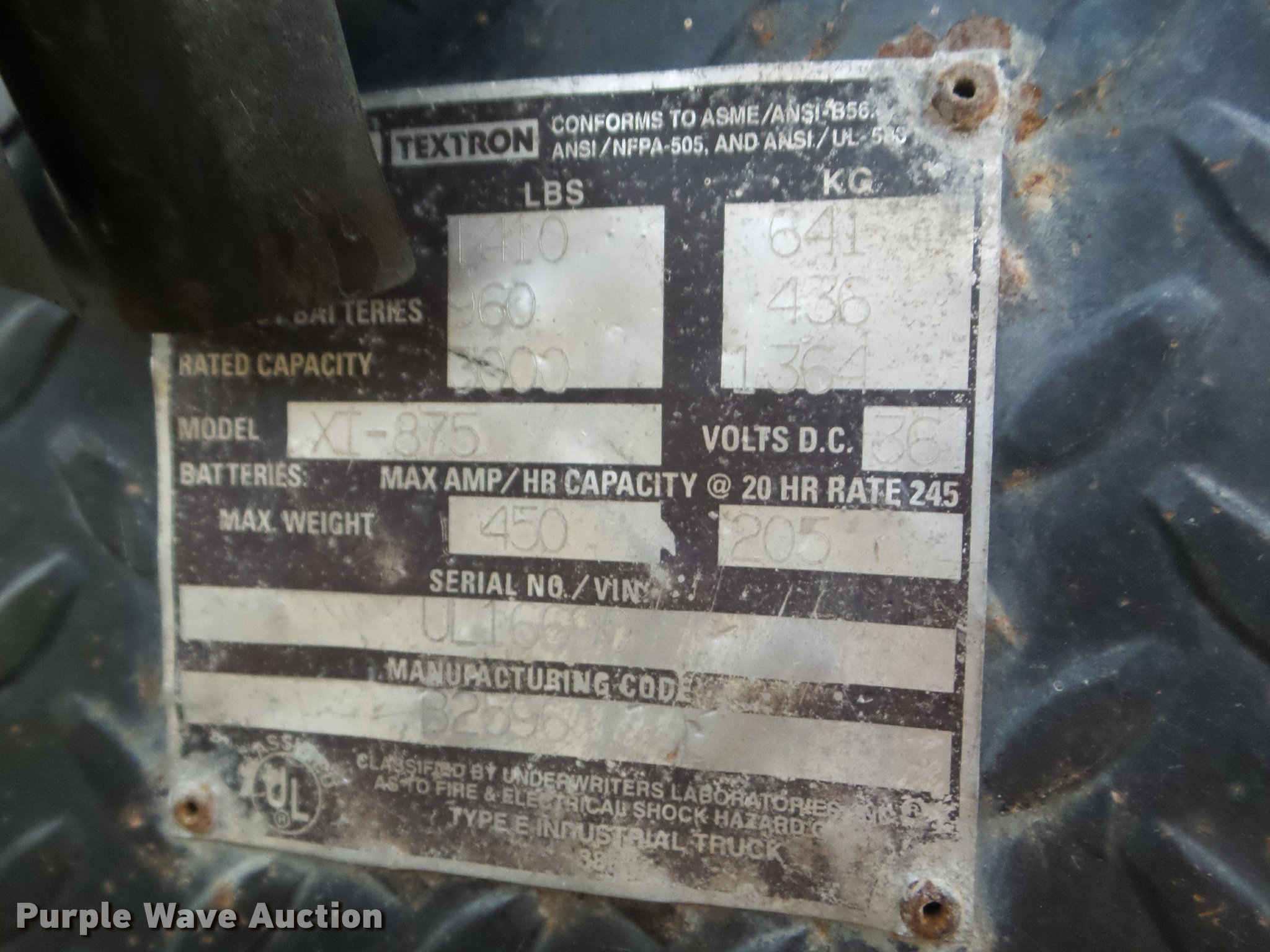 Purple Wave is selling a used Golf Cart in Texas. This item is a 1995 Ez-go X1875 utility golf cart with the following: 468 hours on meter, Electric operation, Forward/reverse transmission, Headlights, 450 lbs max capacity, 6'L x 4'W bed, 18.5x8.5-8 tires, Unknown operating condition, Serial B2596, Unit# 6922